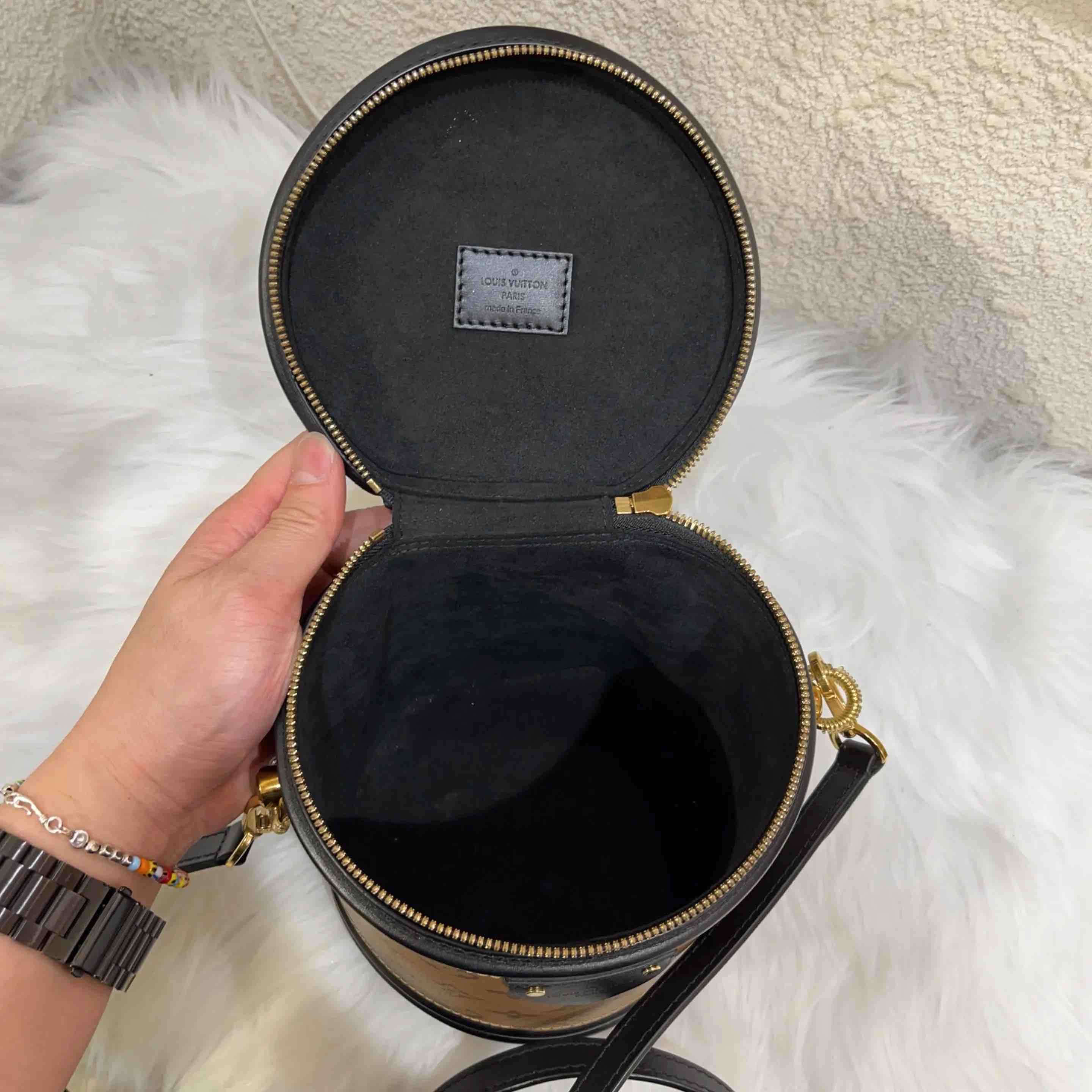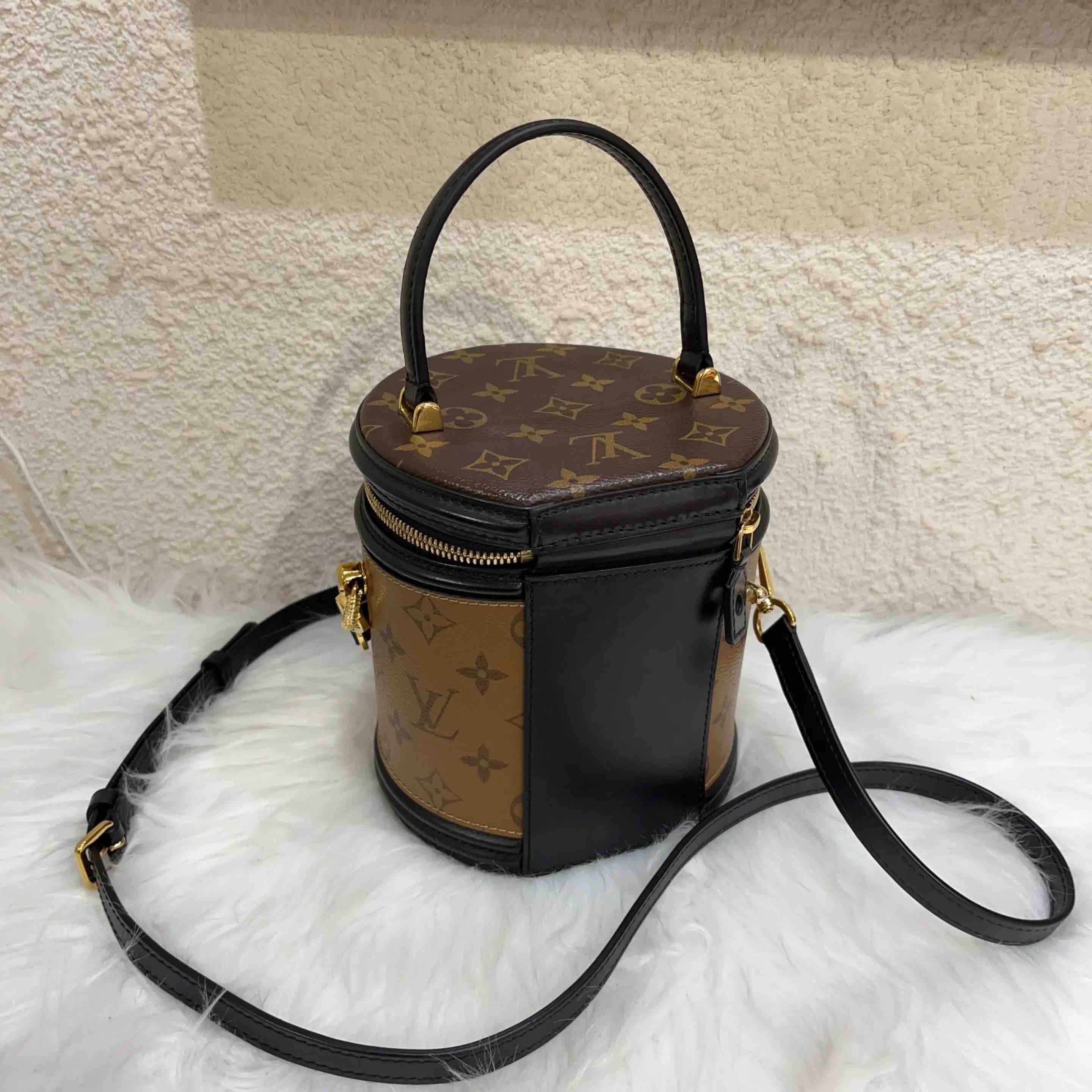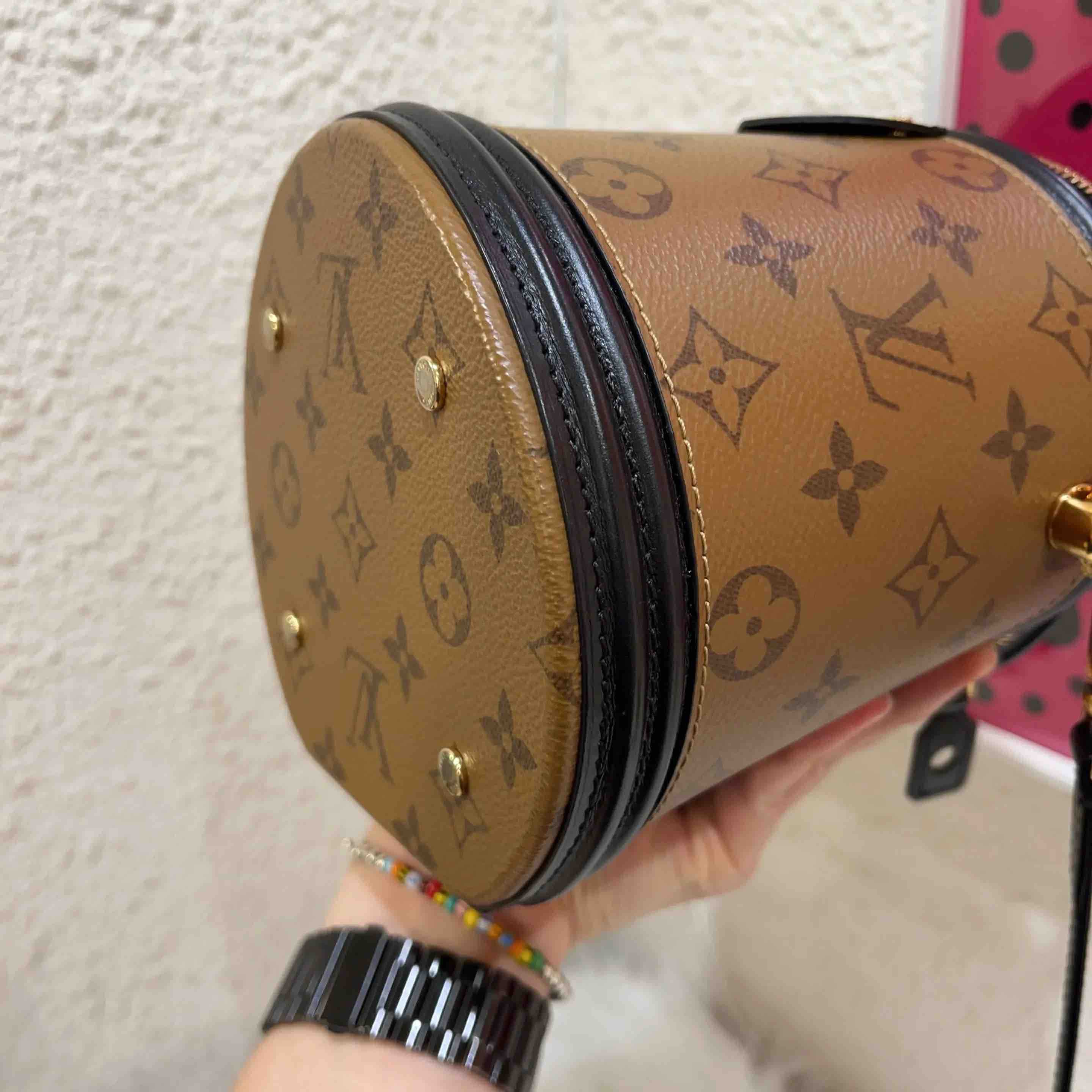 【商品详情】正品二手 LV Cannes 拼色 老花 小号 发财桶🍏97新 15*18 配件:锁 钥匙 肩带。造型感upup