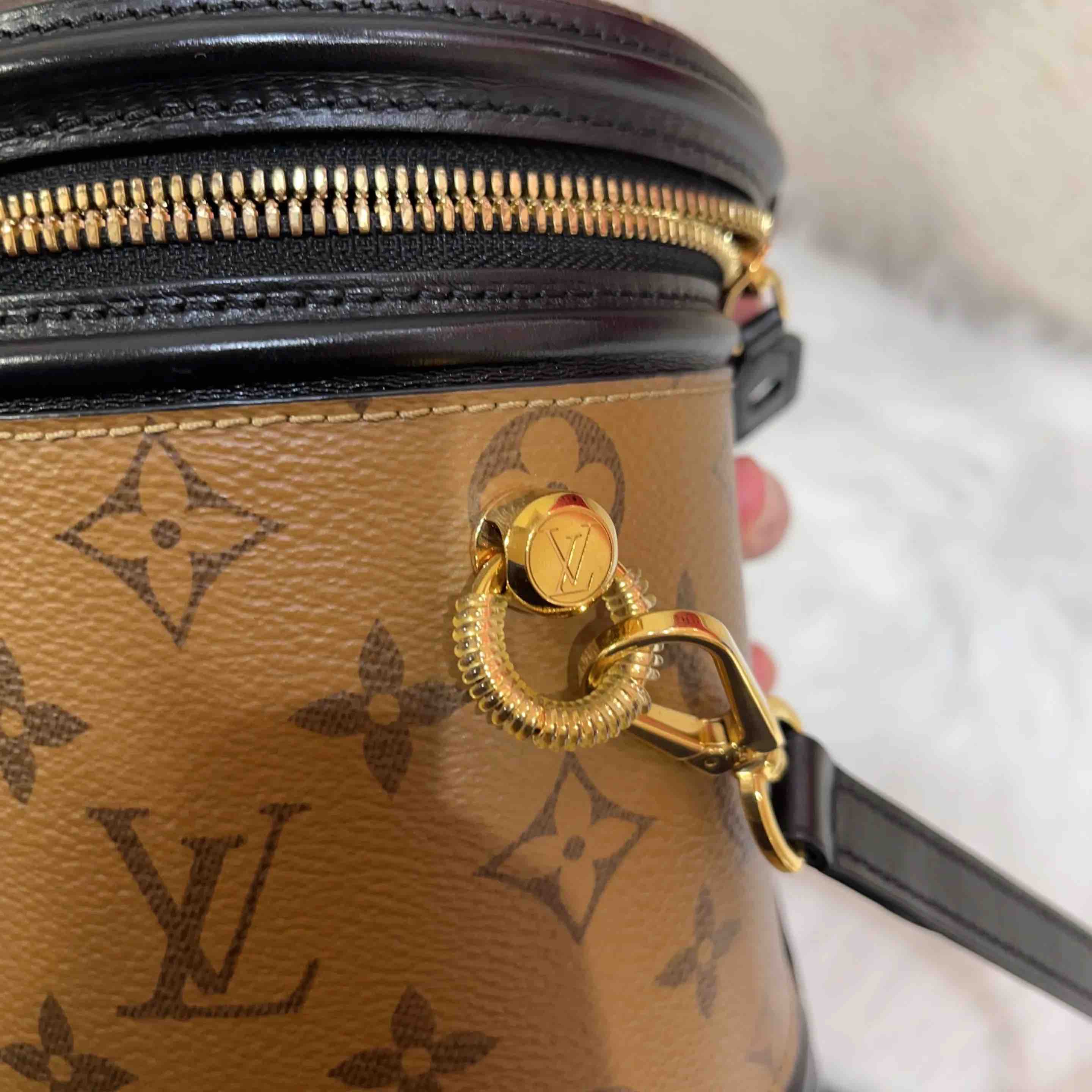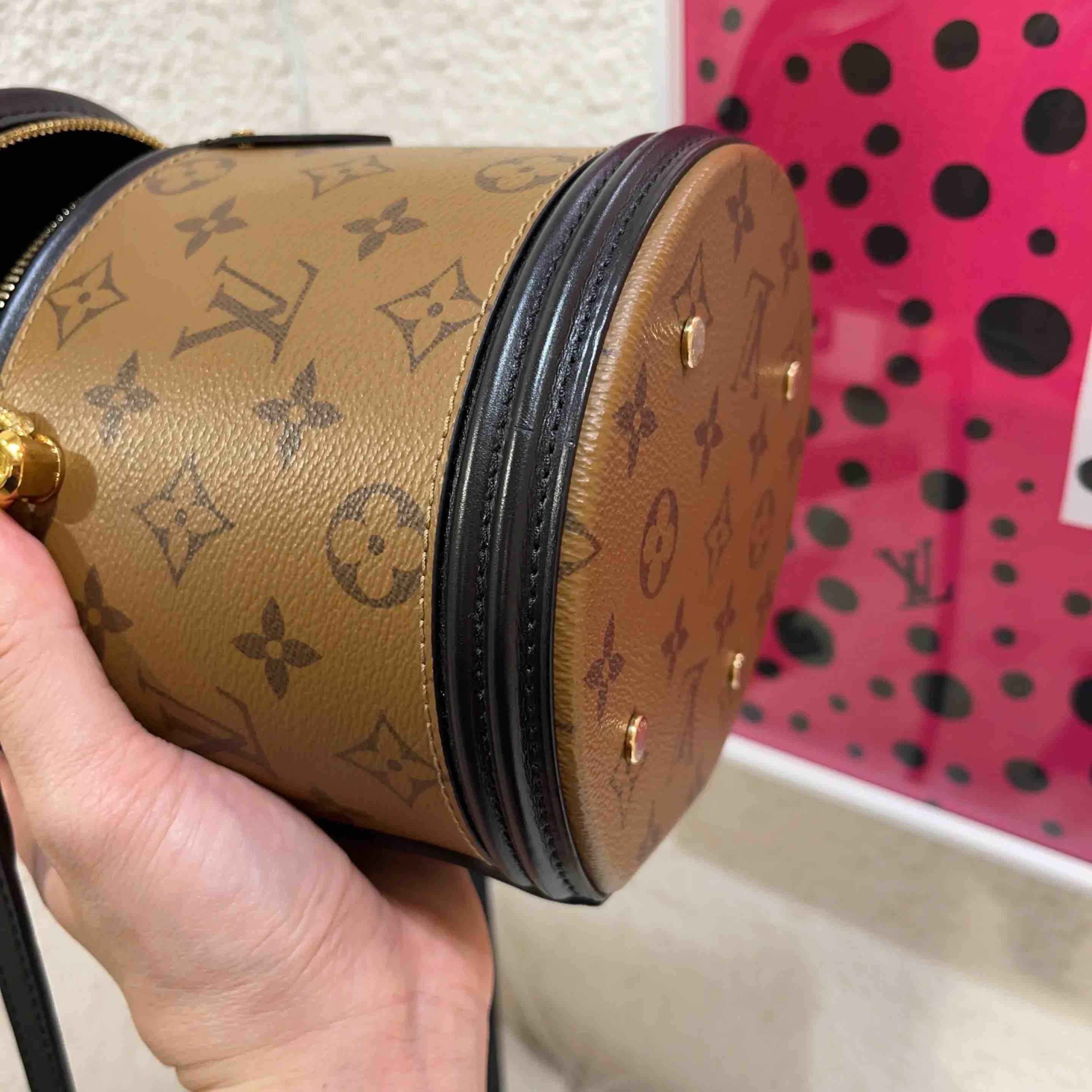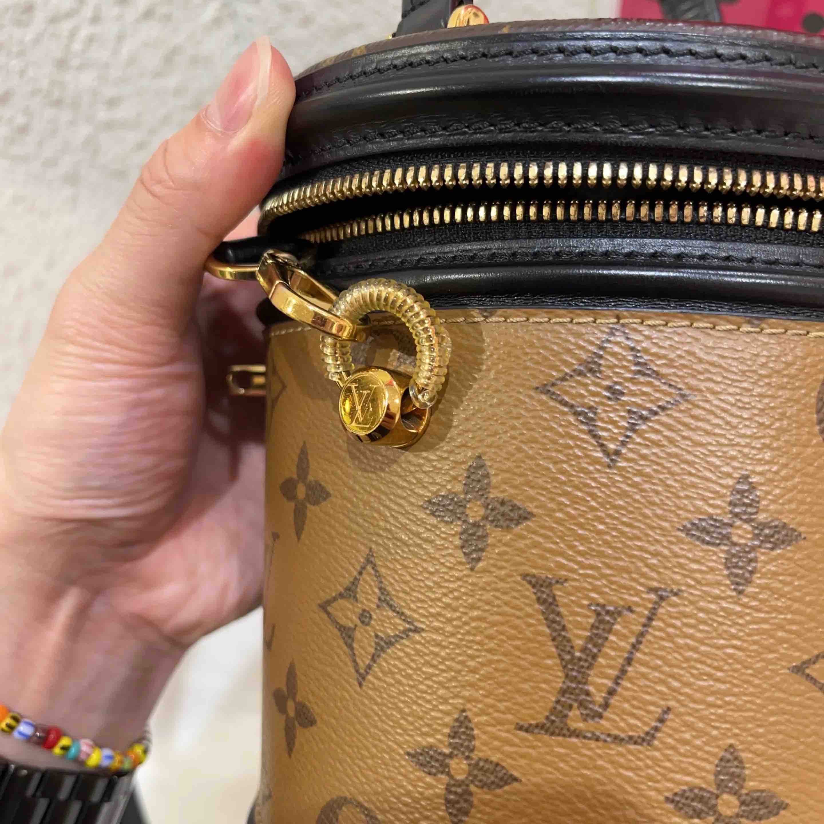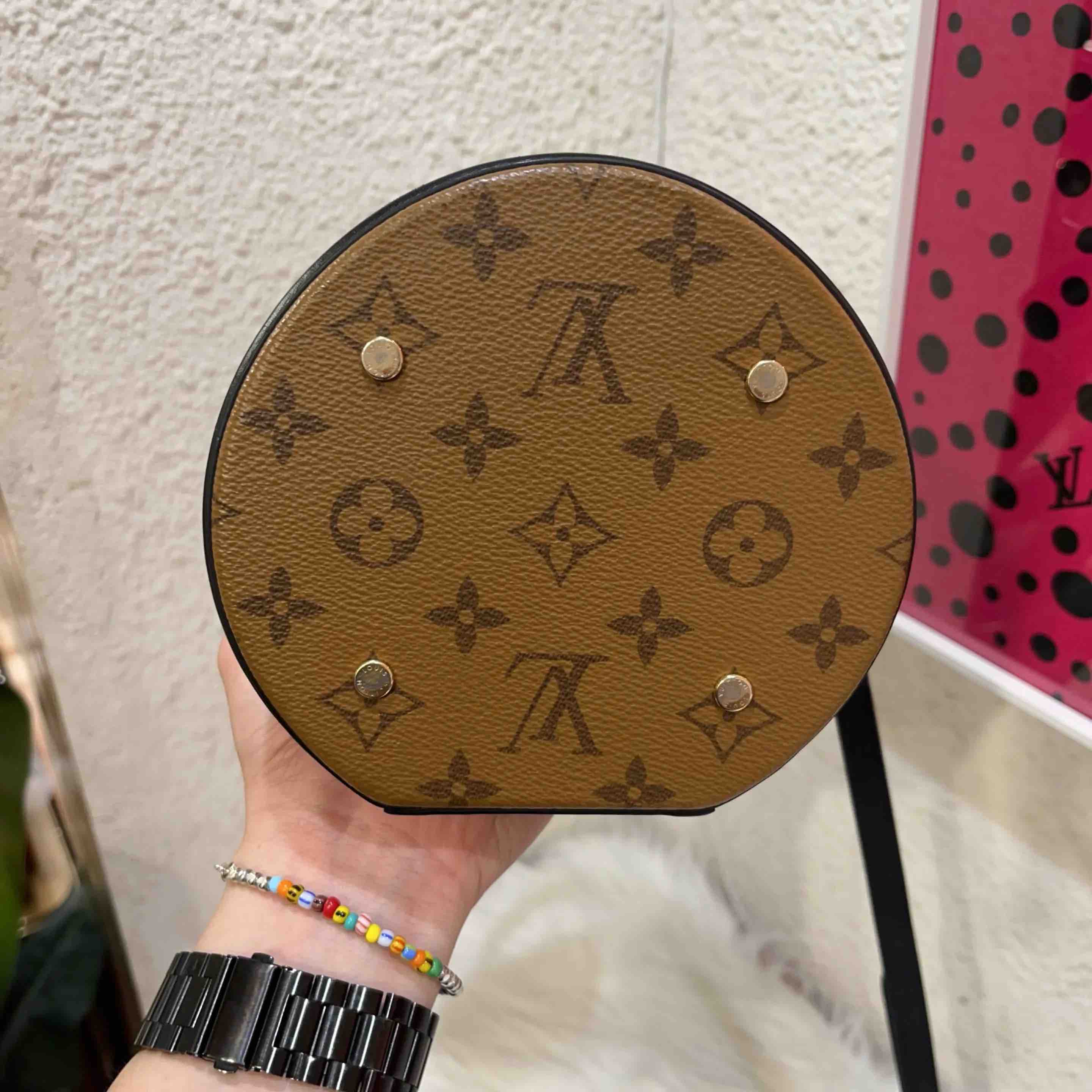 【商品详情】正品二手 LV Cannes 拼色 老花 小号 发财桶🍏97新 15*18 配件:锁 钥匙 肩带。造型感upup