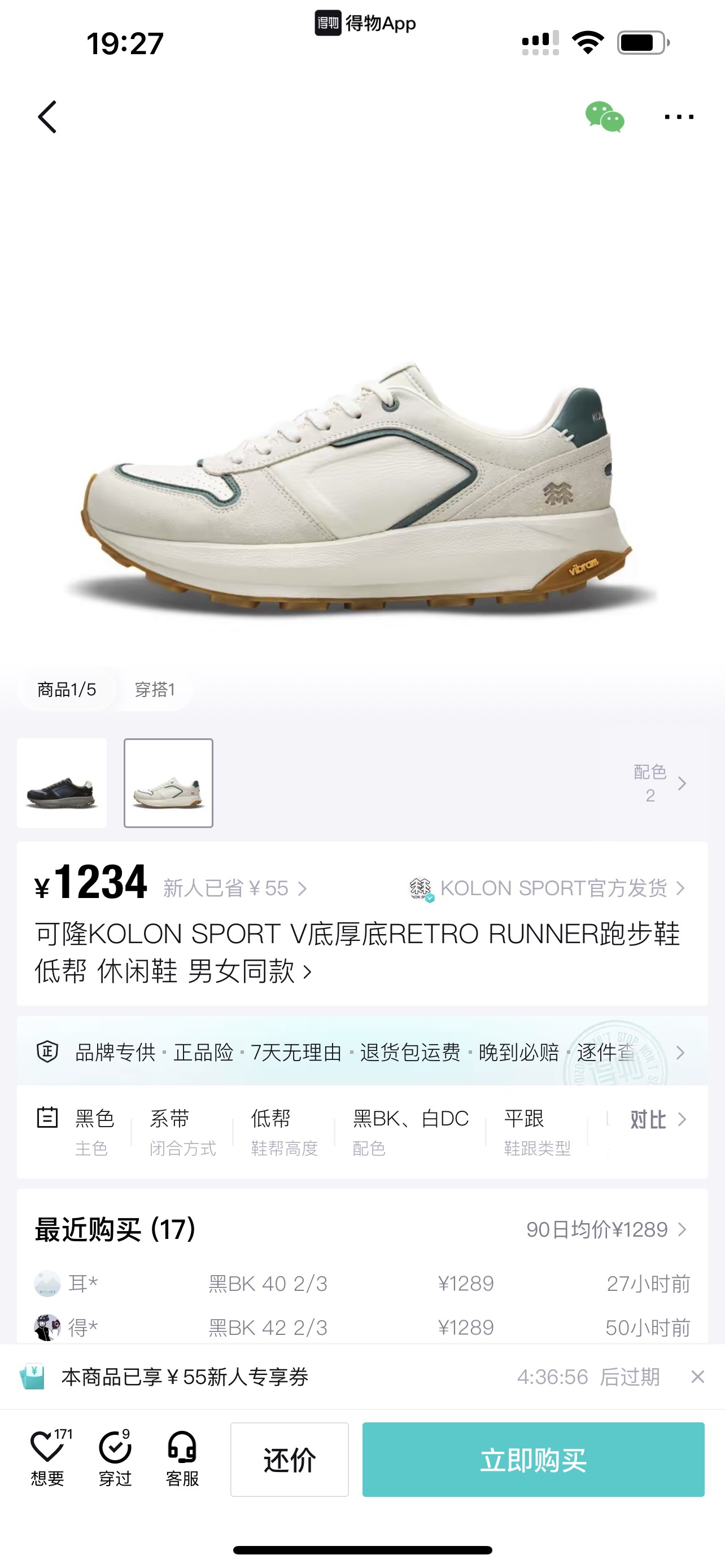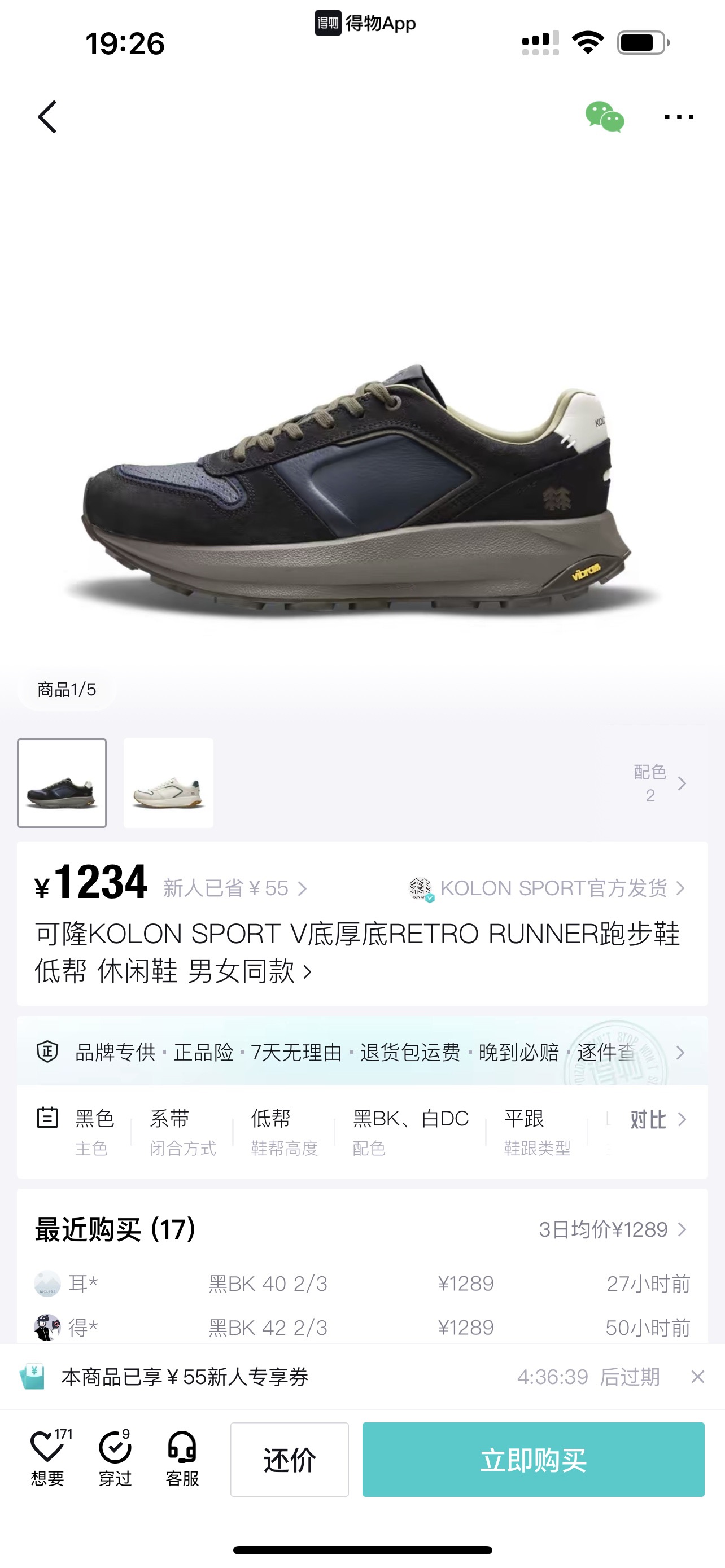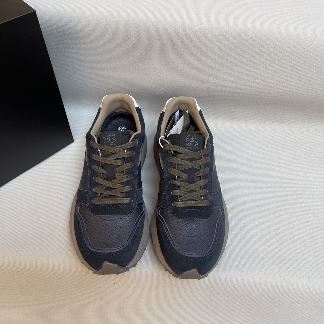 KOLON SPORT 真皮+V底厚底RETRO RUNNER跑步鞋低帮休闲鞋