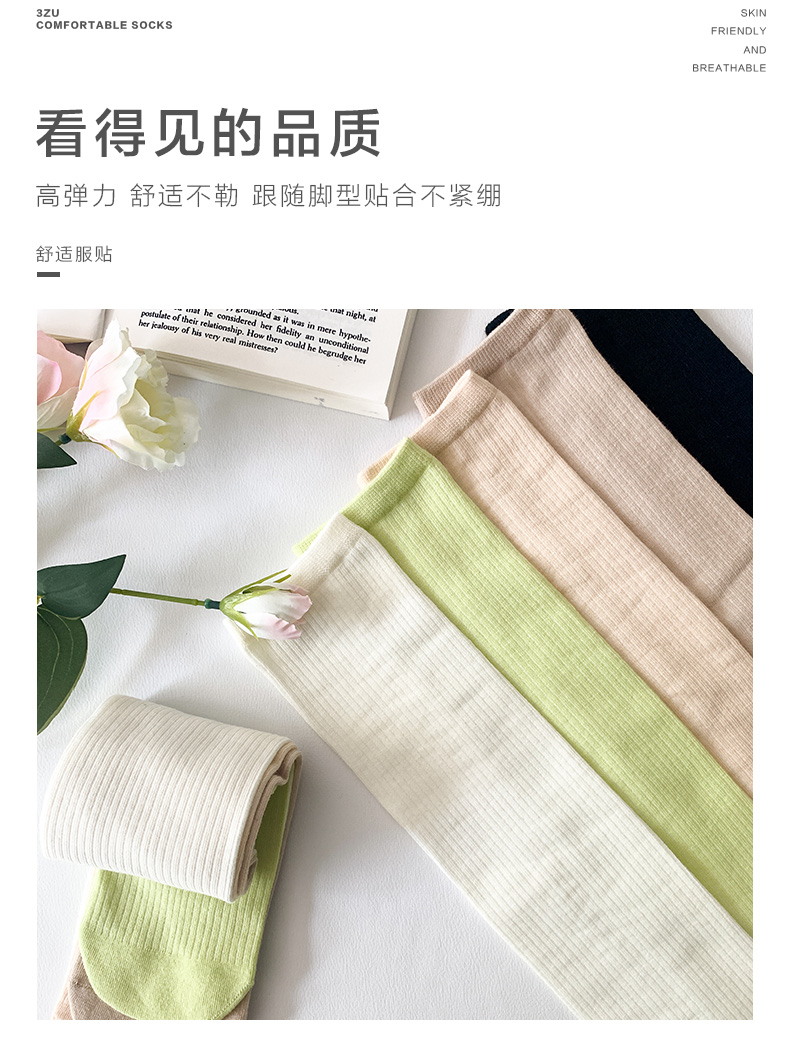 足装秀24新品夏季女糖果色直板袜精梳棉亲肤透气小腿堆堆袜女袜子
