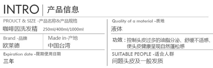 欧莱德 咖啡因洗发精瓶中树滋养全国顺丰包邮