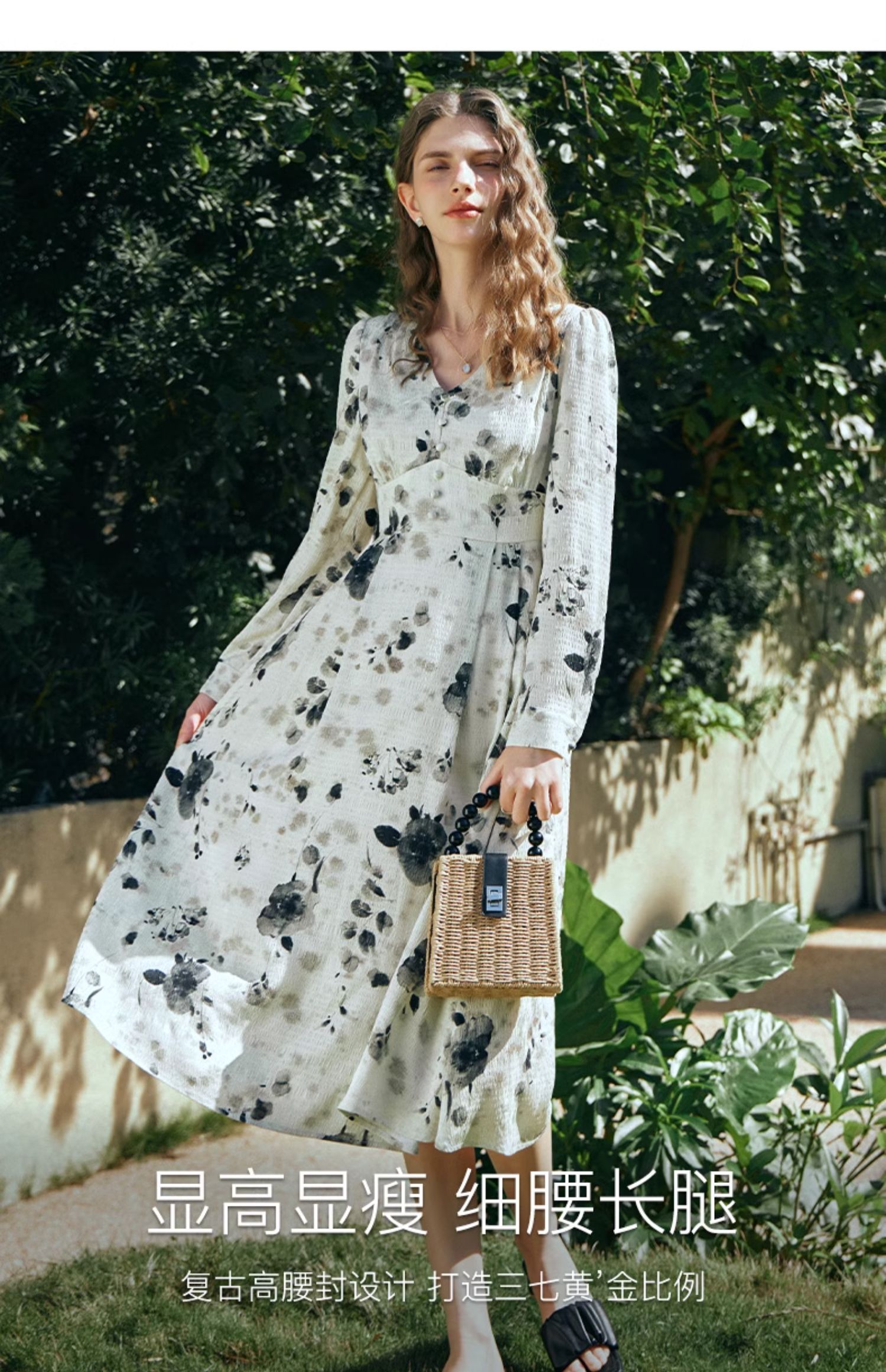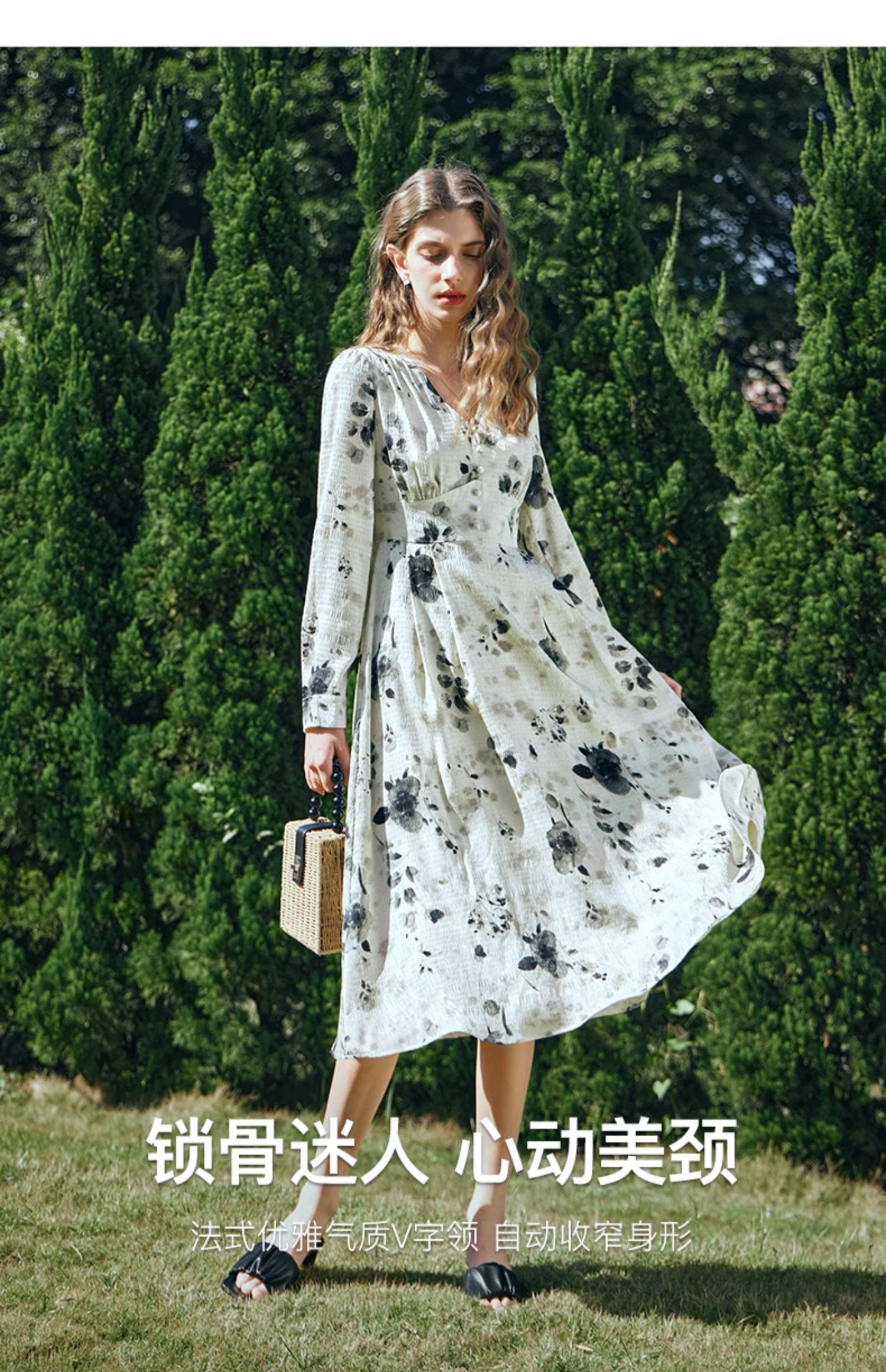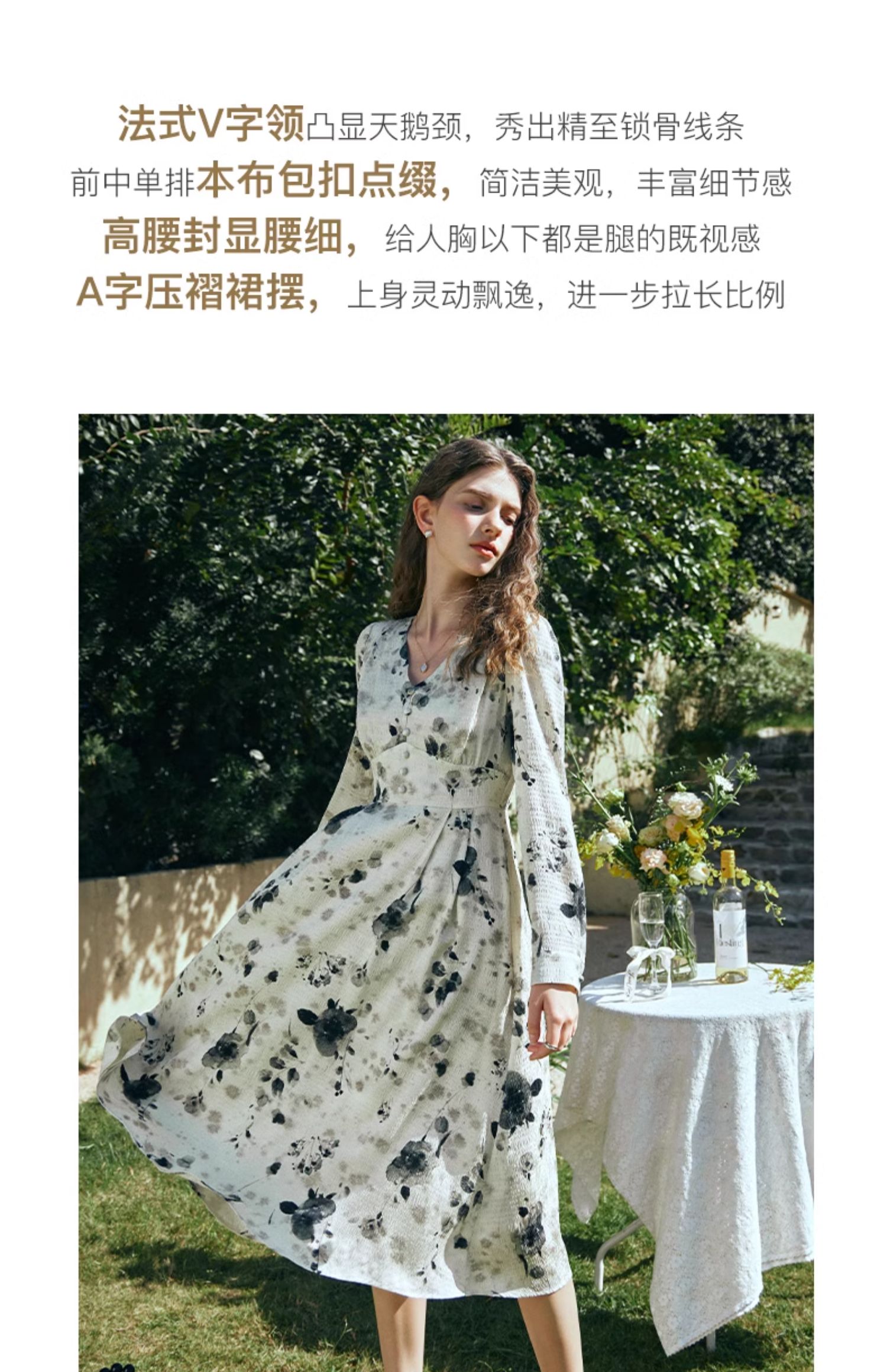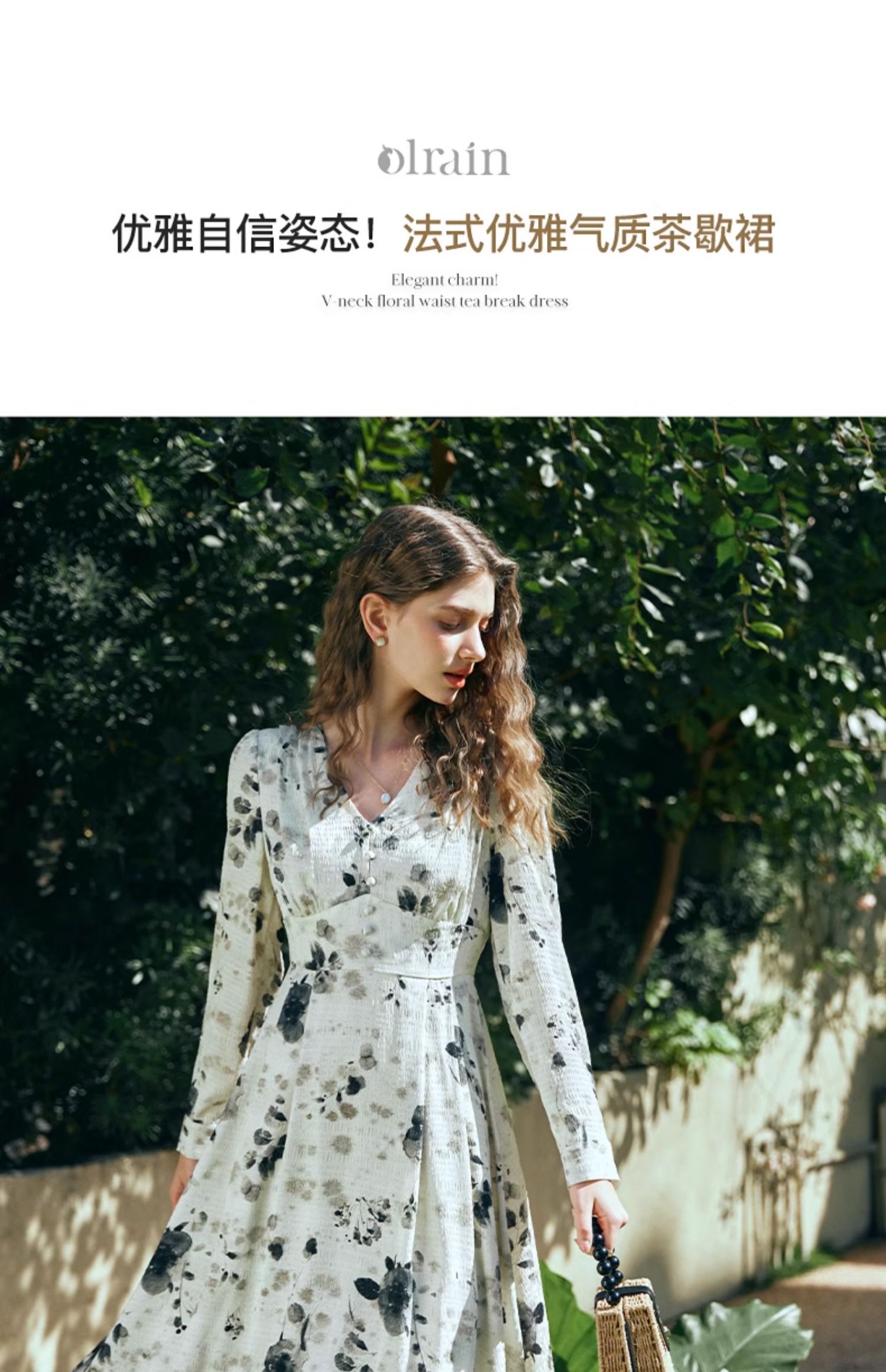 OLrain欧芮儿法式连衣裙女早春2024年新款优雅气质印花茶歇裙