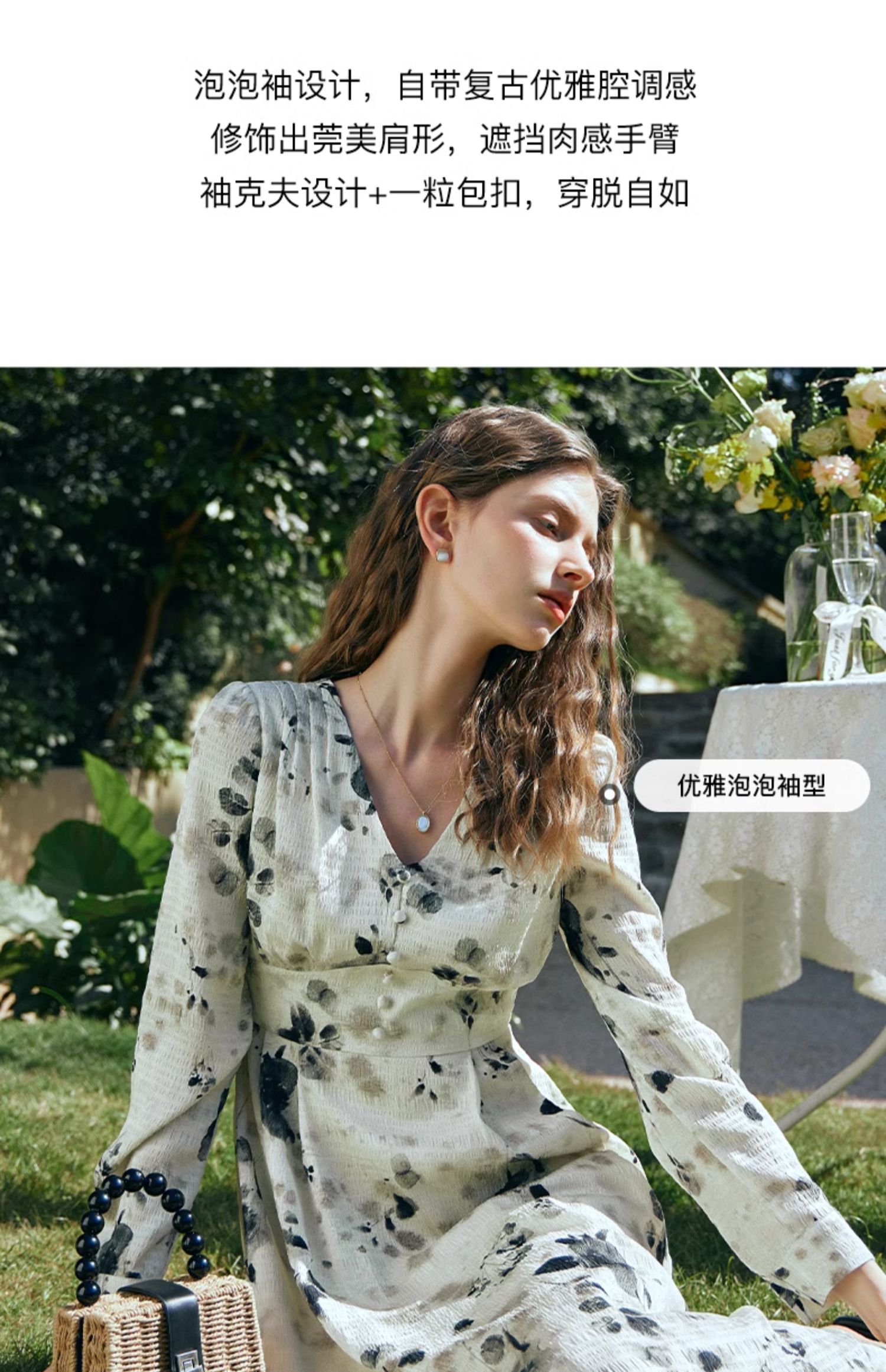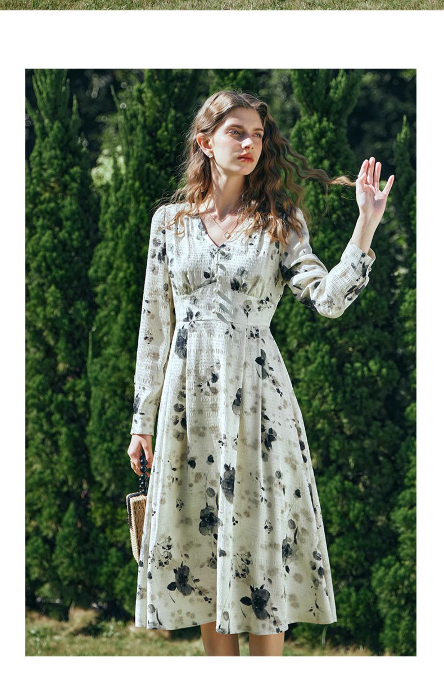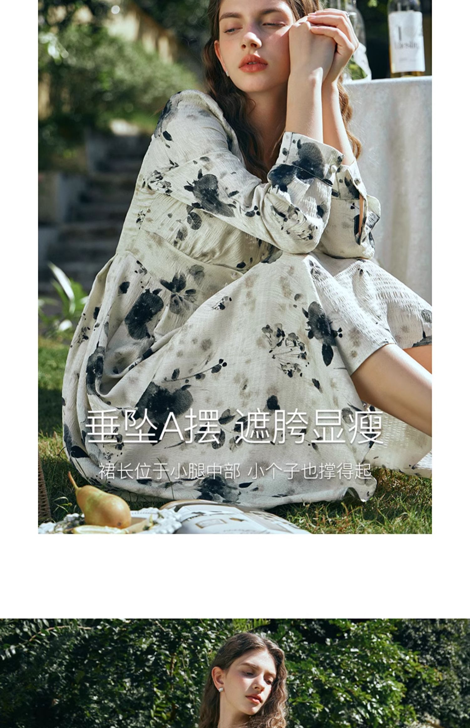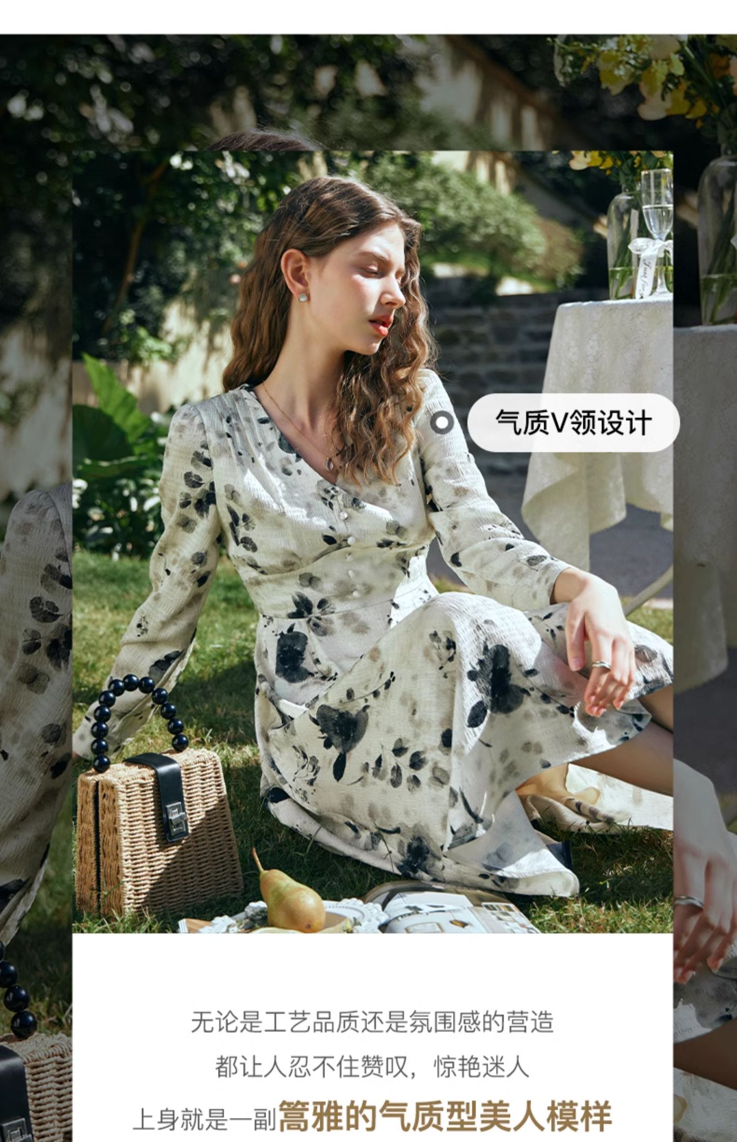OLrain欧芮儿法式连衣裙女早春2024年新款优雅气质印花茶歇裙