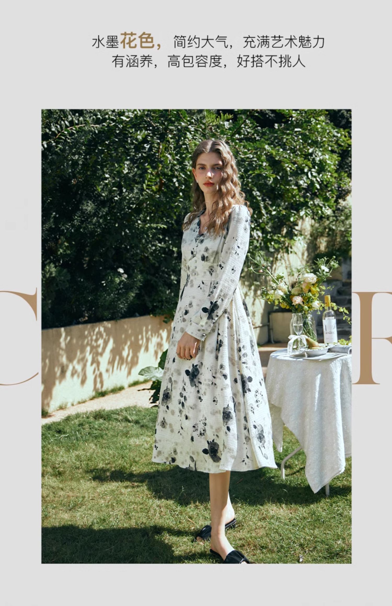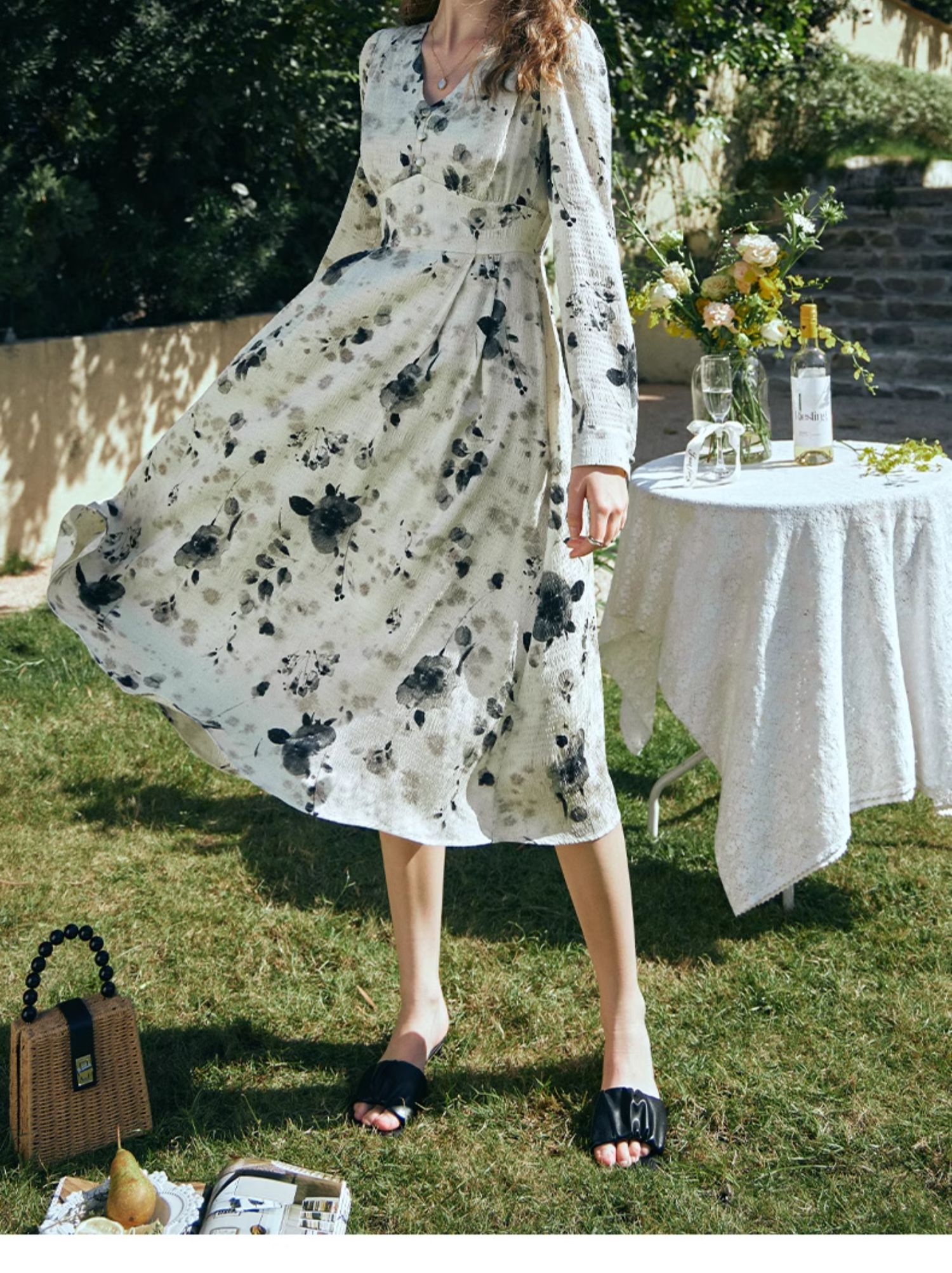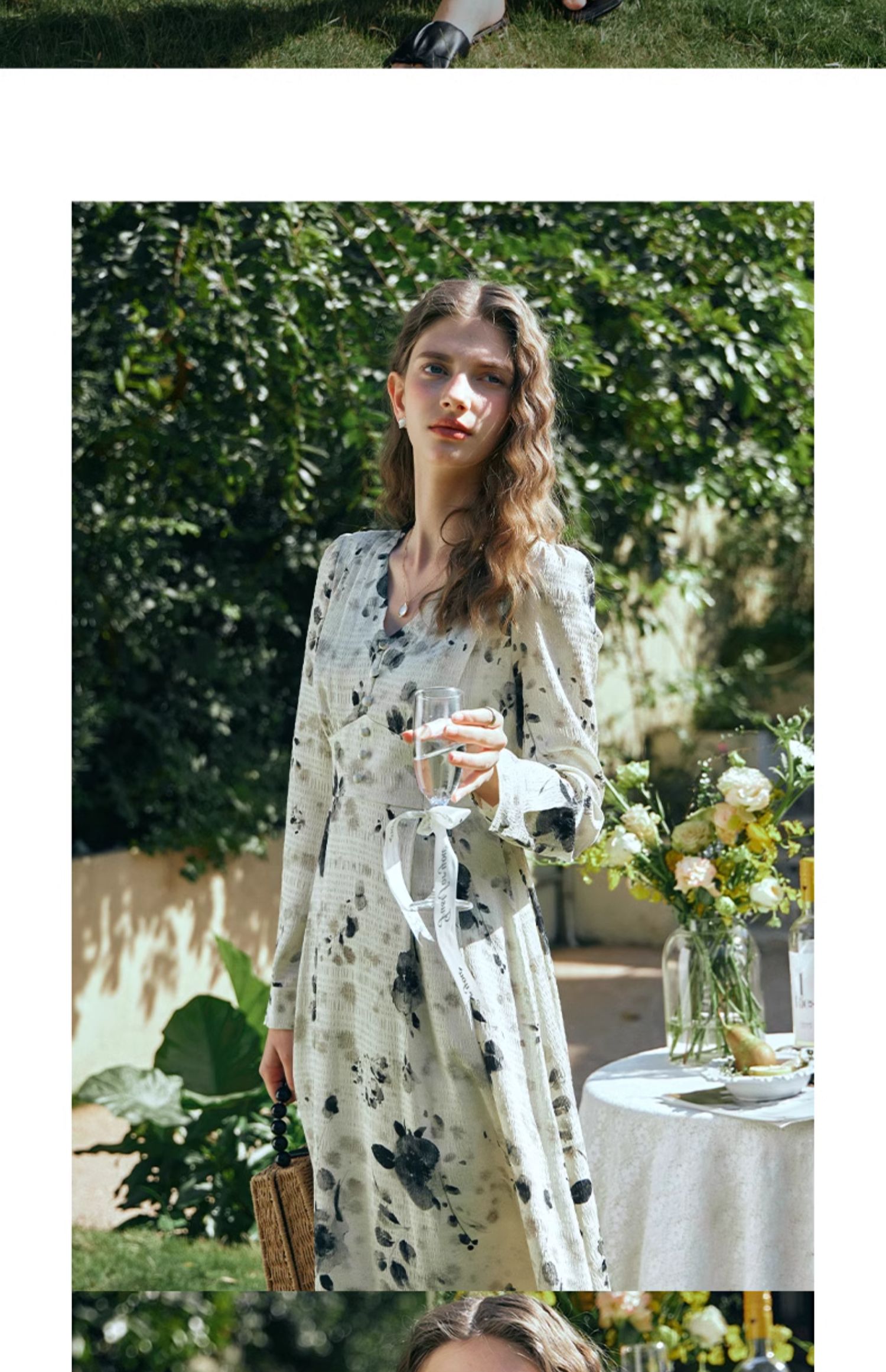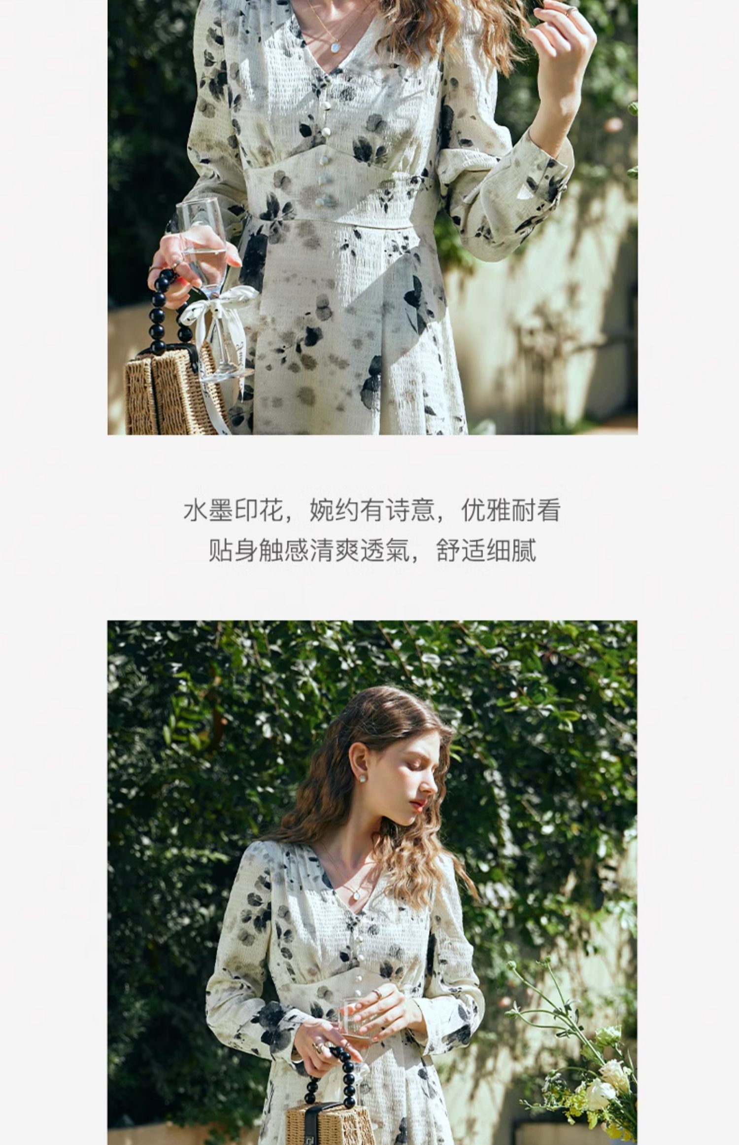 OLrain欧芮儿法式连衣裙女早春2024年新款优雅气质印花茶歇裙