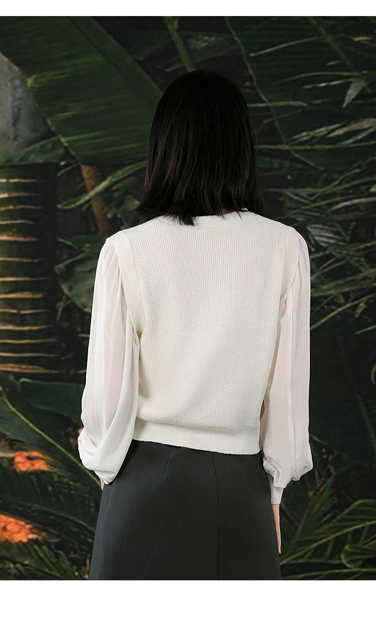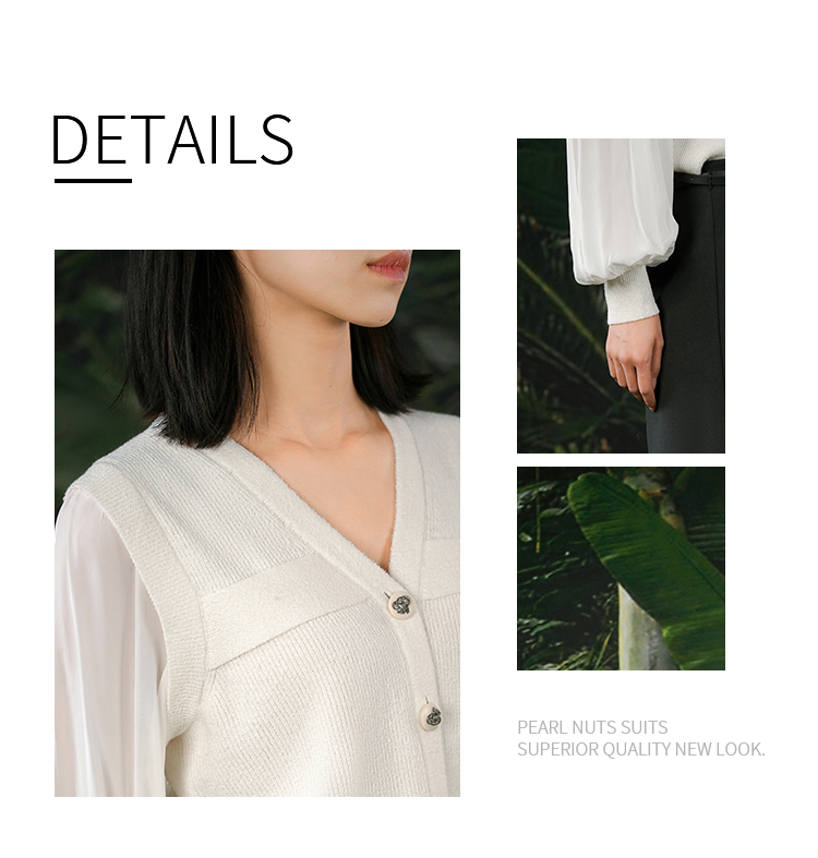 NUTS春秋新款白色V领气质百搭直筒短款针织开衫外套女412052099
