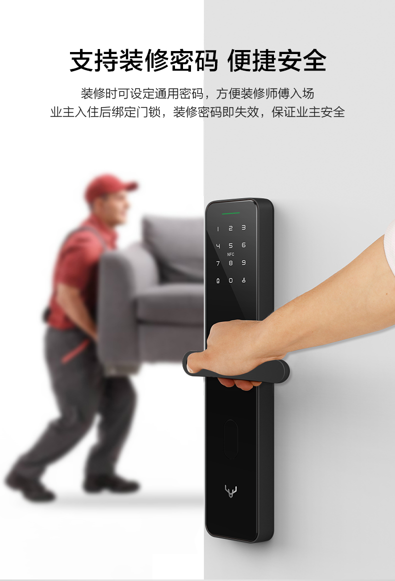 小米E30同款,鹿客R8一握开,指纹密码智能锁入门款,再也不用带钥匙,支持米家