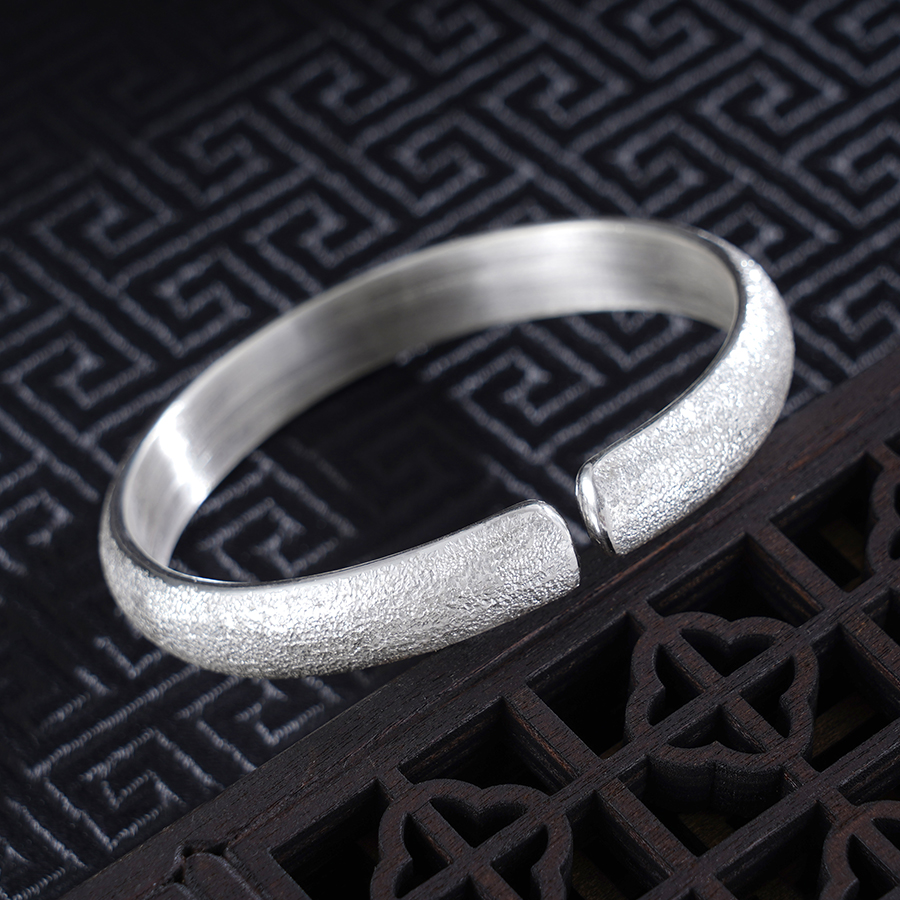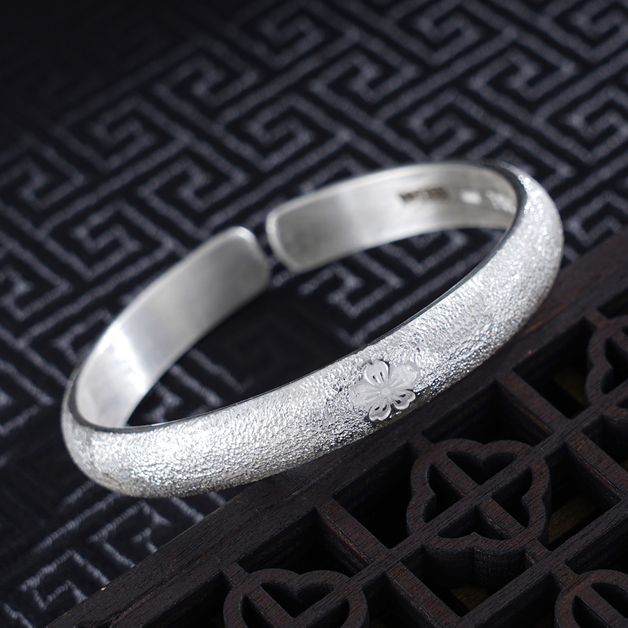 【寓意】:手镯采用纯手工雕琢,表面呈现磨砂锤纹肌理,触感满分。桃花图案点缀,增添亮点,提升气色,还寓意着招引桃花。