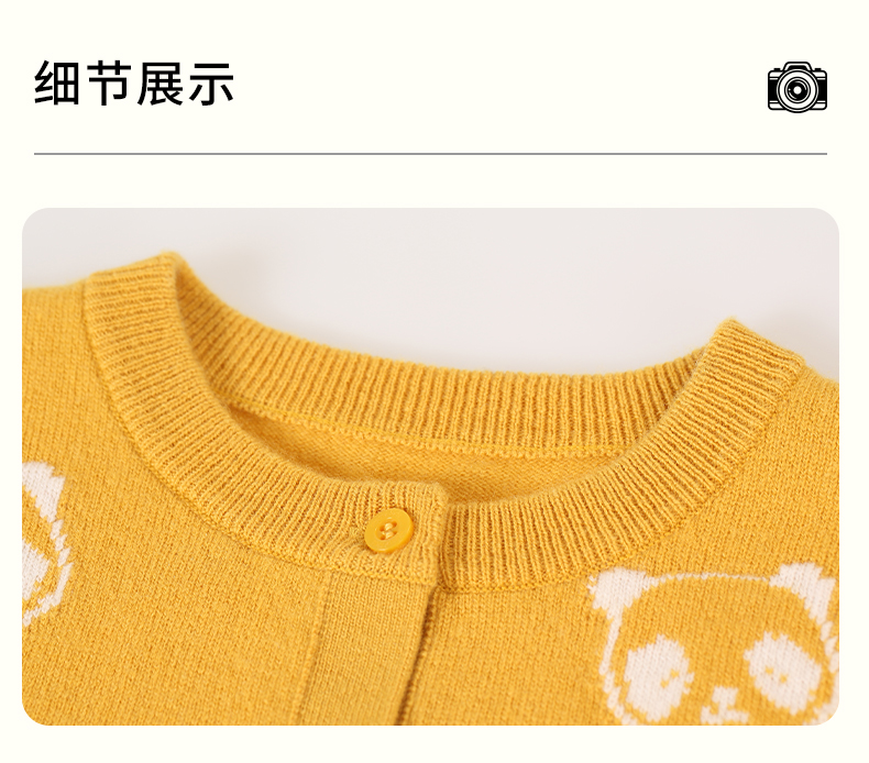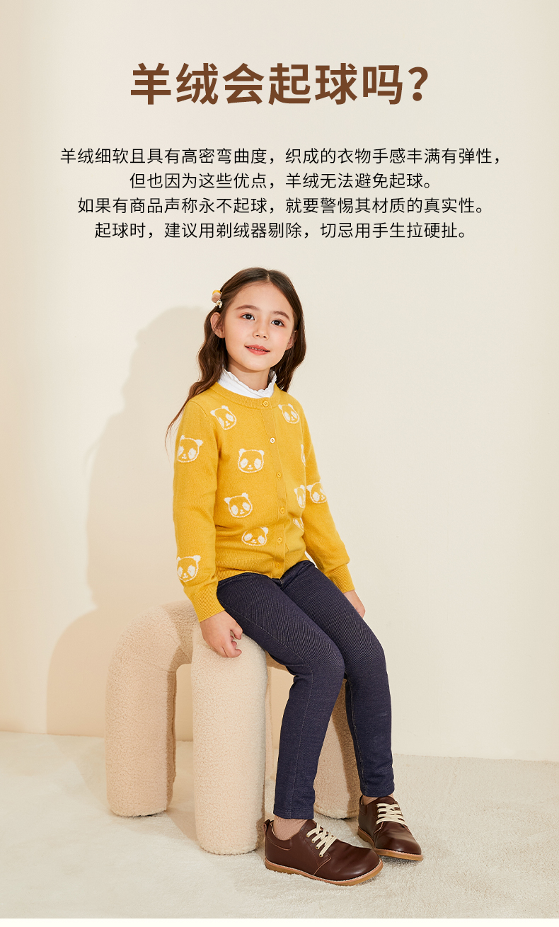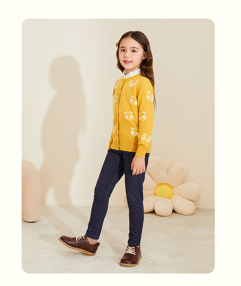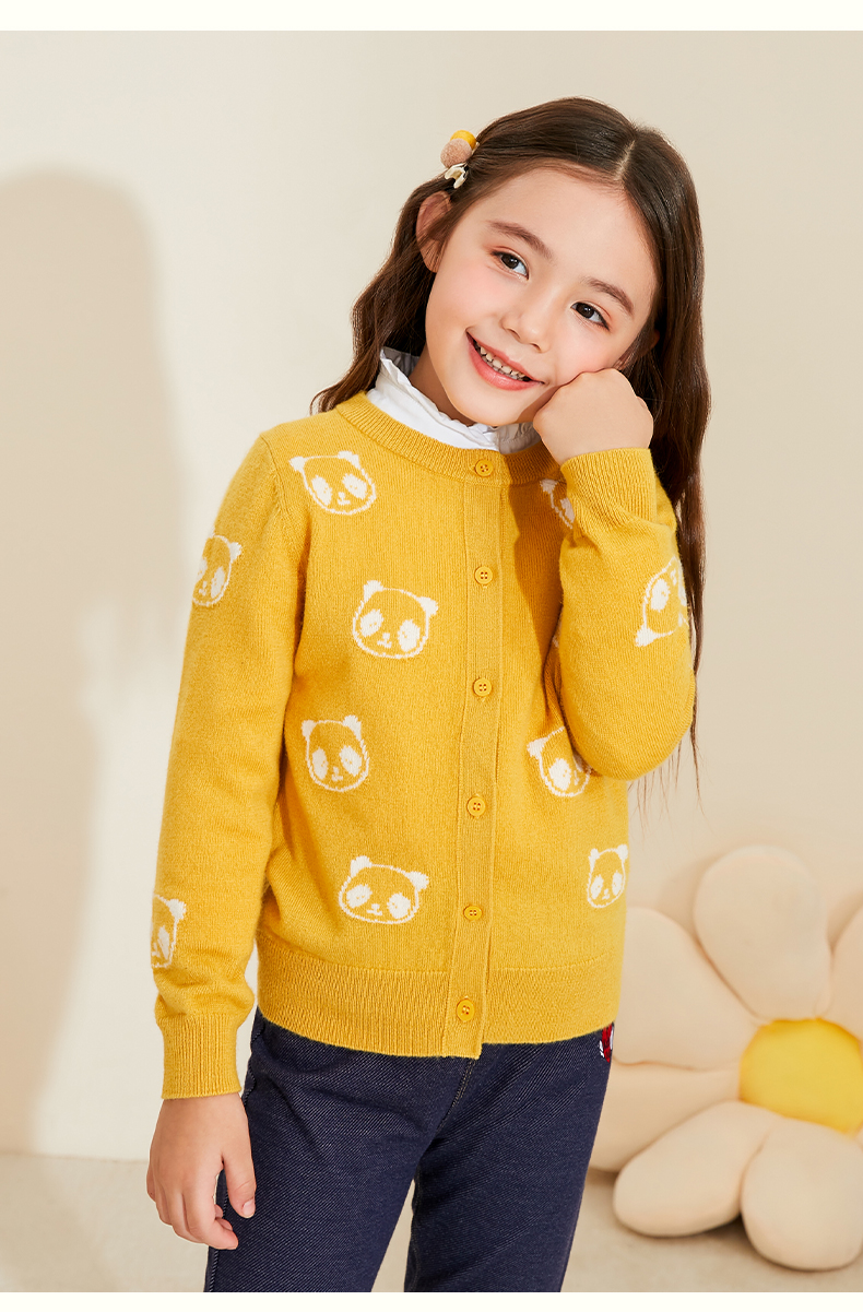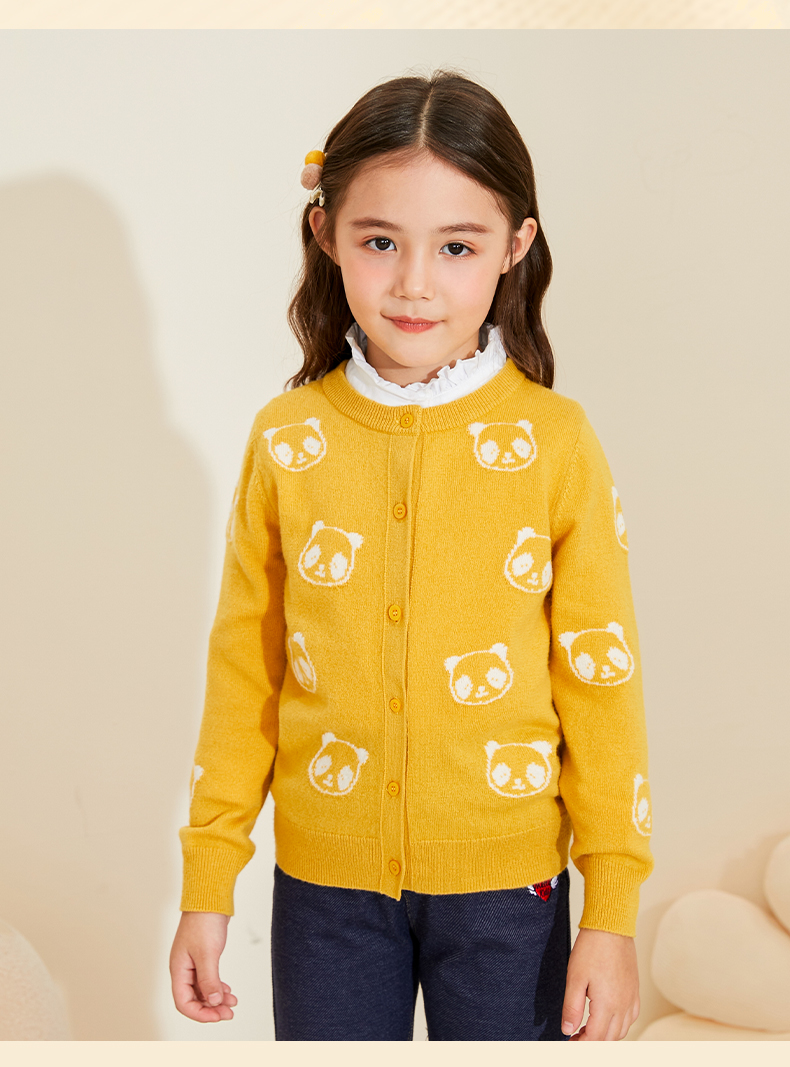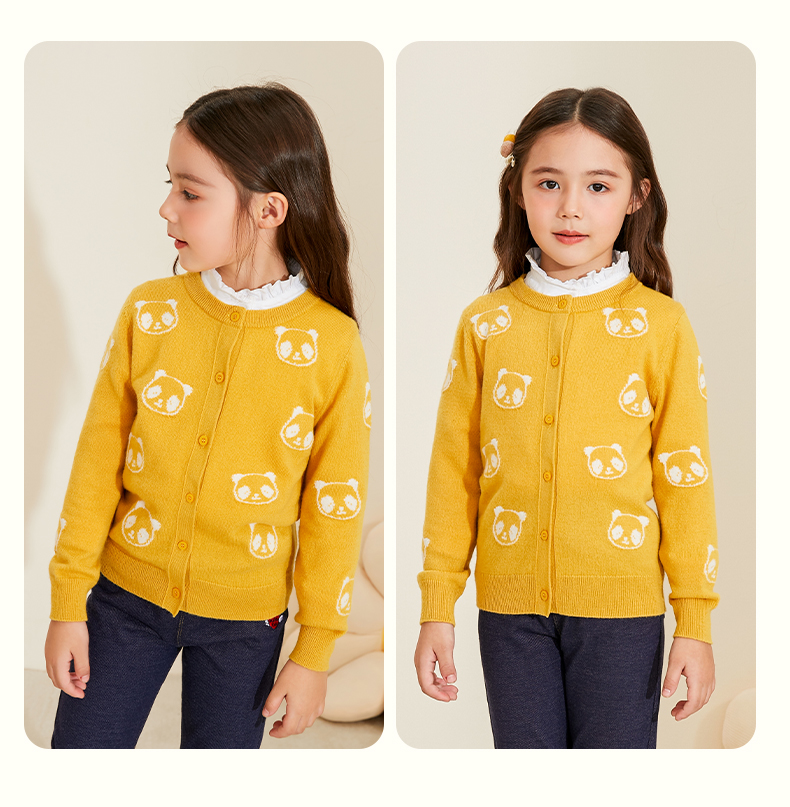 mettekids儿童羊绒衫春秋新款女童针织开衫中大童可爱熊猫毛衣