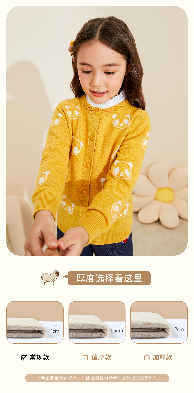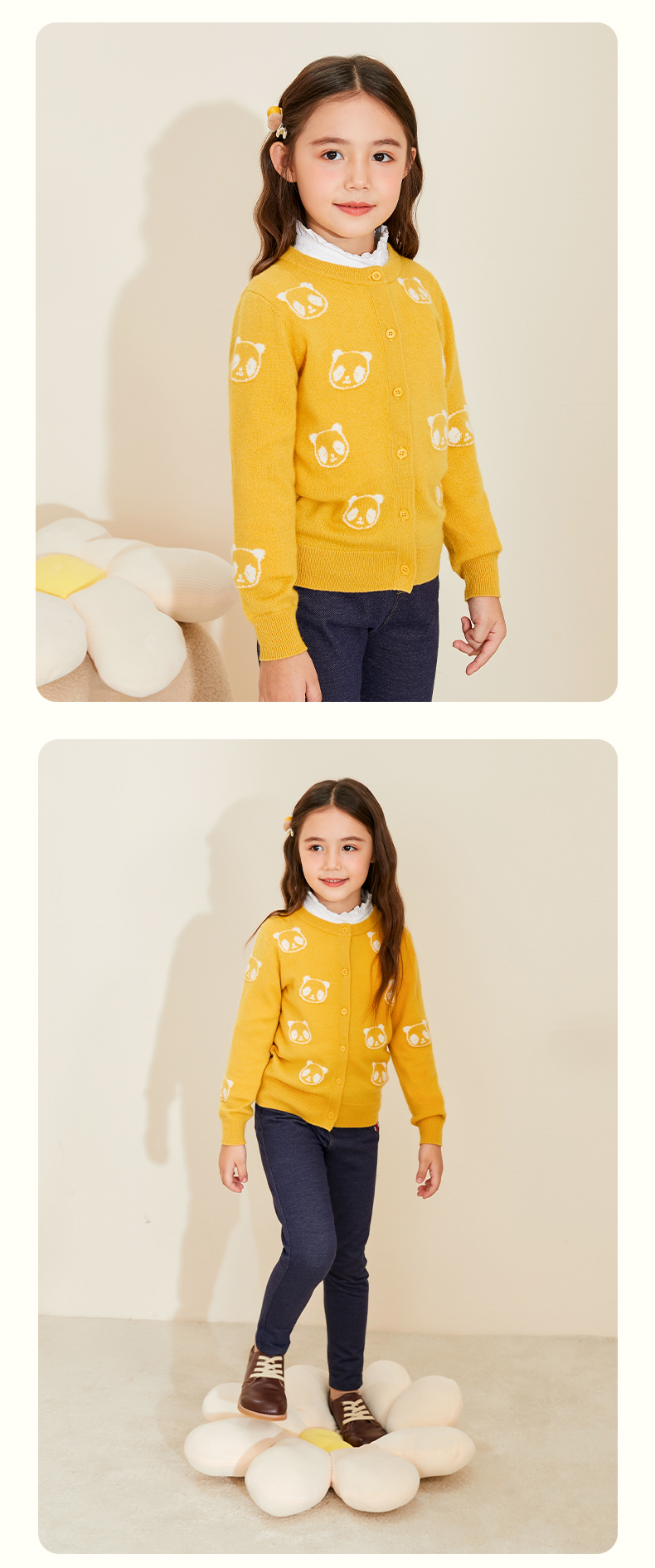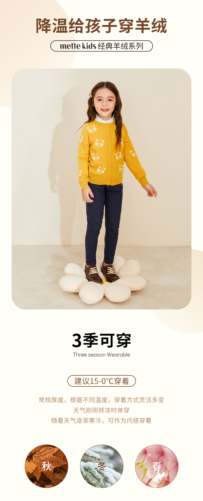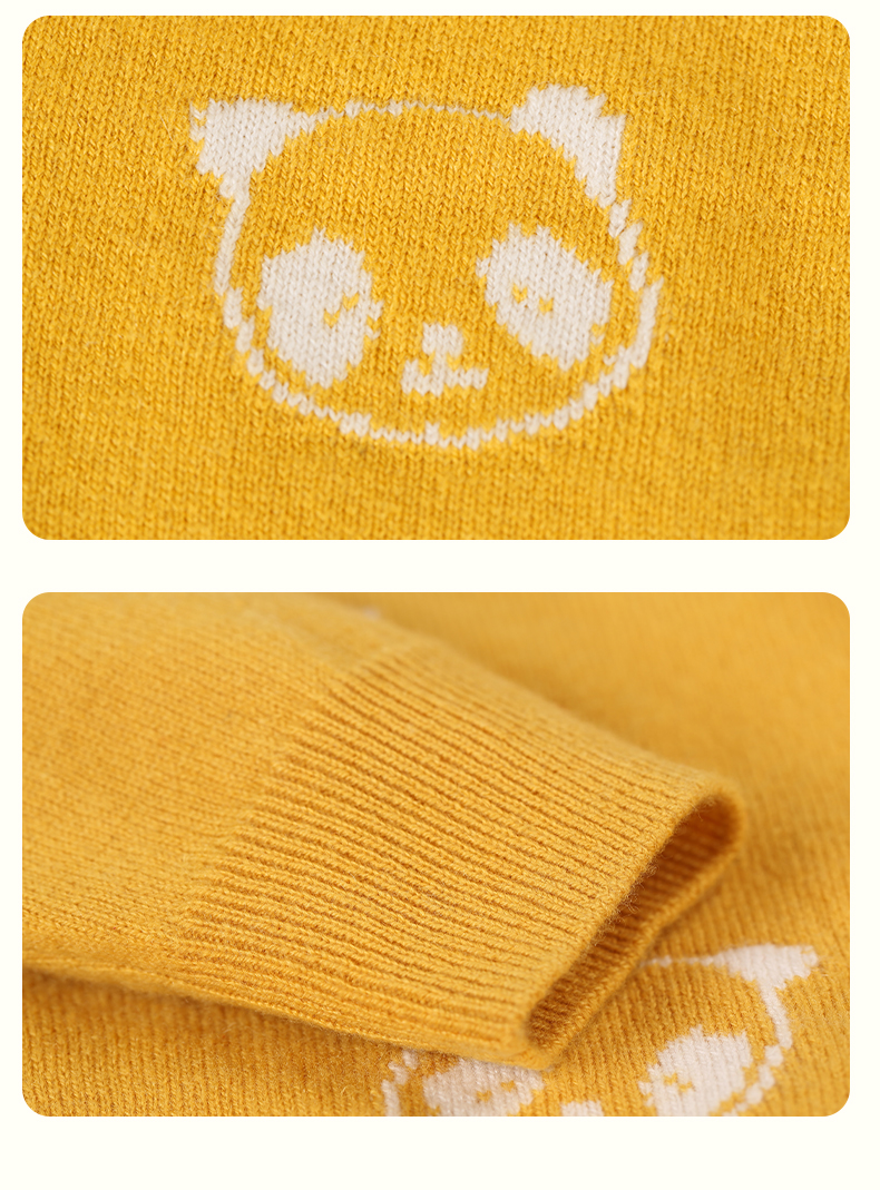 mettekids儿童羊绒衫春秋新款女童针织开衫中大童可爱熊猫毛衣