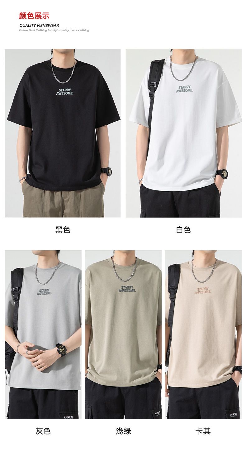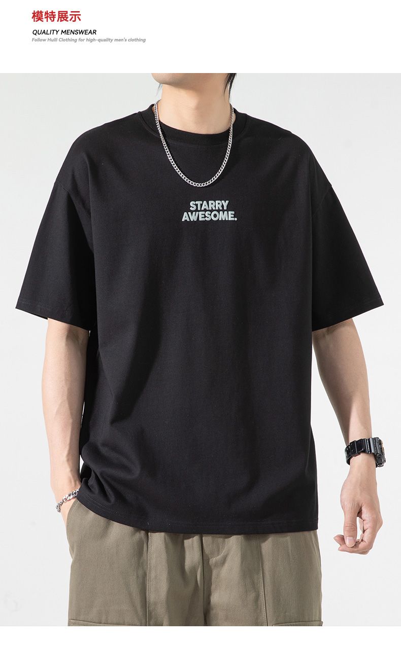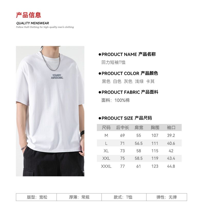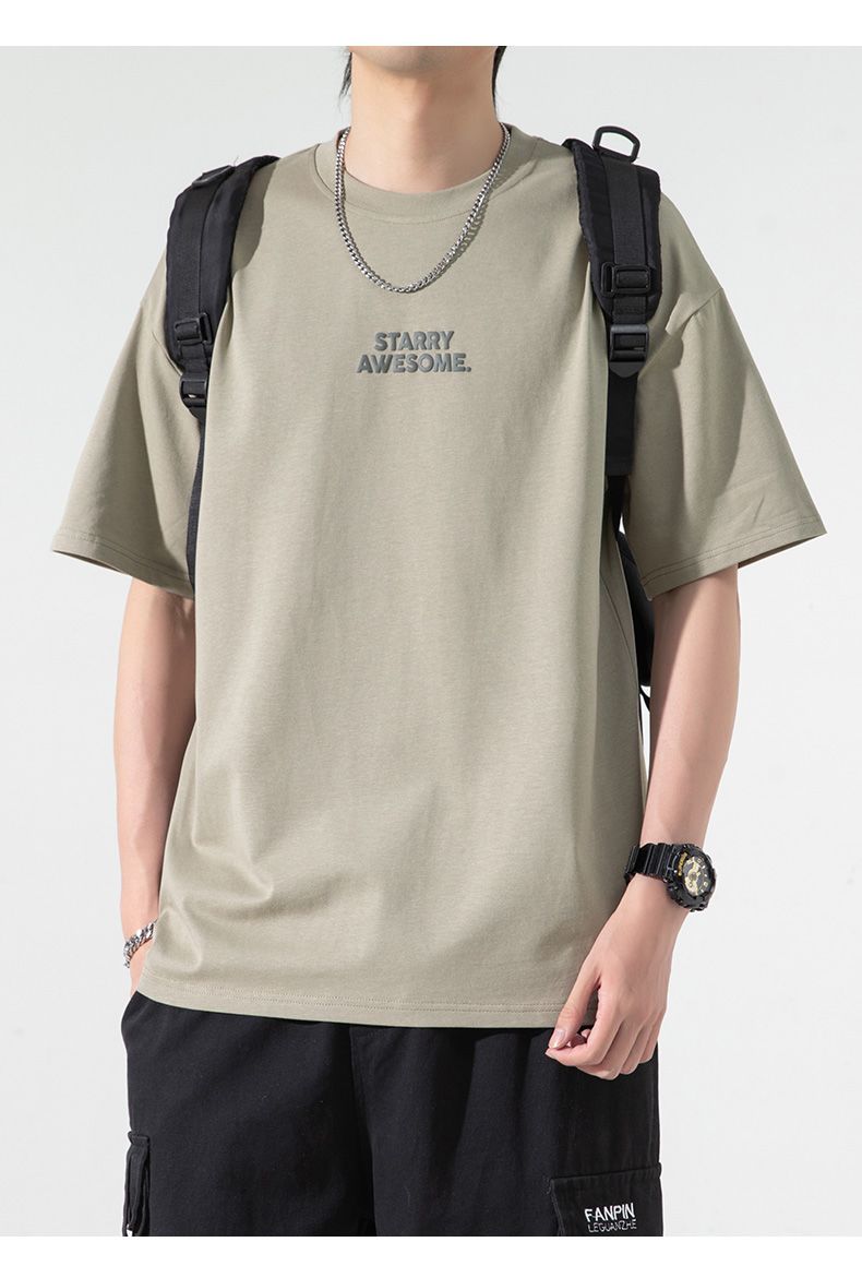 回力纯棉短袖T恤男士夏季新款日系简约重磅印花潮流半袖体恤