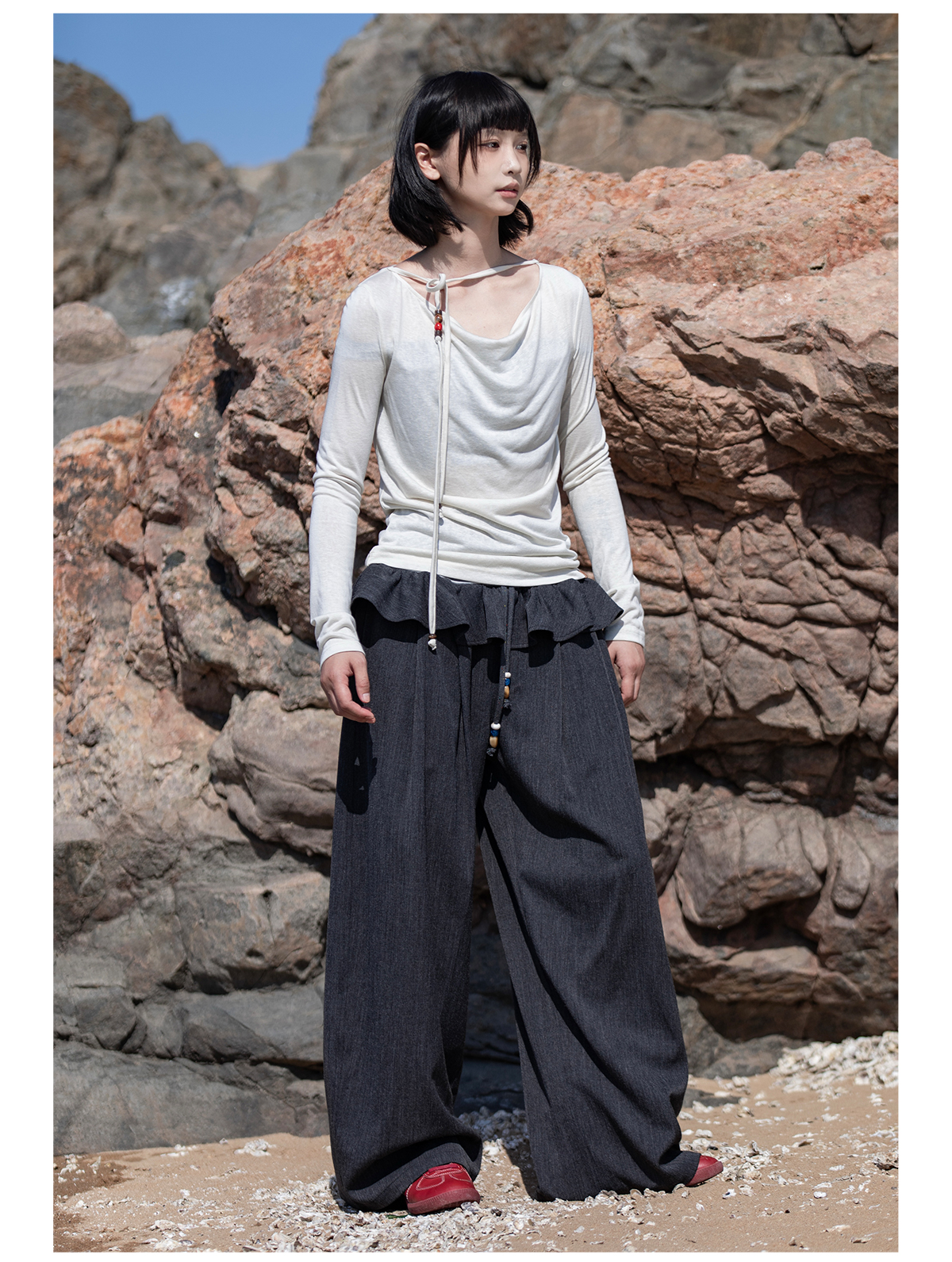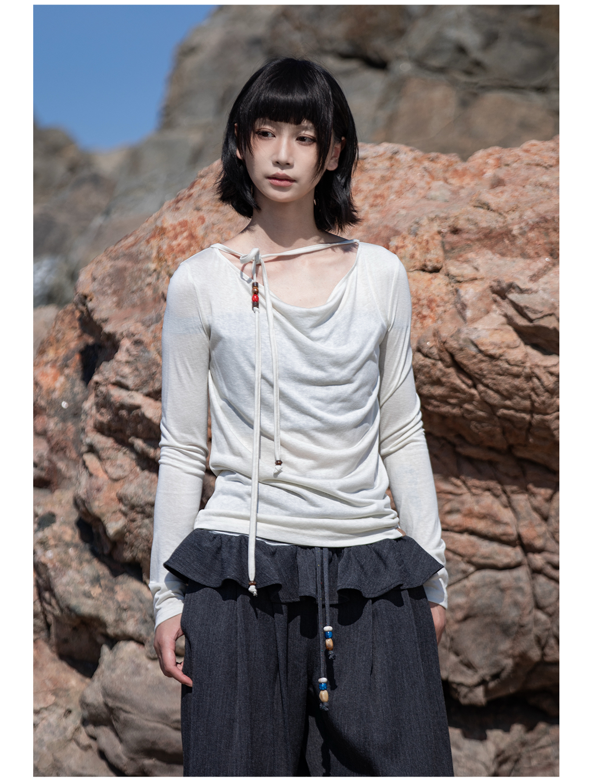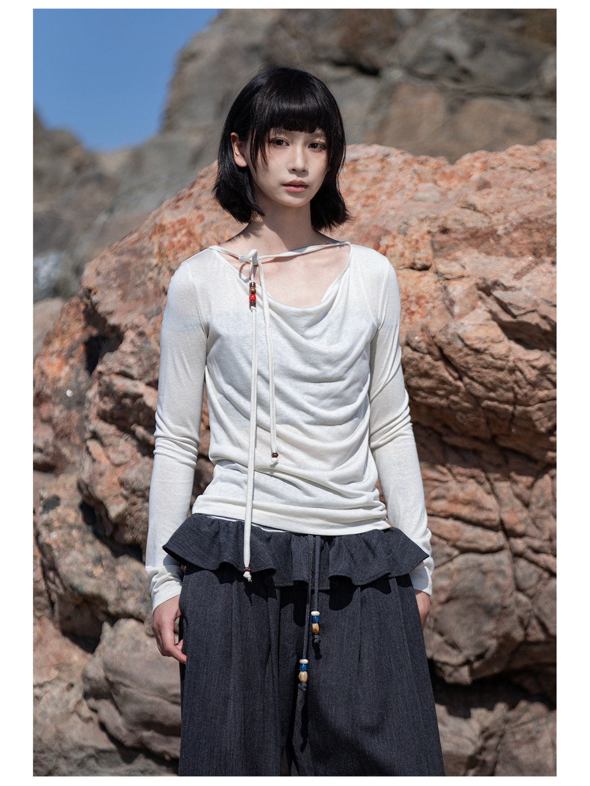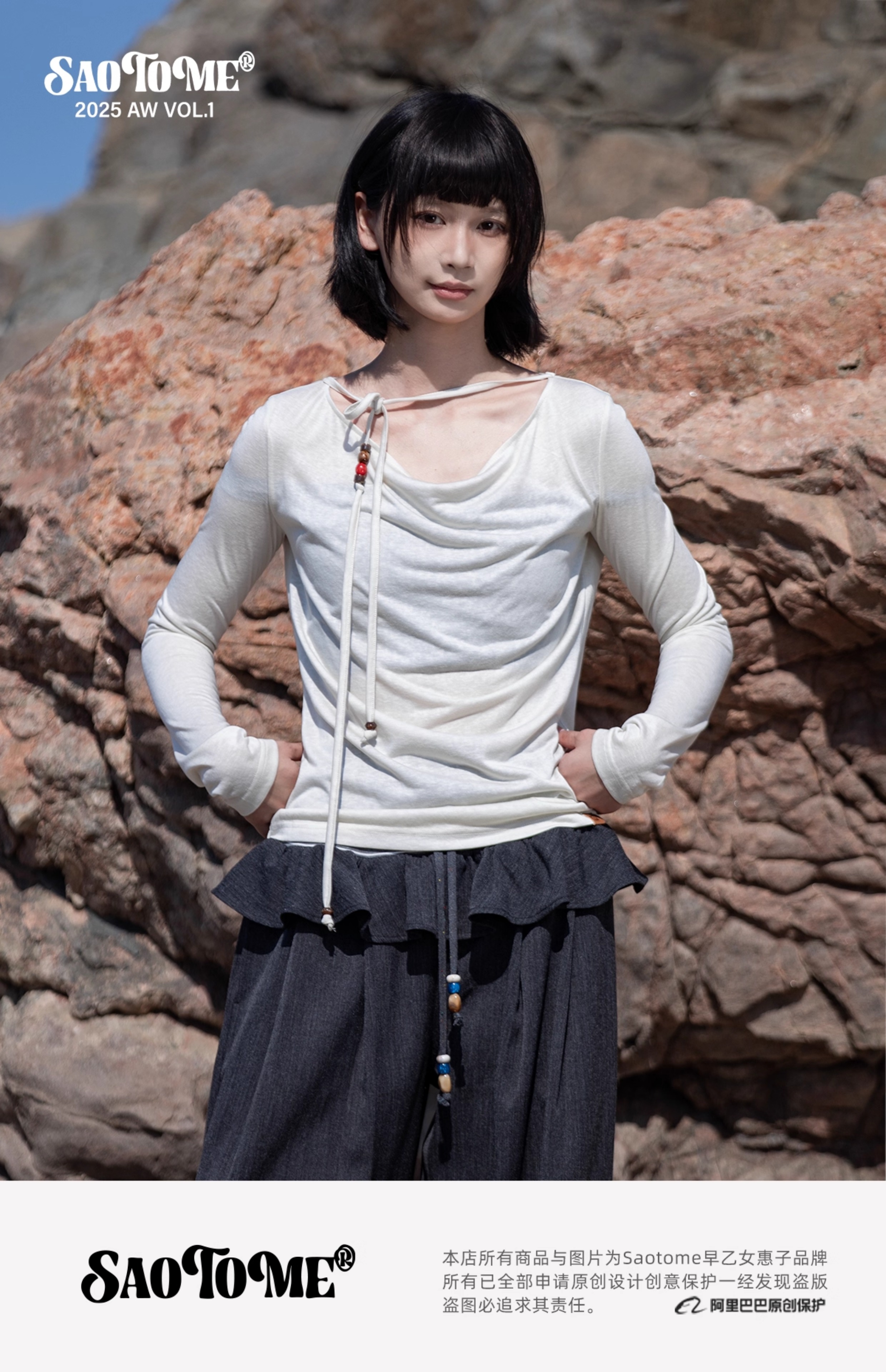 早乙女惠子saotome/STMTX13106/针织长袖荡领T恤