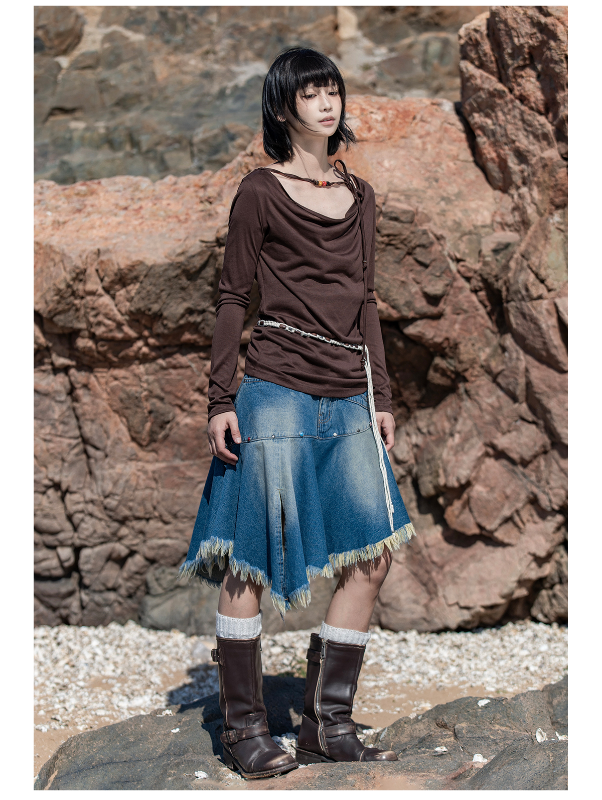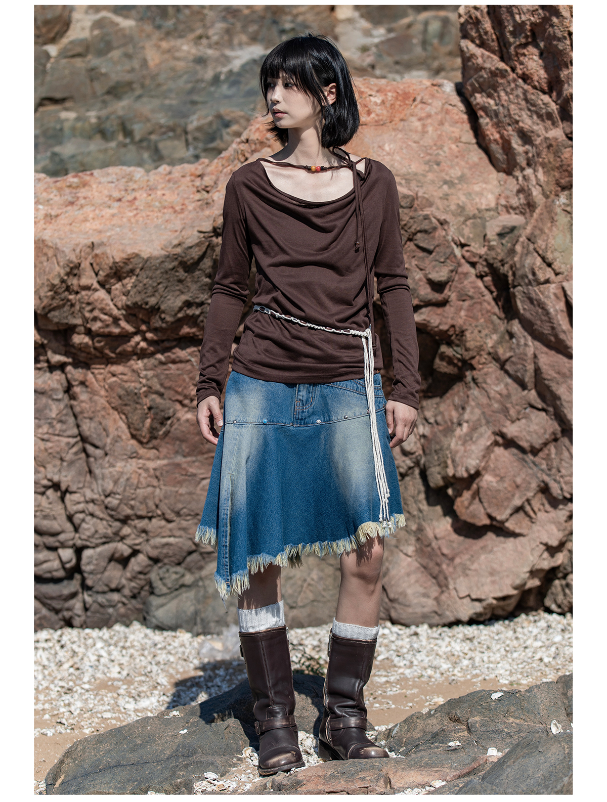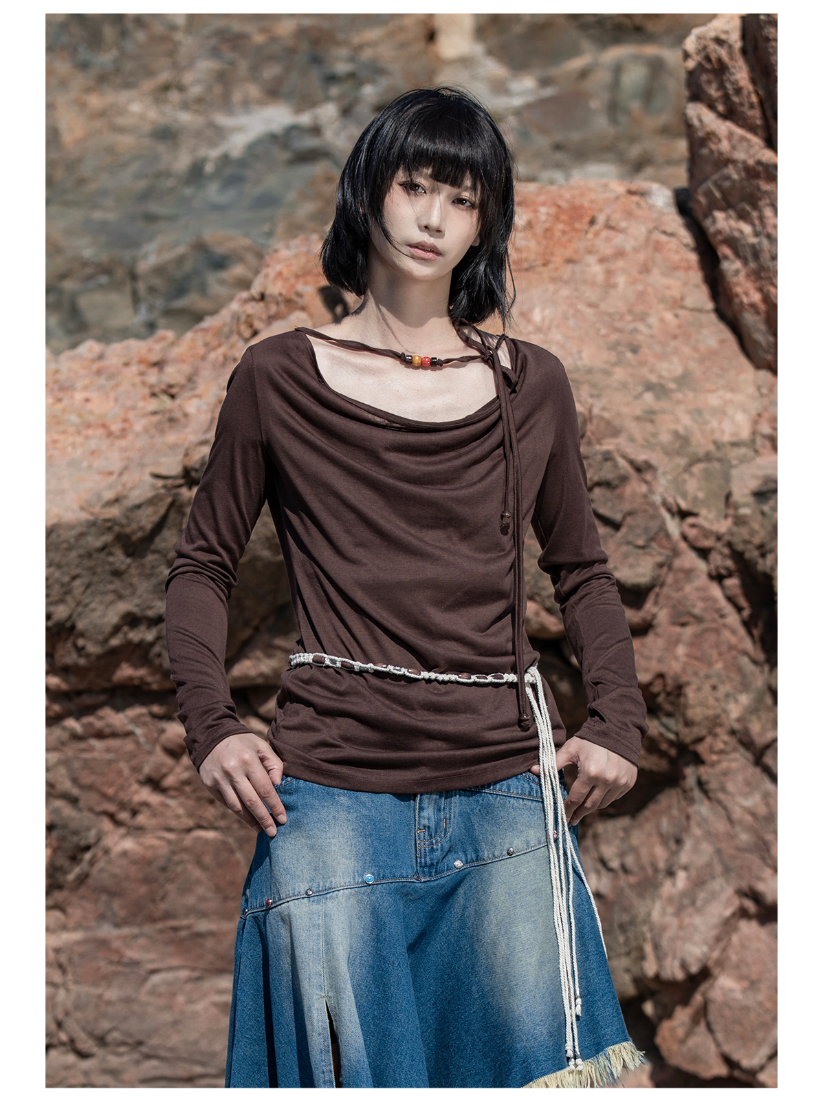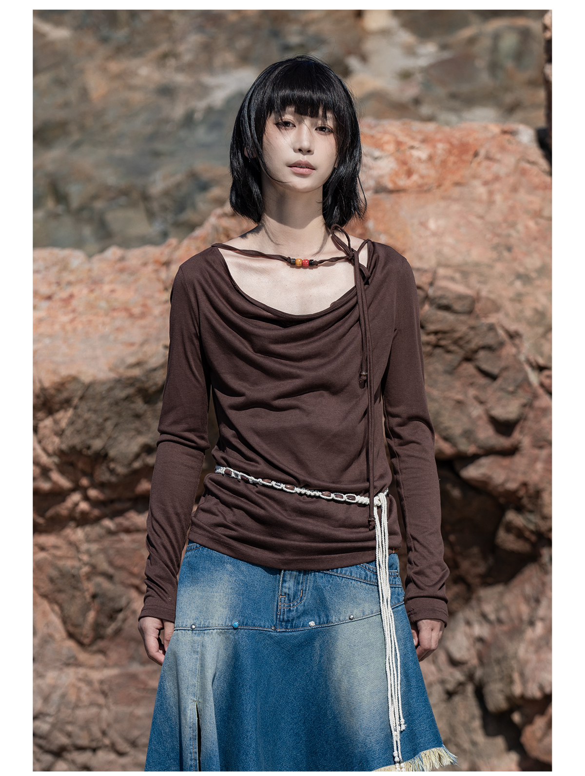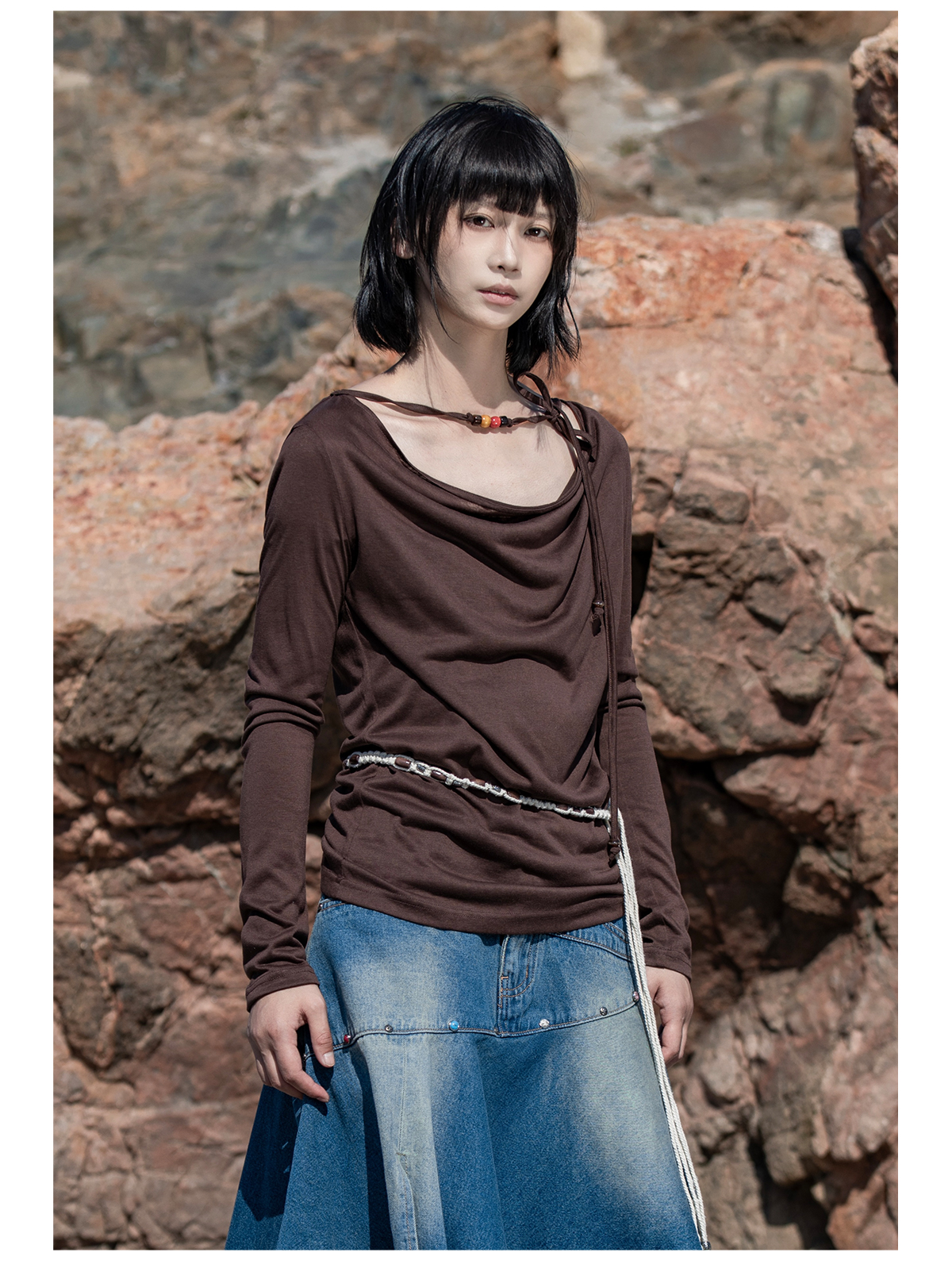 早乙女惠子saotome/STMTX13106/针织长袖荡领T恤