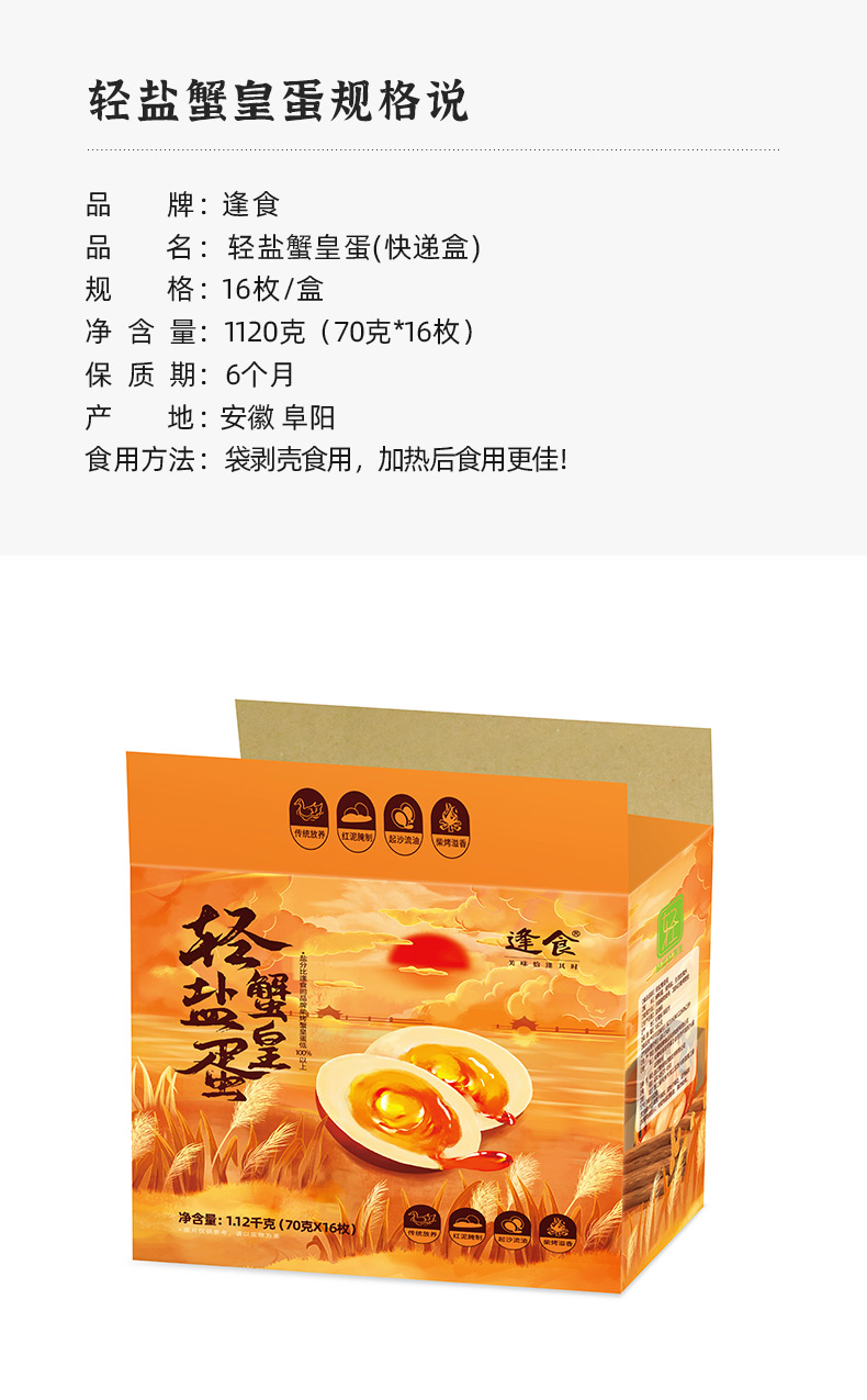 【原料甄选 恒温腌制】轻盐蟹黄蛋(76g*16枚)