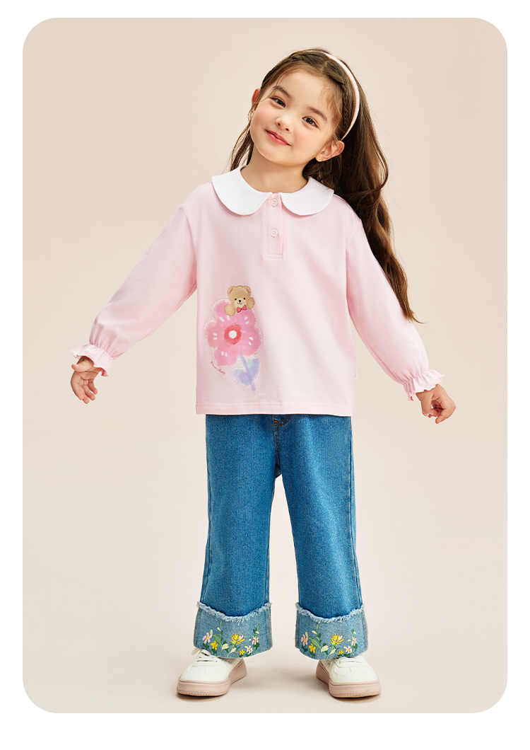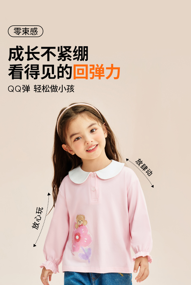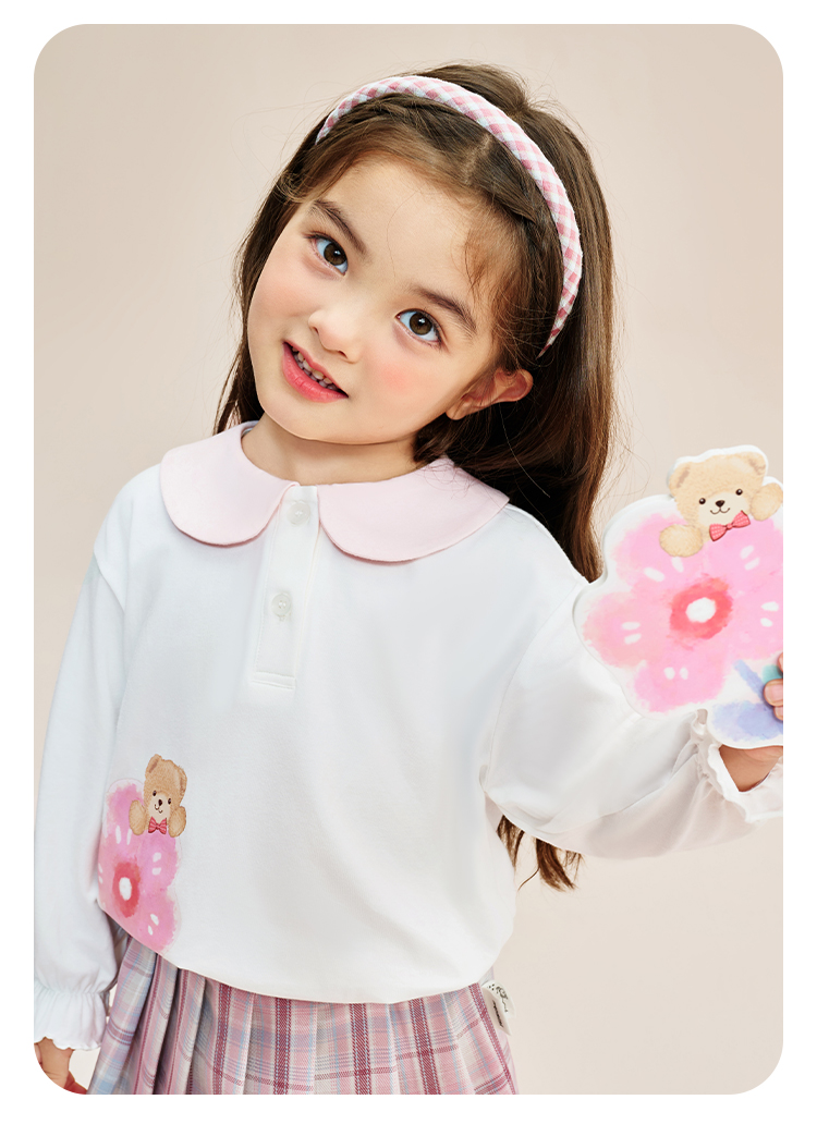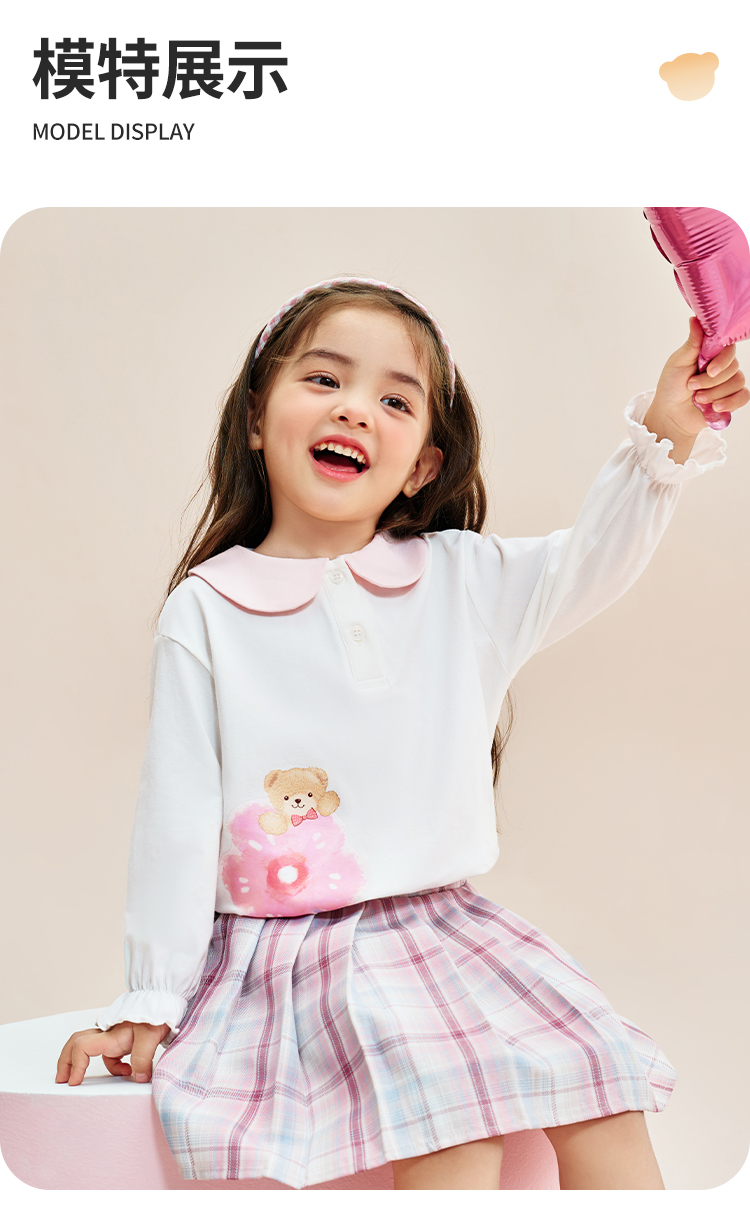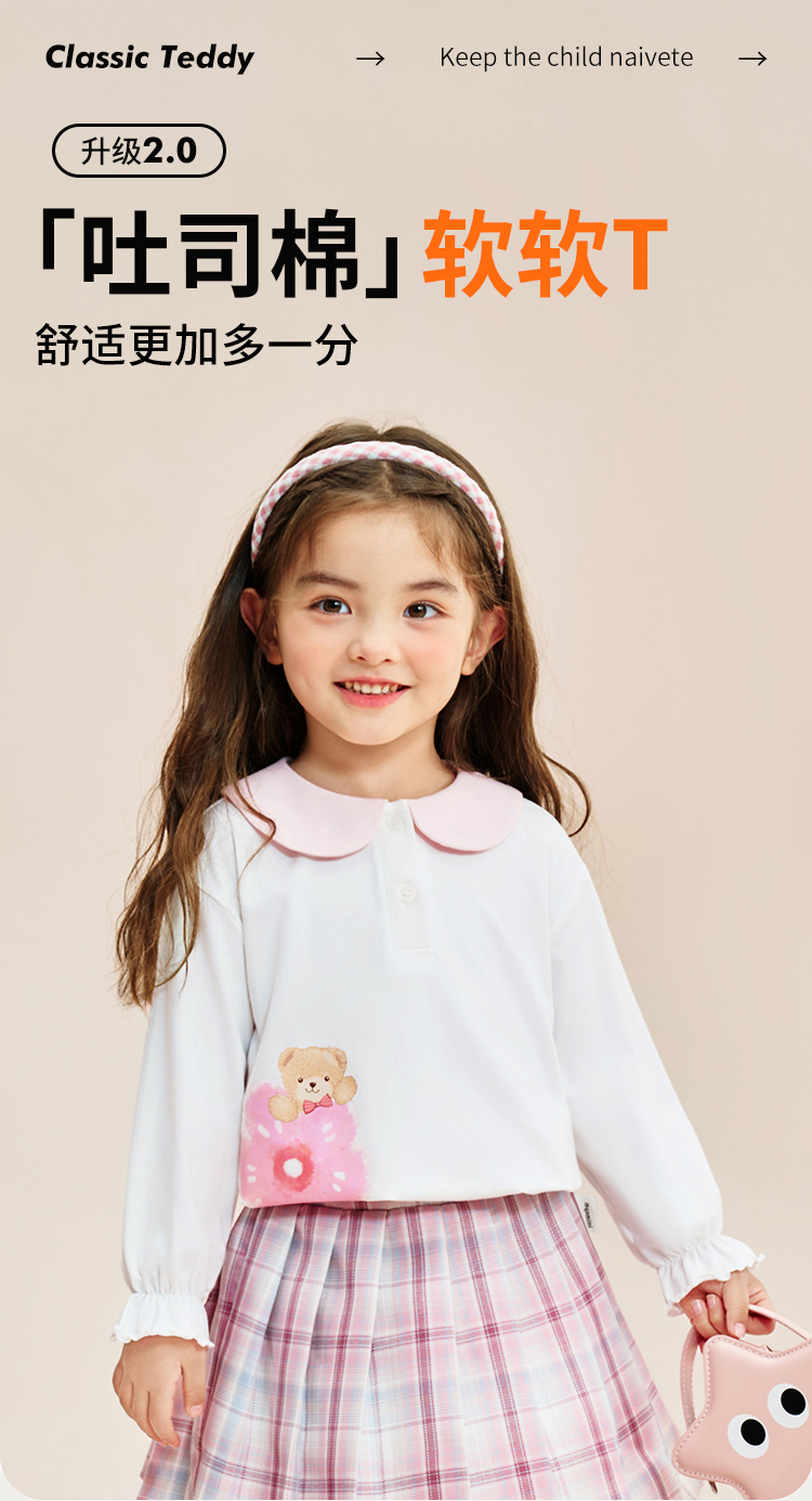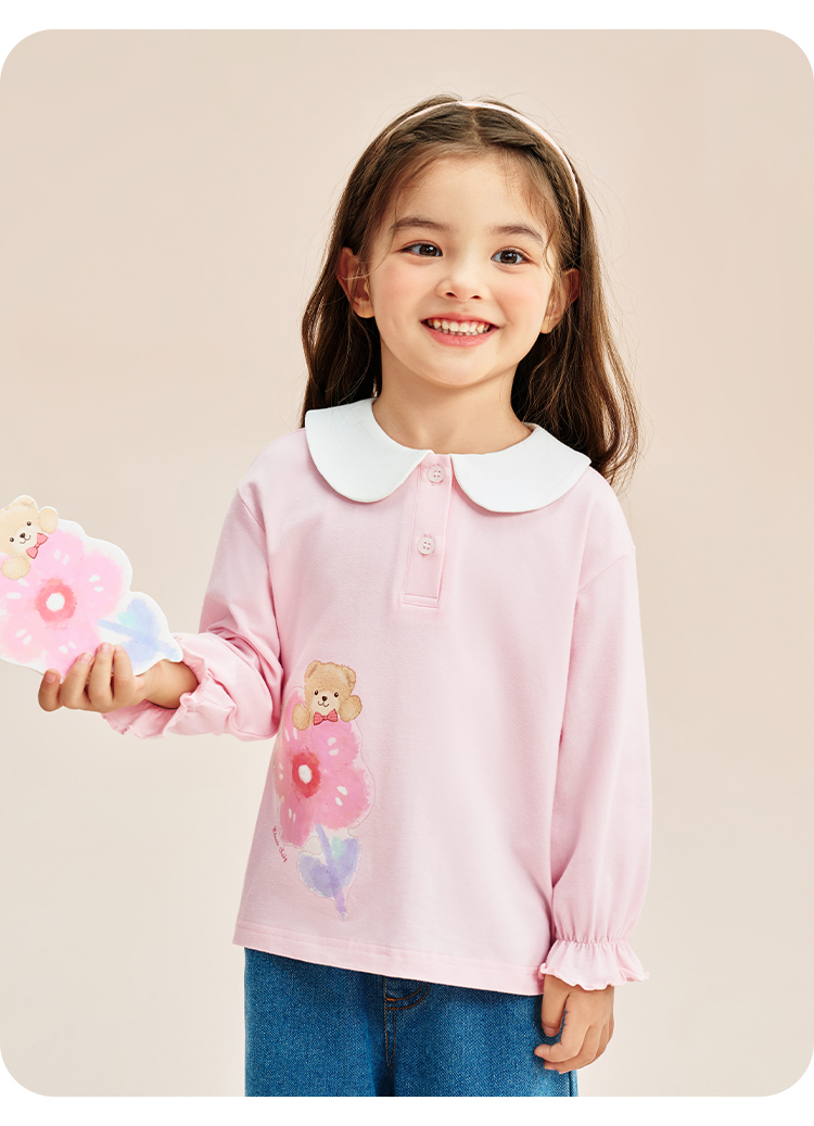 【90-140】【精典泰迪】女童春秋长袖T恤娃娃领打底衫(92%棉 8%氨纶)