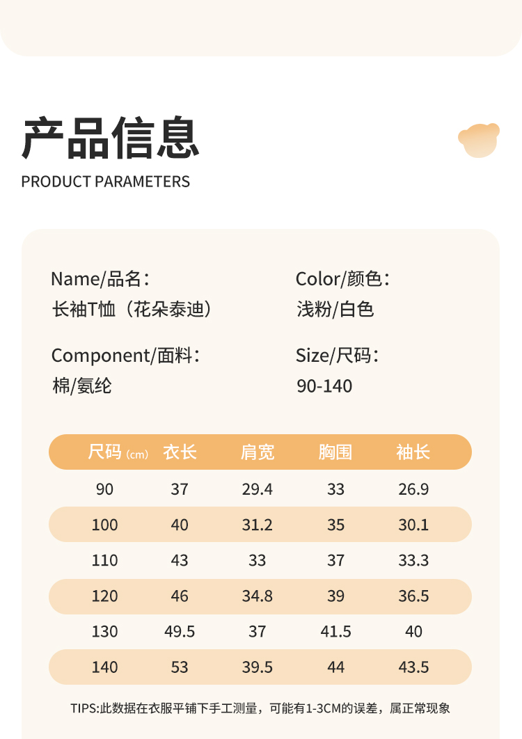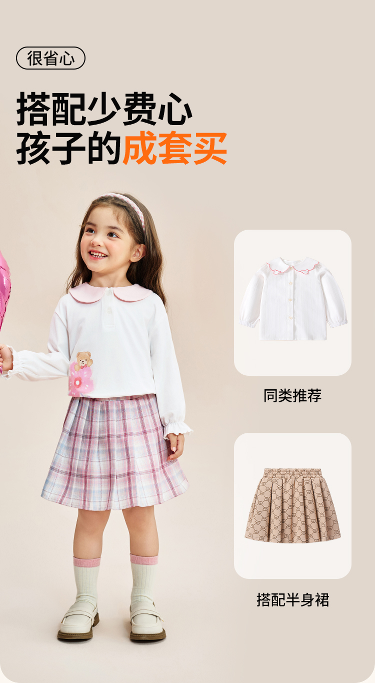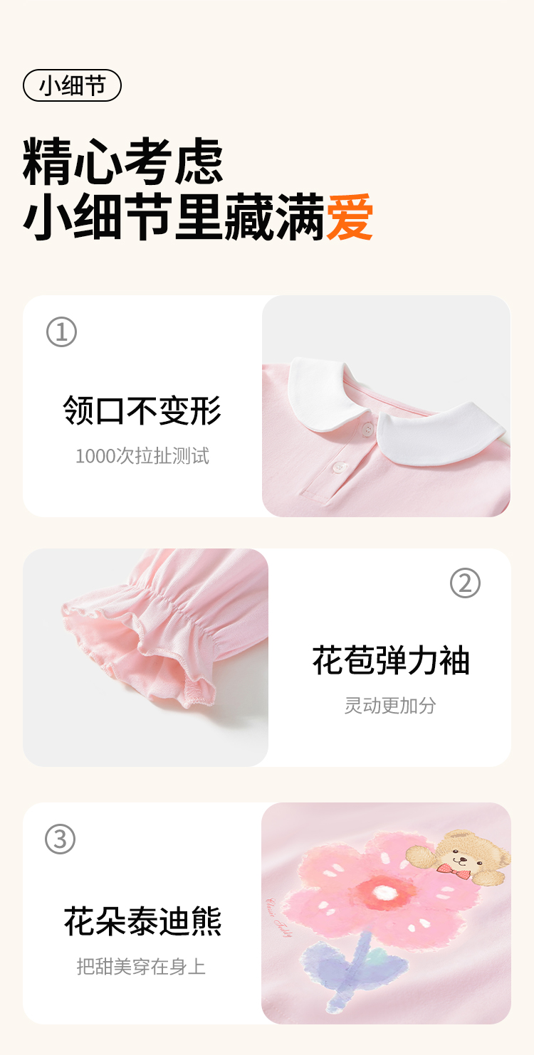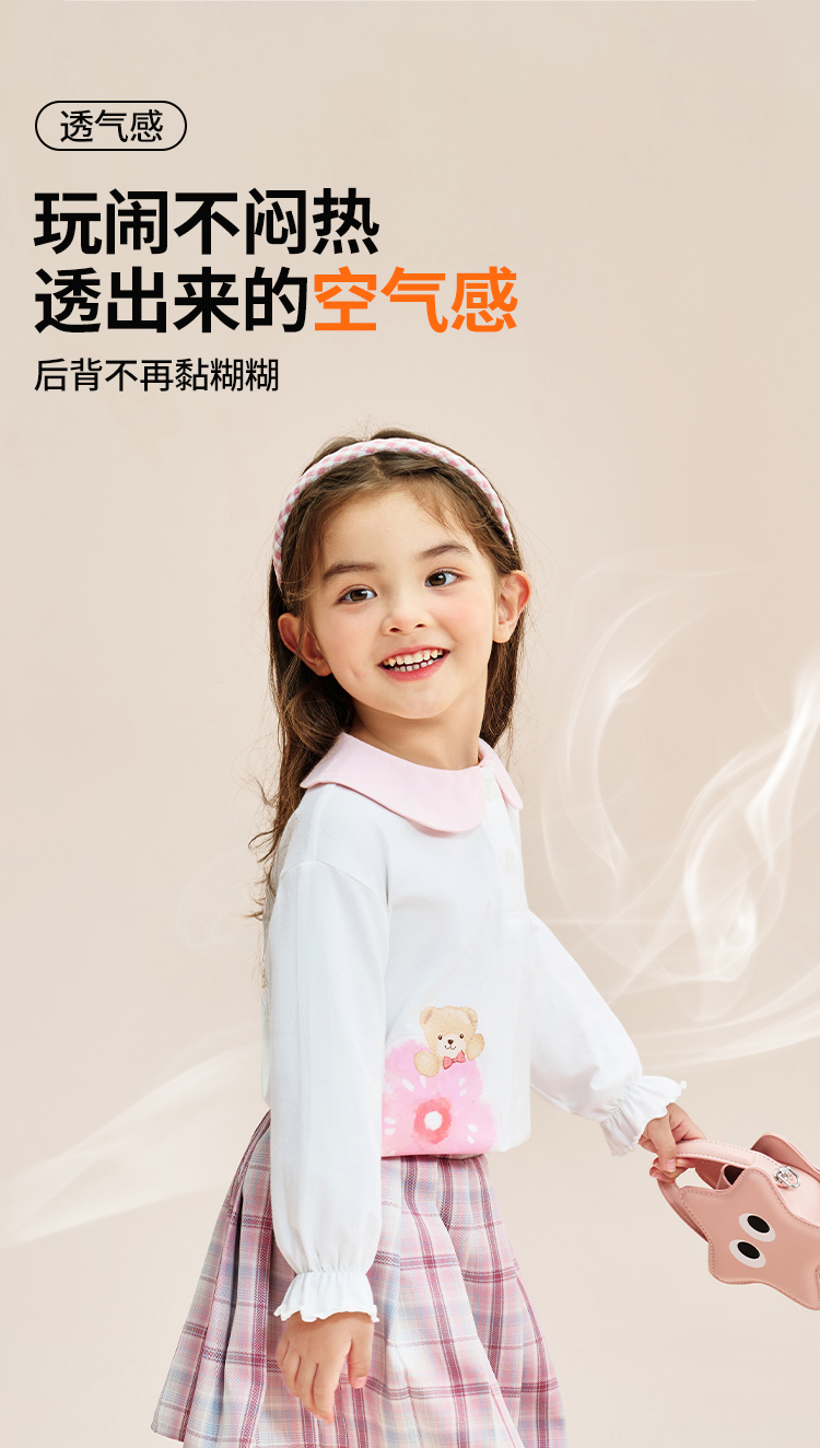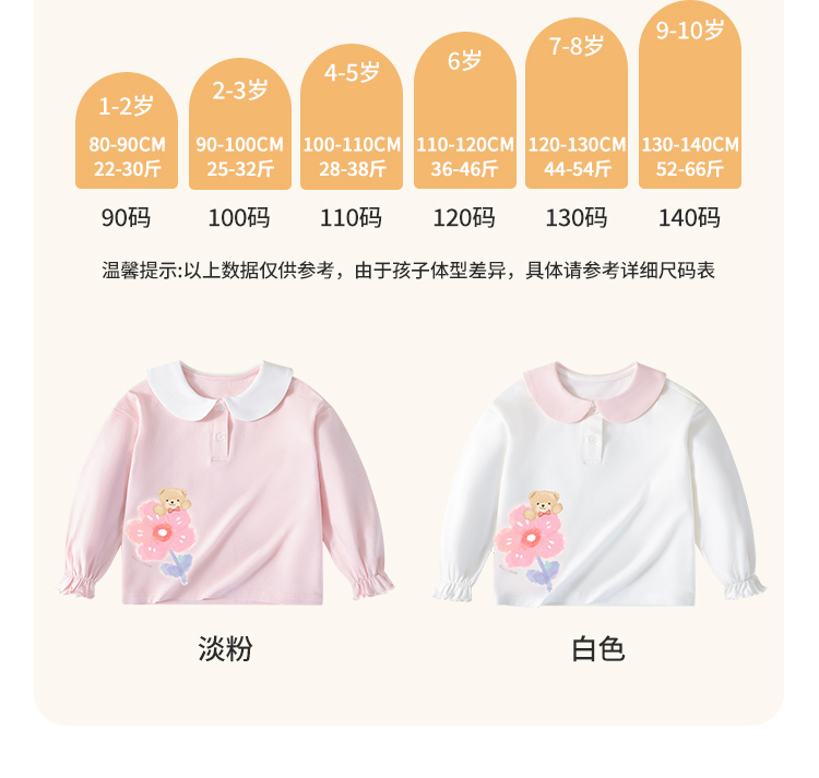 【90-140】【精典泰迪】女童春秋长袖T恤娃娃领打底衫(92%棉 8%氨纶)