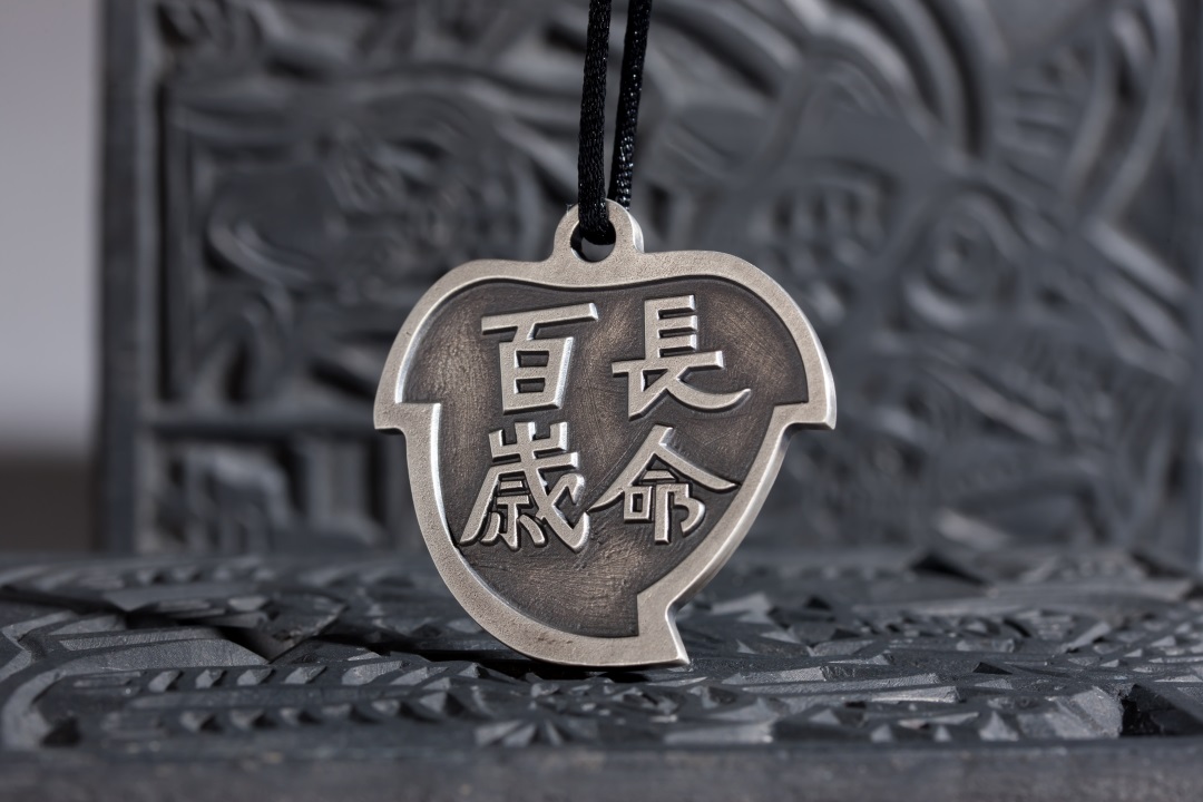 矩德泉坊 纯银手作 长命百岁地久天长挂花(4.7厘米版)gq221000611