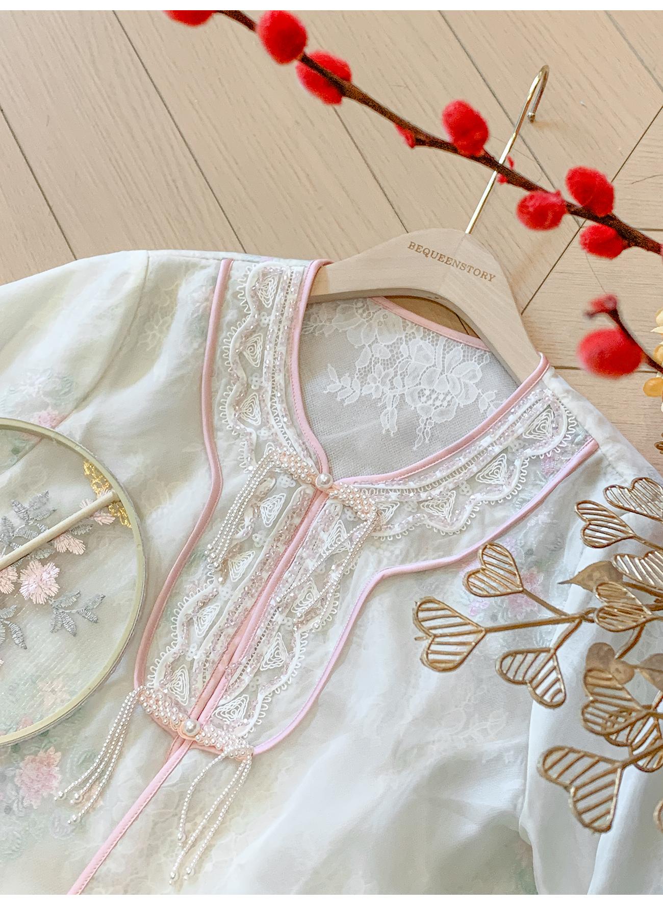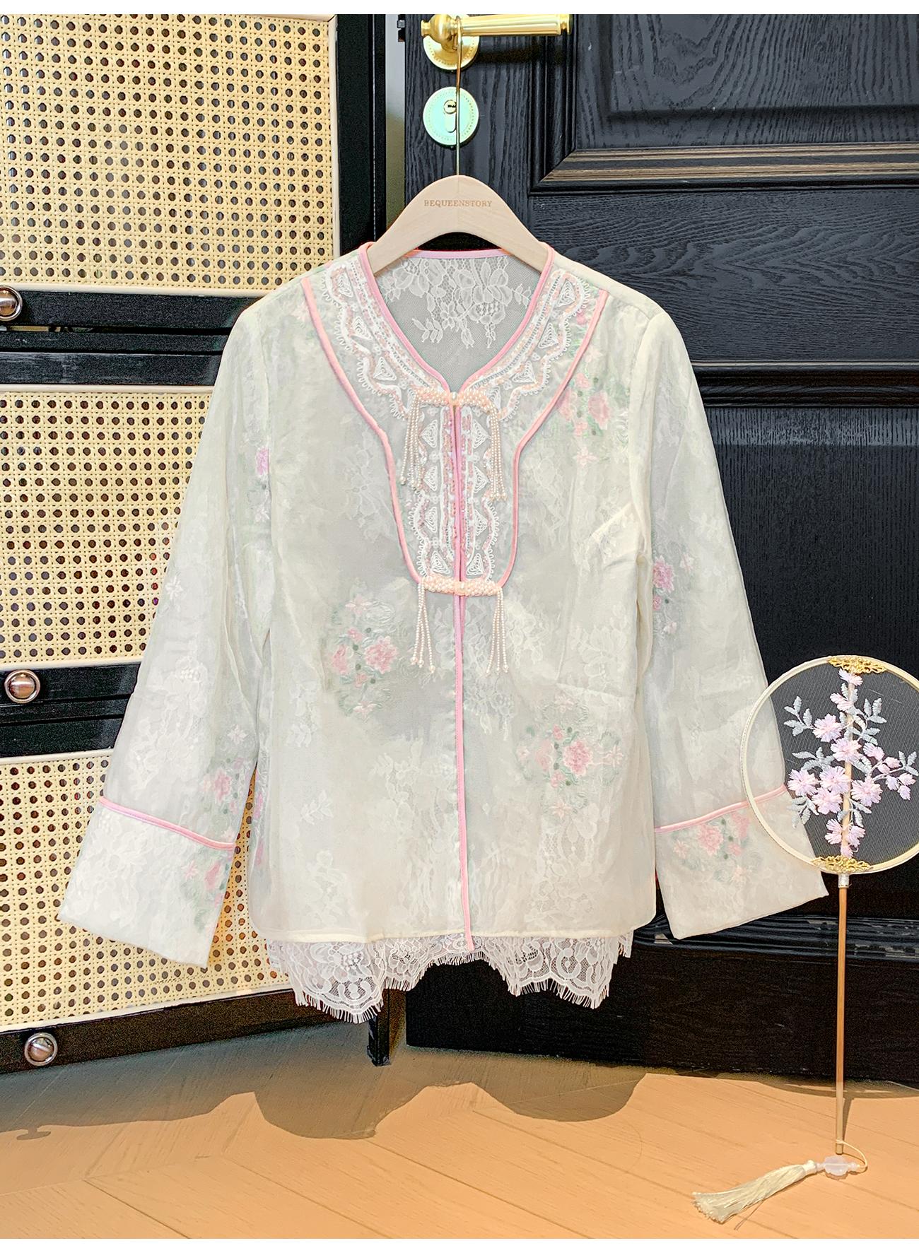 BeQueenStory【粉黛春歇】新中式复古重工含桑蚕丝国风早春款上衣