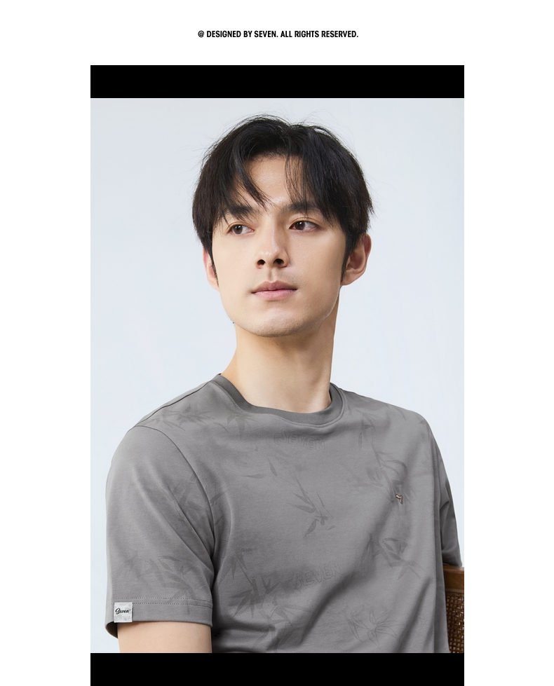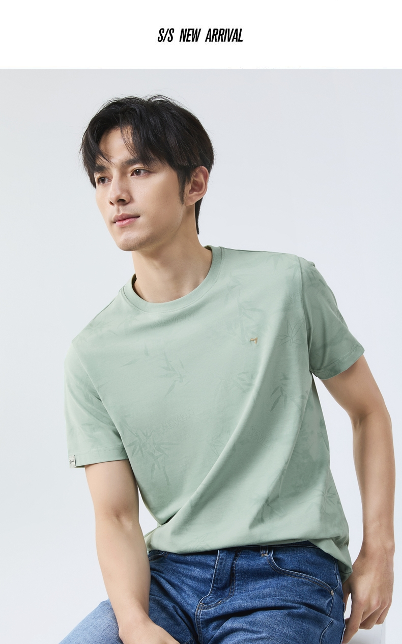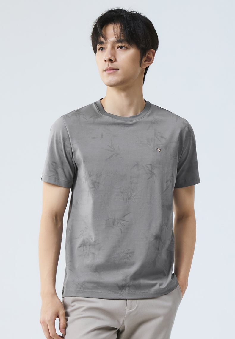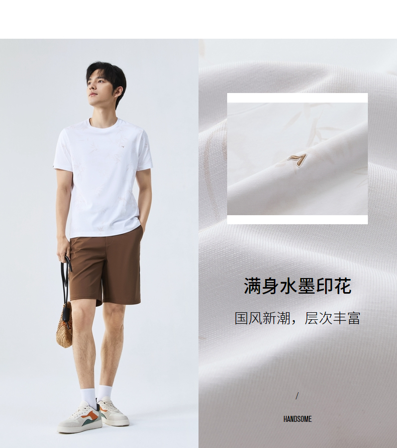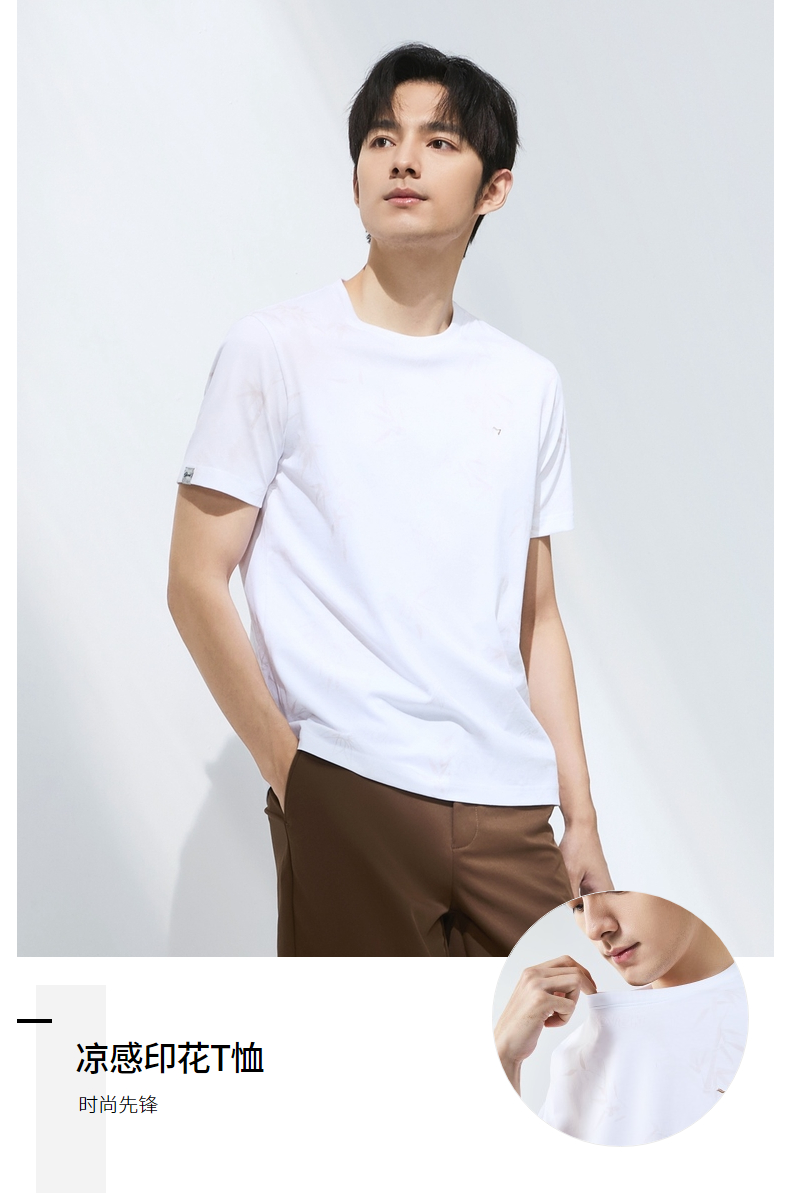 【国风图案T恤/凉感】柒牌短袖T恤男士夏季新款竹子印花圆领上衣128T72870