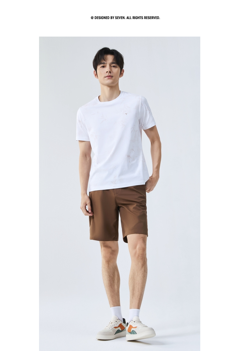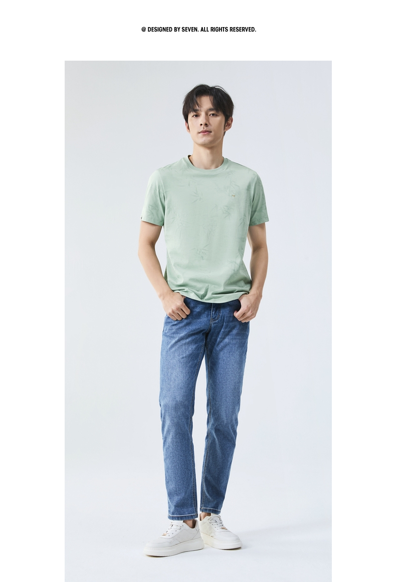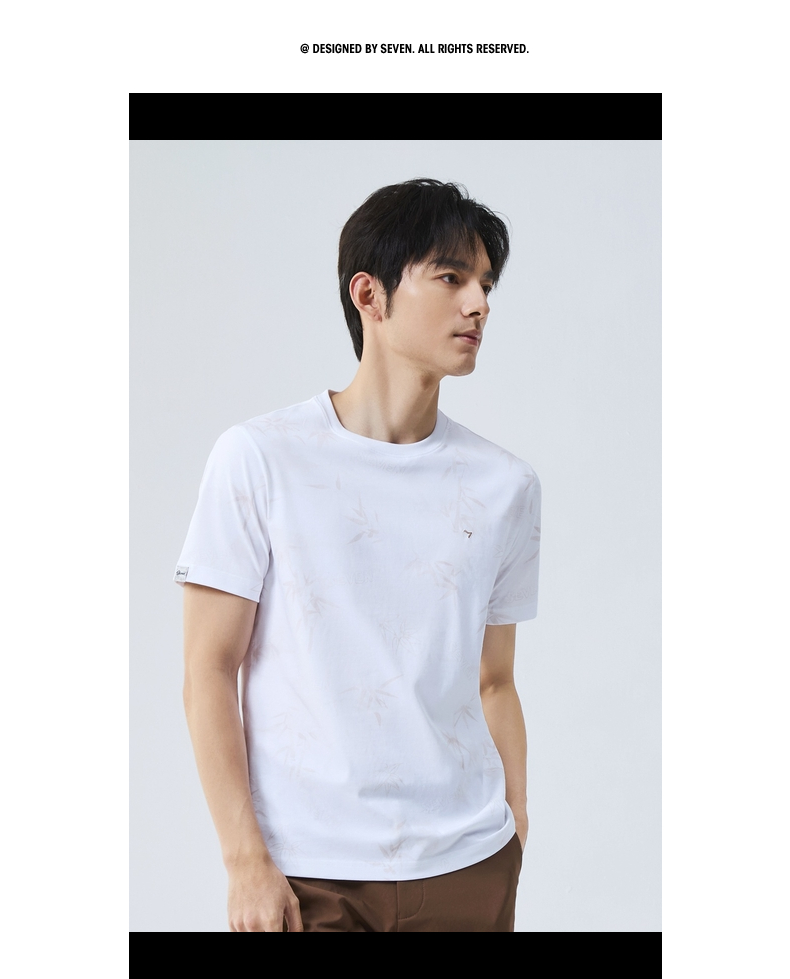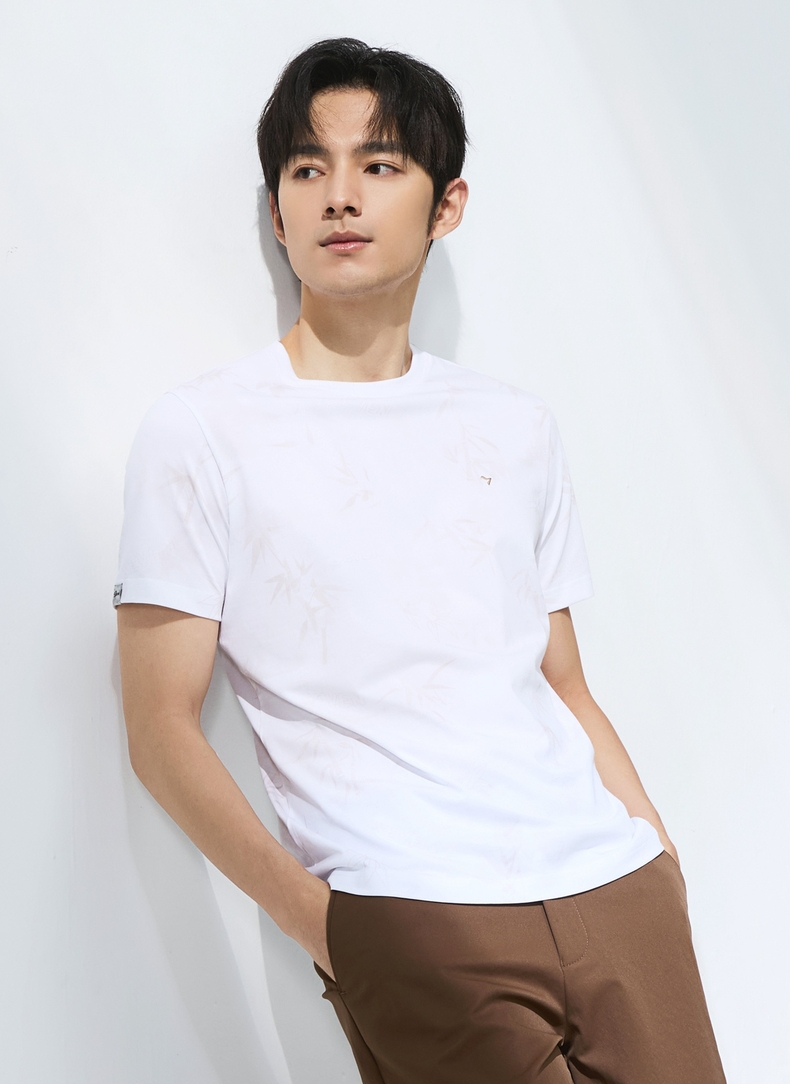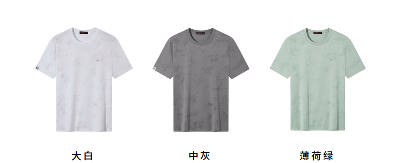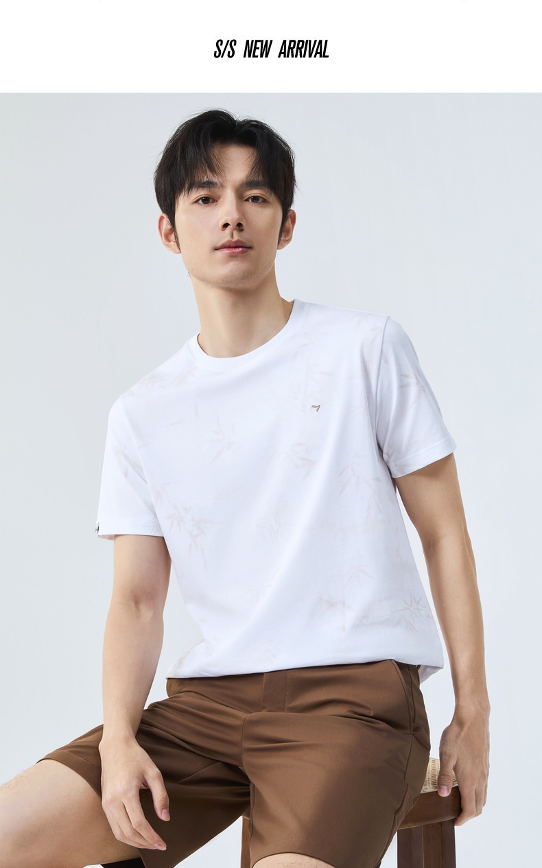 【国风图案T恤/凉感】柒牌短袖T恤男士夏季新款竹子印花圆领上衣128T72870