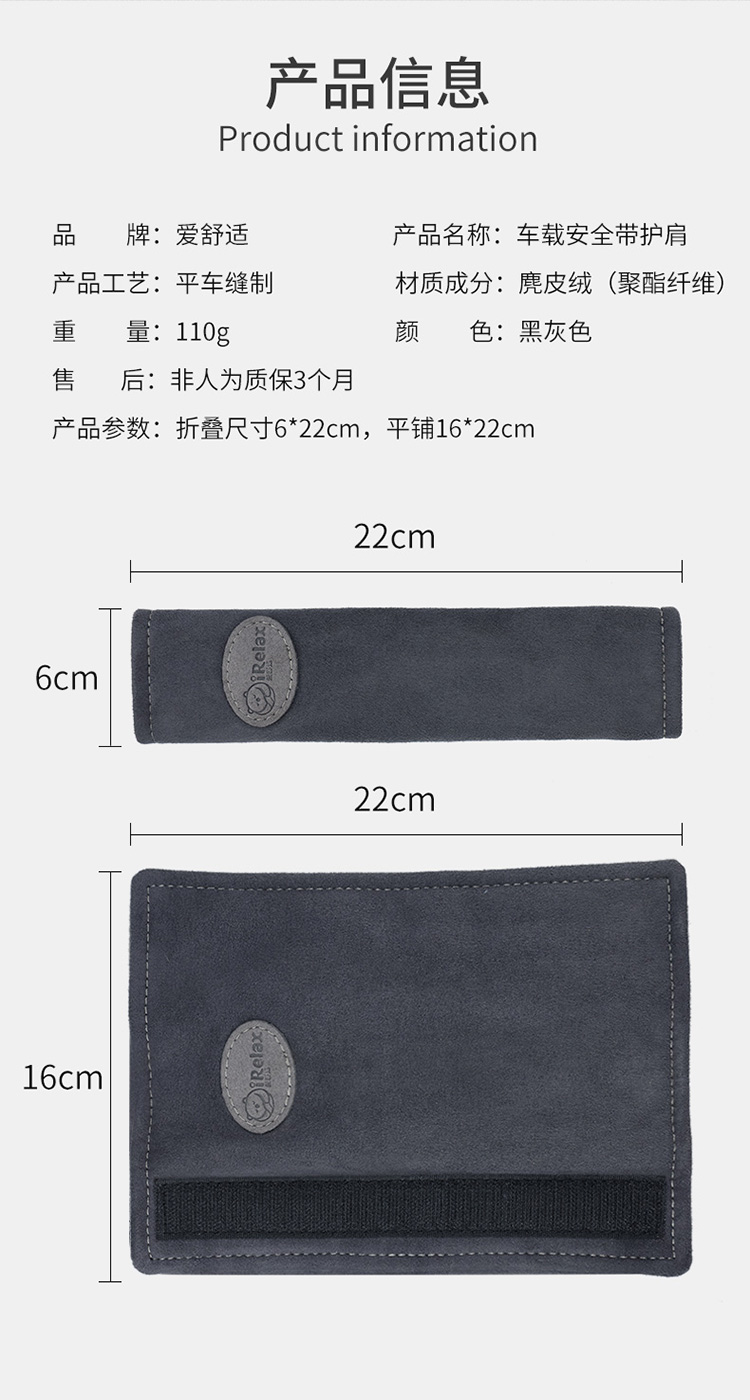 麂皮绒汽车安全带护肩套 柔软防勒 防起球 车内保险带保护套护肩