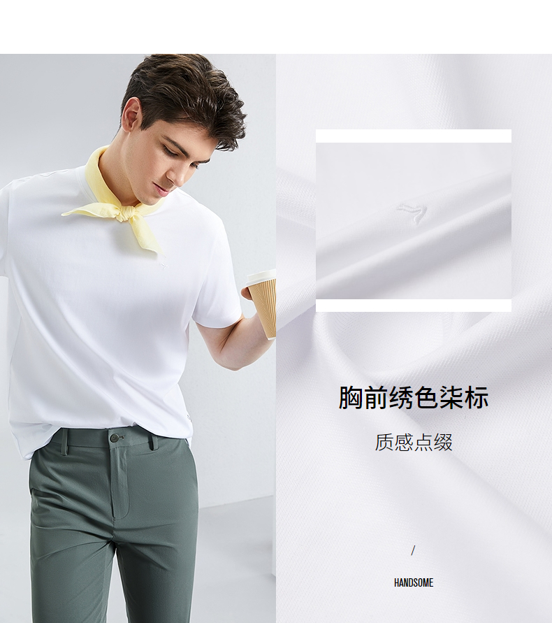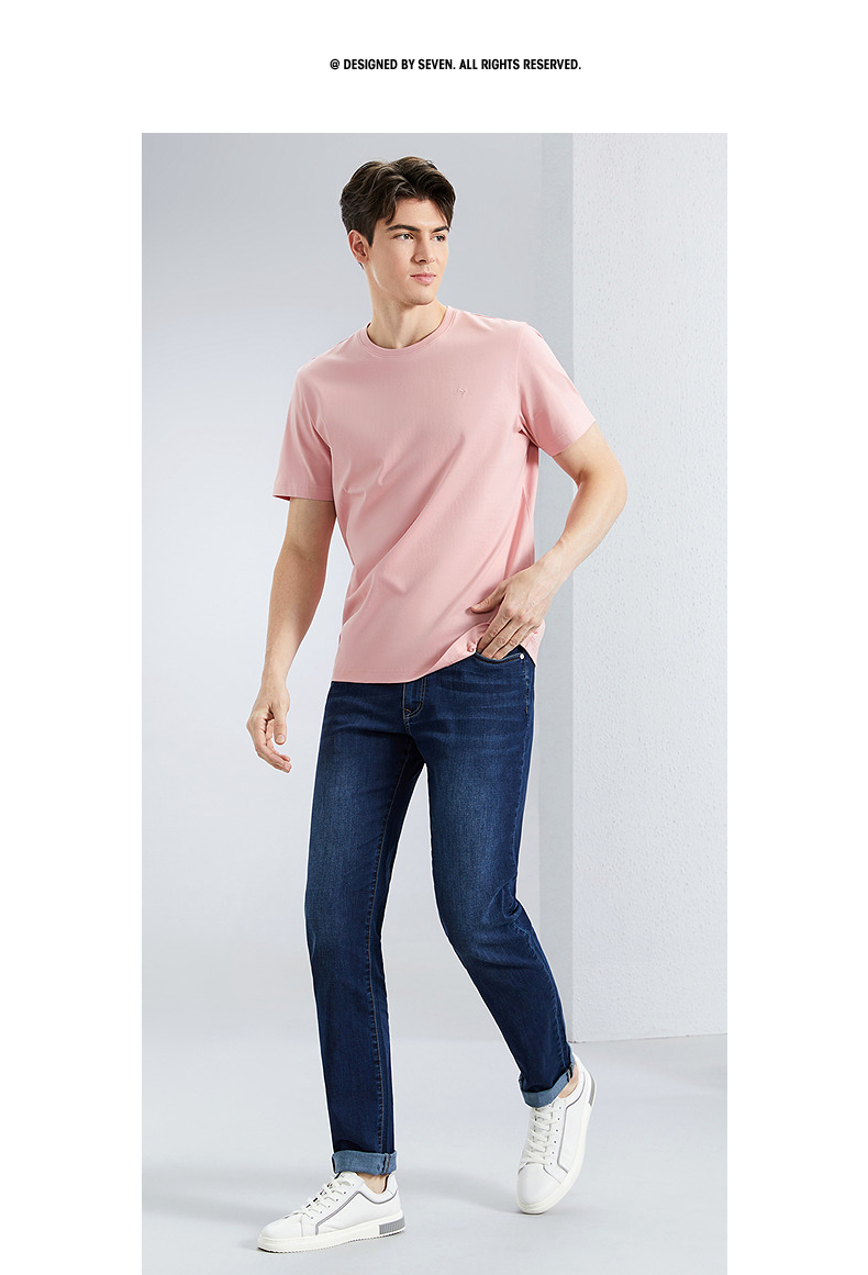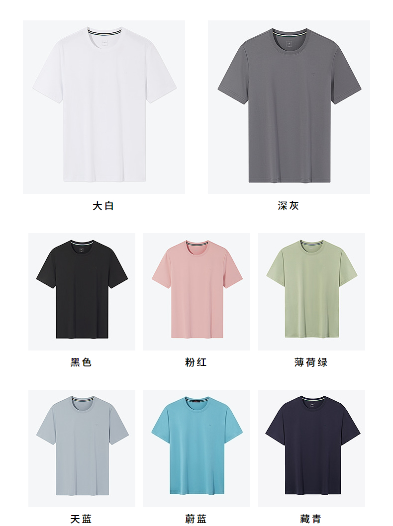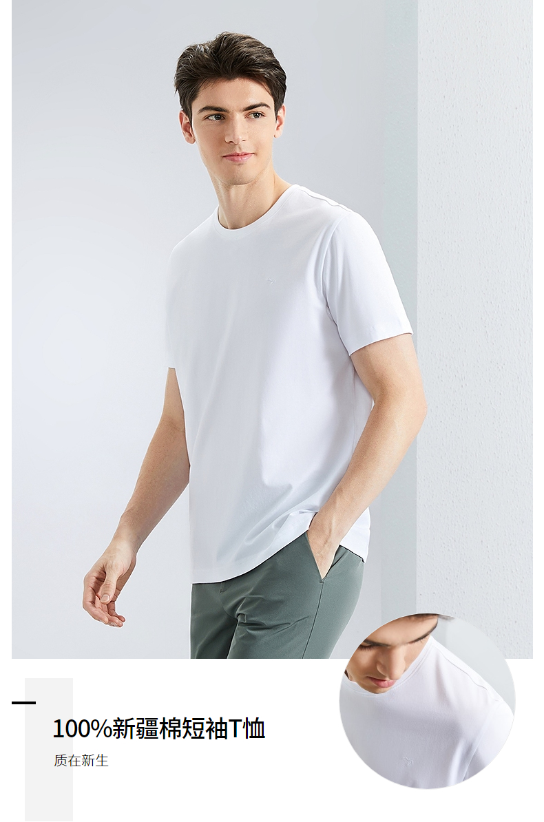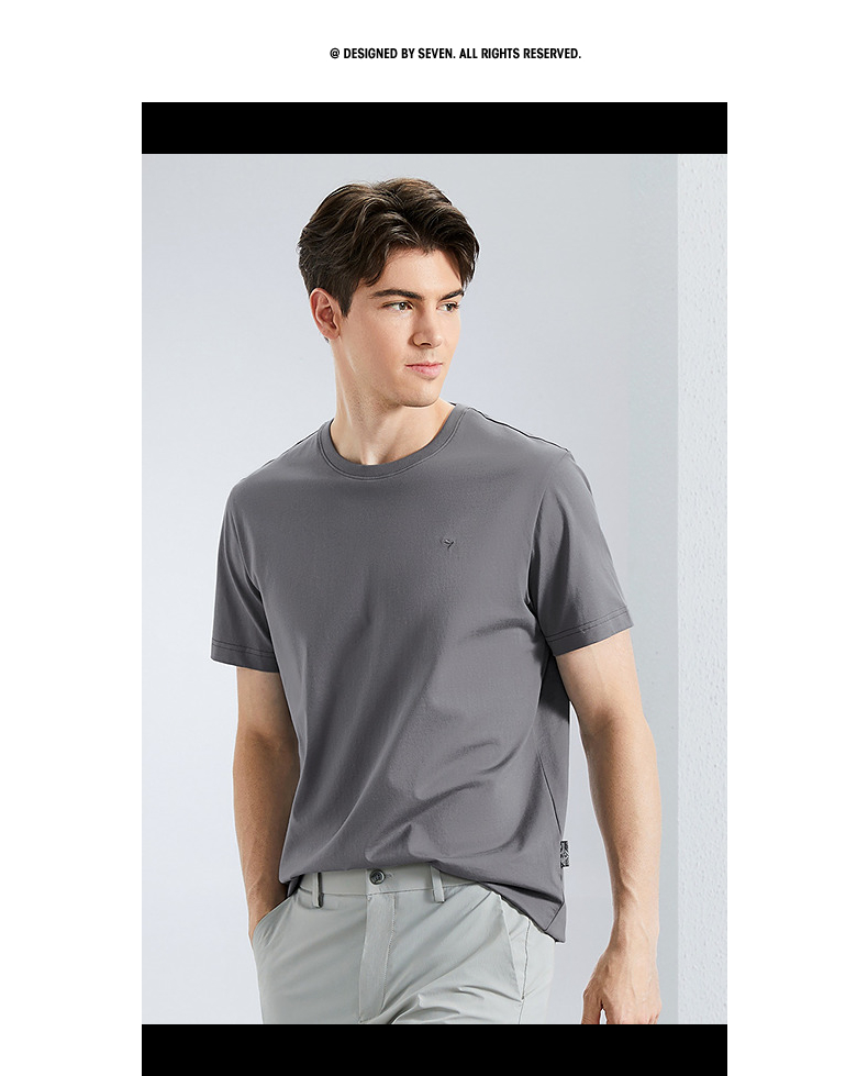 【5A抗菌2A防螨】柒牌短袖T恤男夏季新款新疆棉亲肤舒适圆领上衣 126T72290