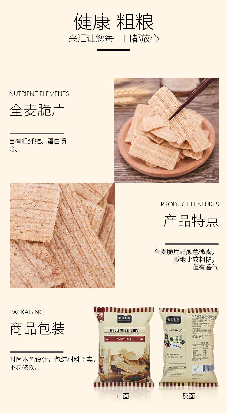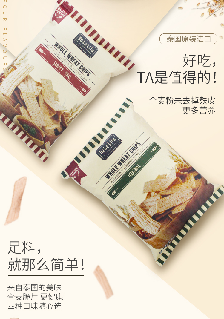 泰国采汇全麦脆片70g甜烧烤玉米味/酸奶洋葱味/烟熏烧烤味/原味 麦香四溢酥香薄脆 052301/051930/051255/051946