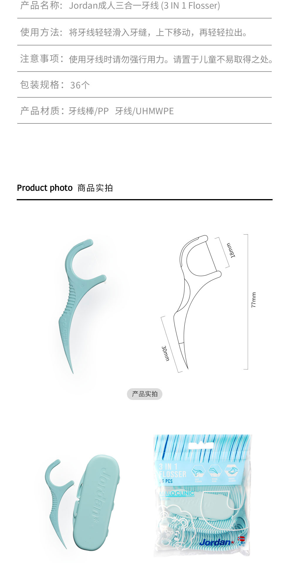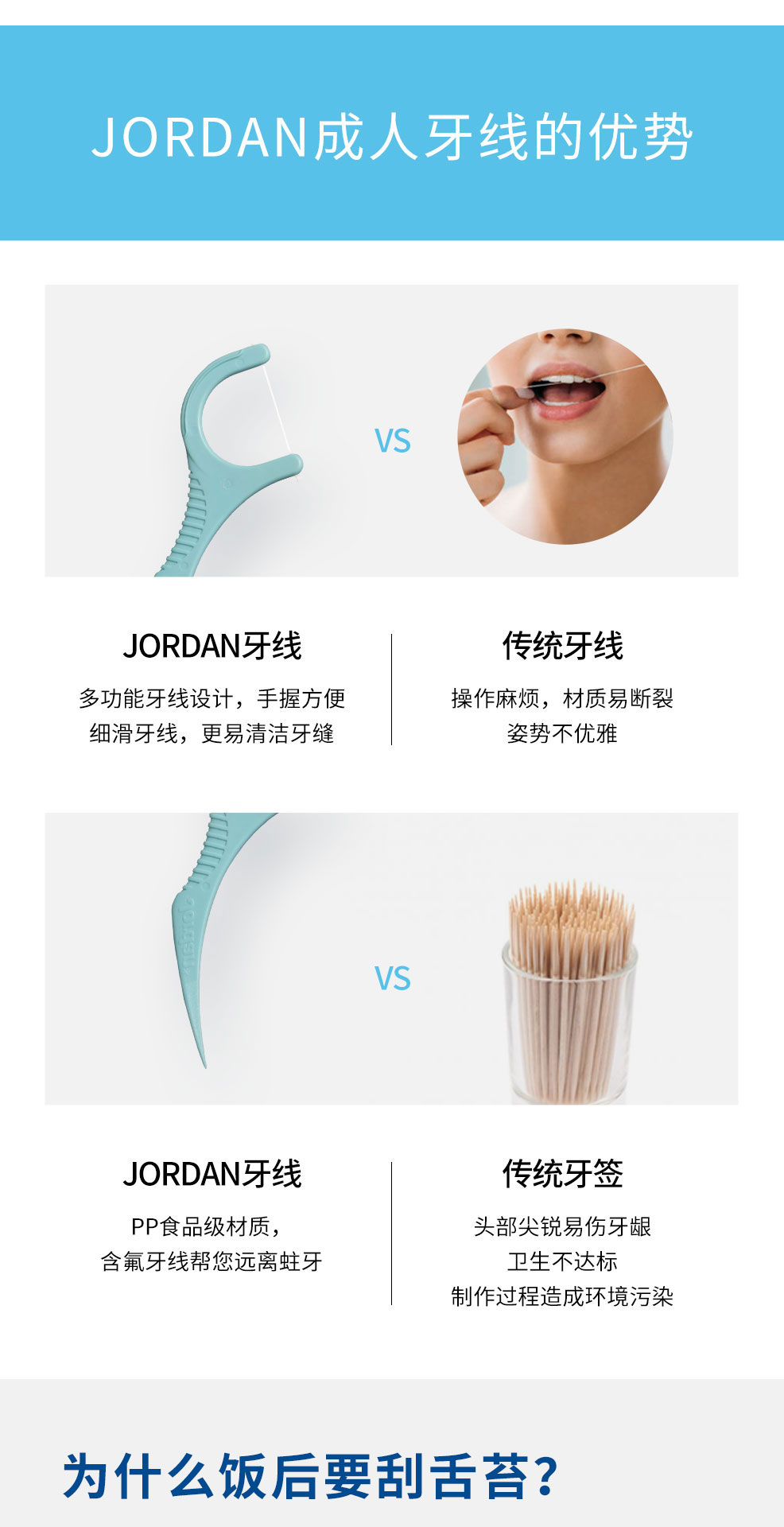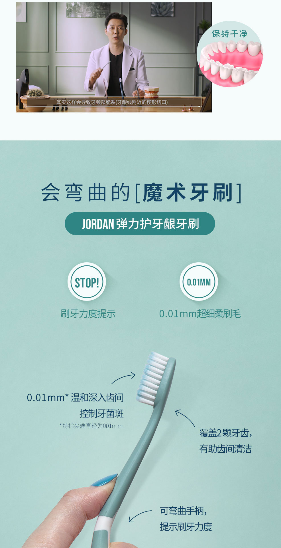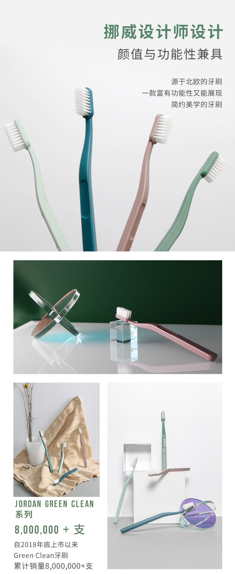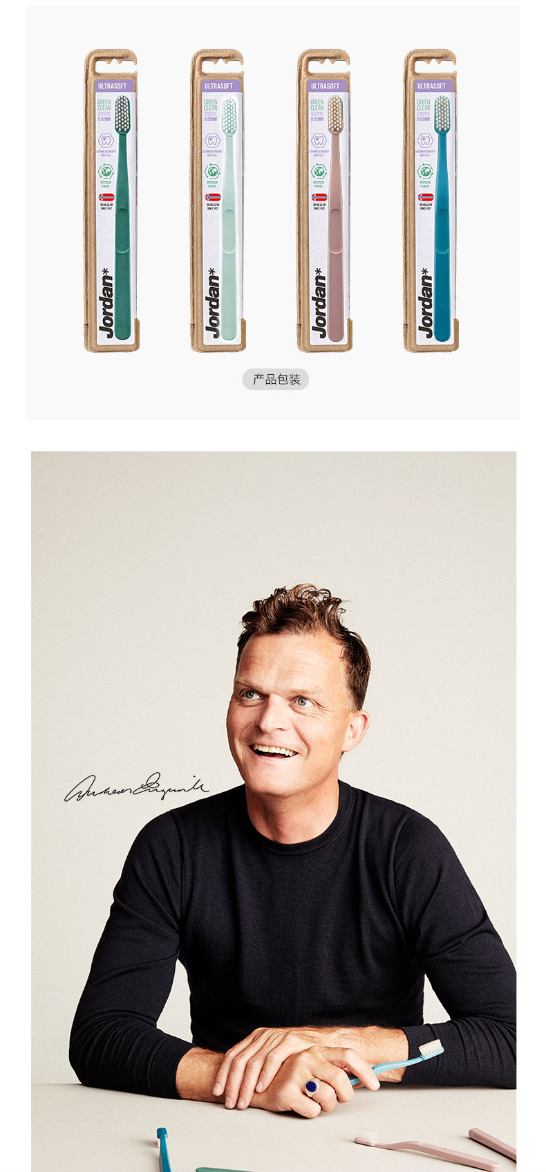 【成人系列】挪威Jordan进口成人环保牙刷弹力护龈牙刷红点设计奖软毛情侣牙刷独立包装、成人牙线