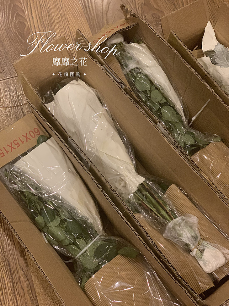 收到花时,刚折箱未修剪实物图,