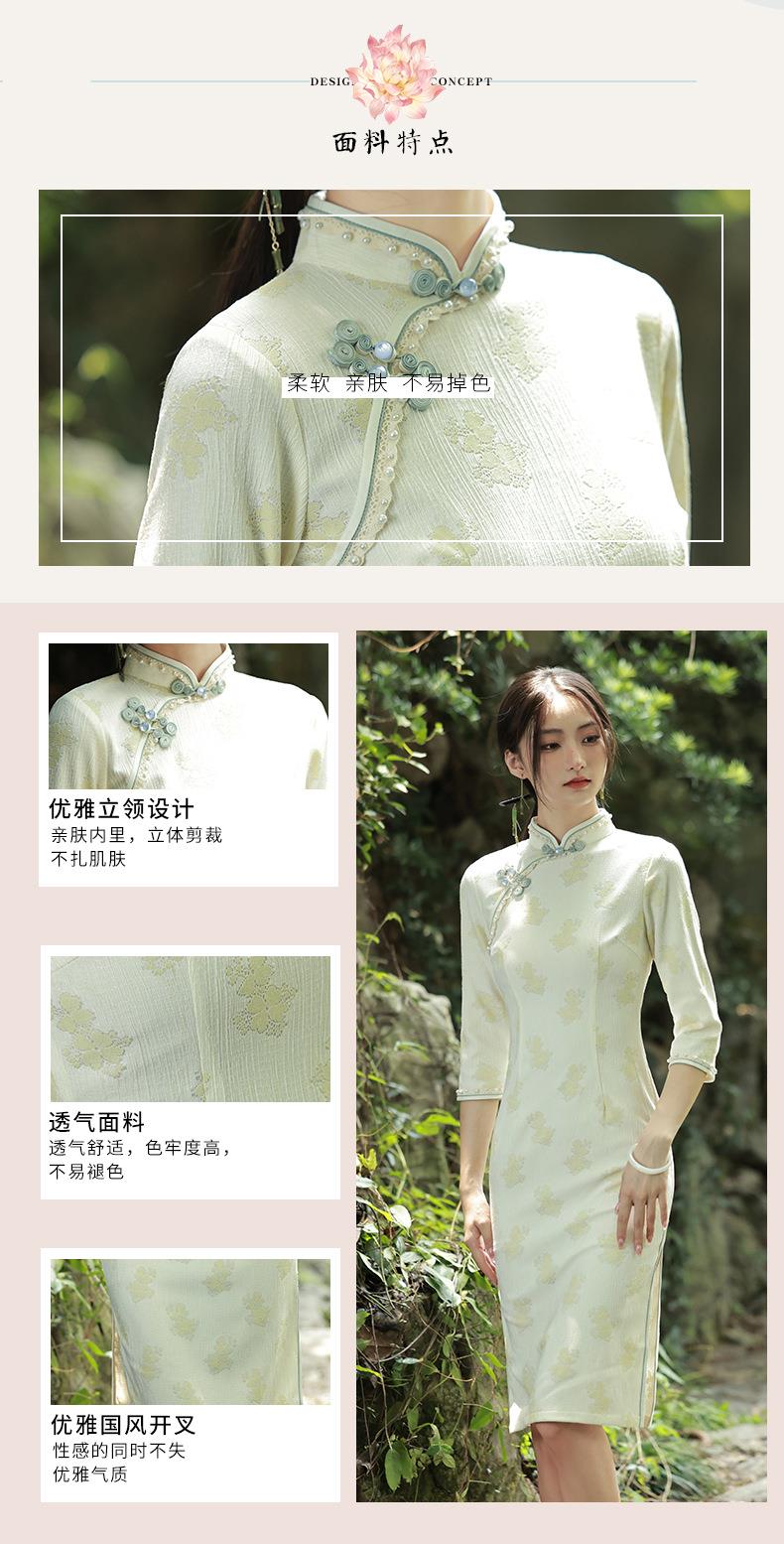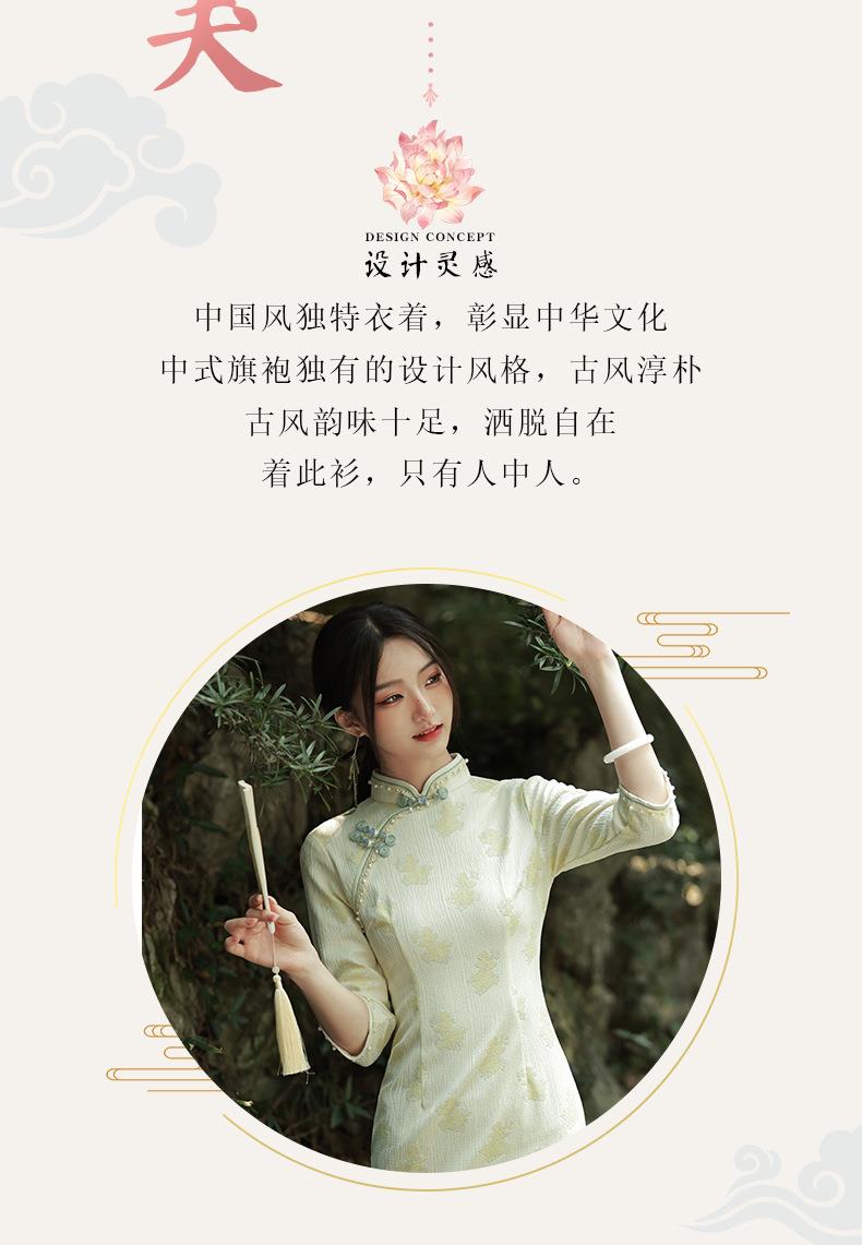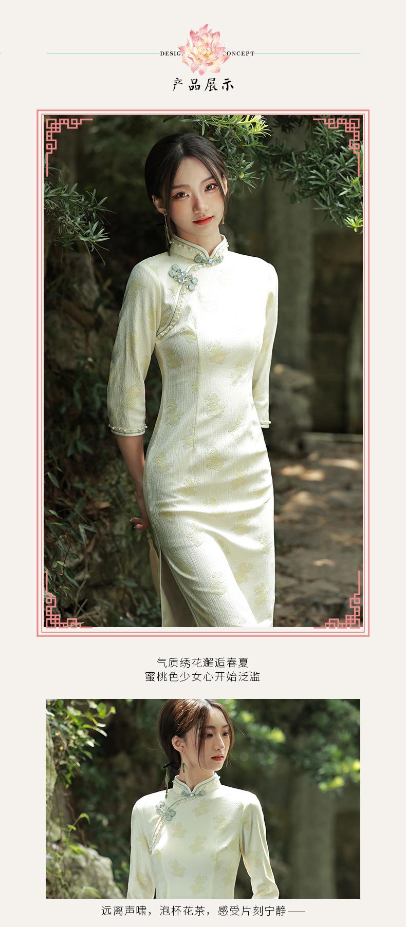 2023秋季新款复合蕾丝花边钉珠中袖旗袍连衣裙复古改良民国风旗袍