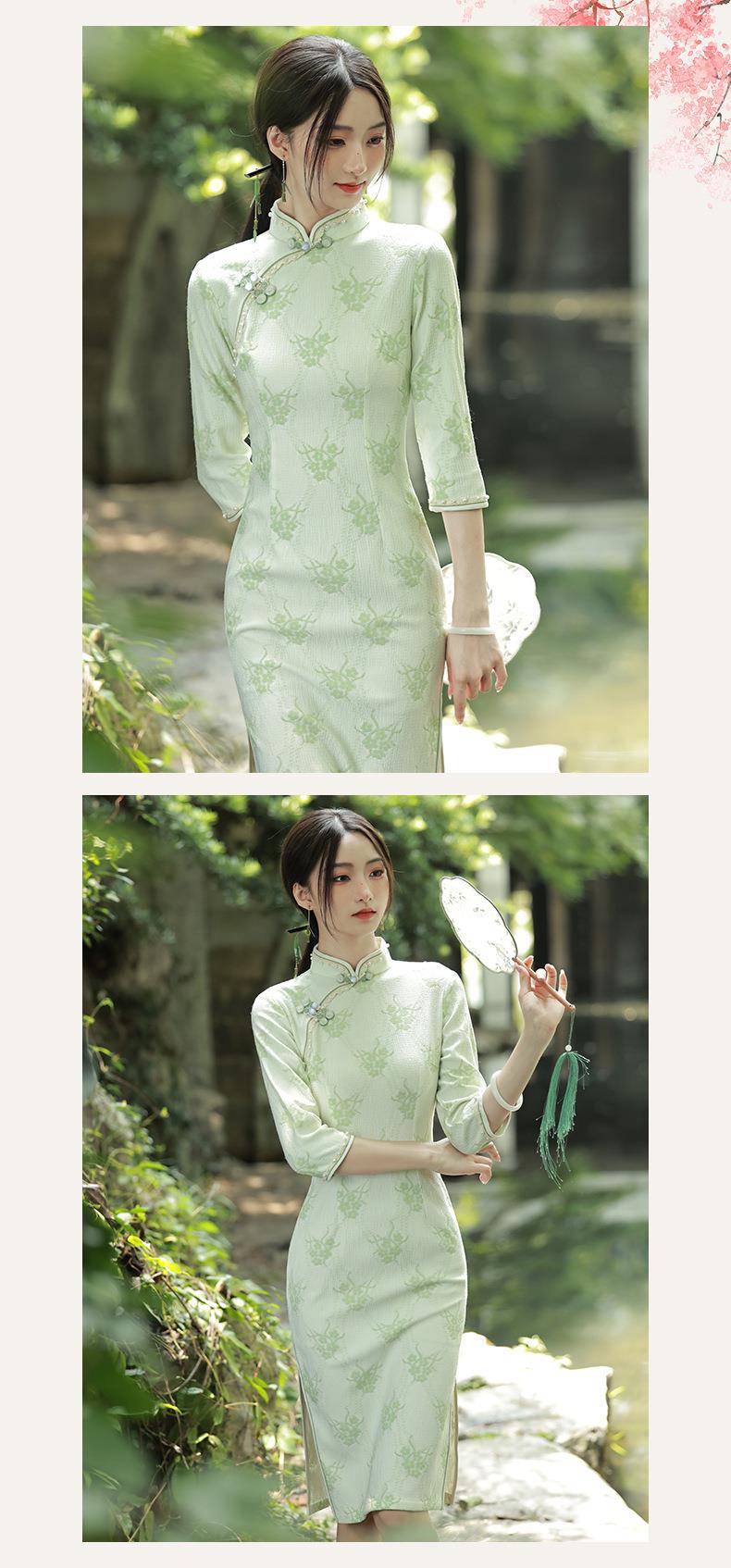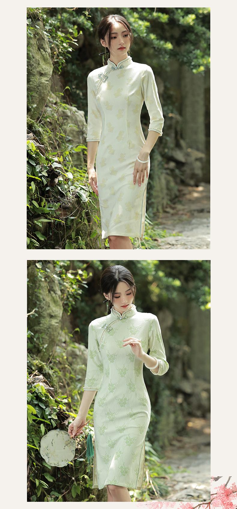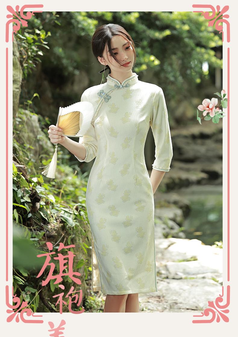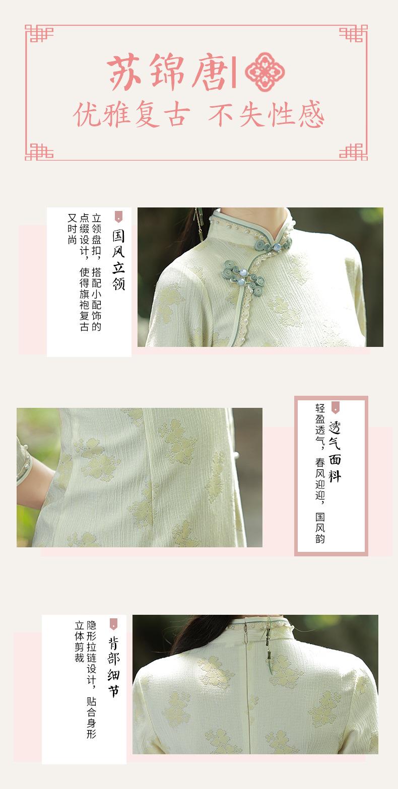 2023秋季新款复合蕾丝花边钉珠中袖旗袍连衣裙复古改良民国风旗袍