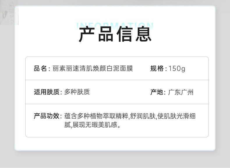 【YZ】丽素丽速清肌焕颜白泥面膜深层清洁保湿修护清洁涂抹面膜150g