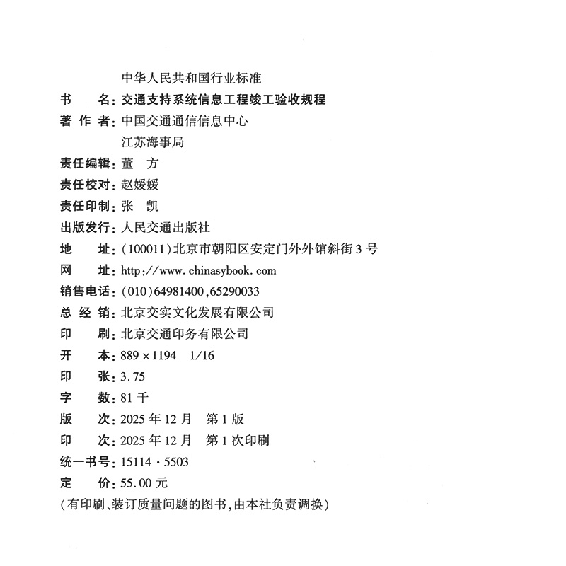 书名:交通支持系统信息工程竣工验收规程