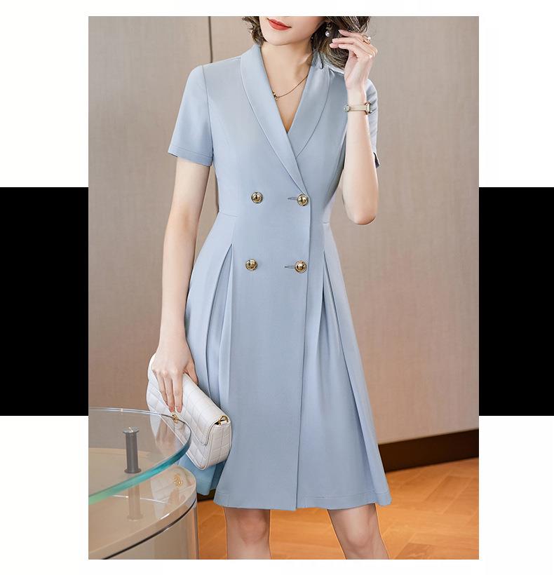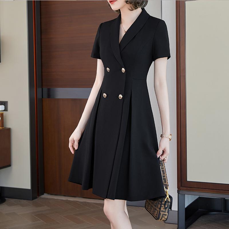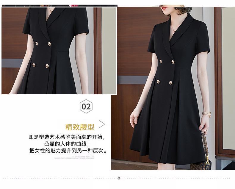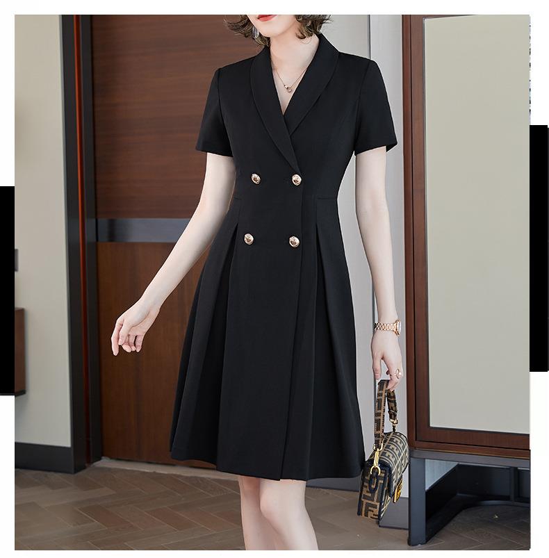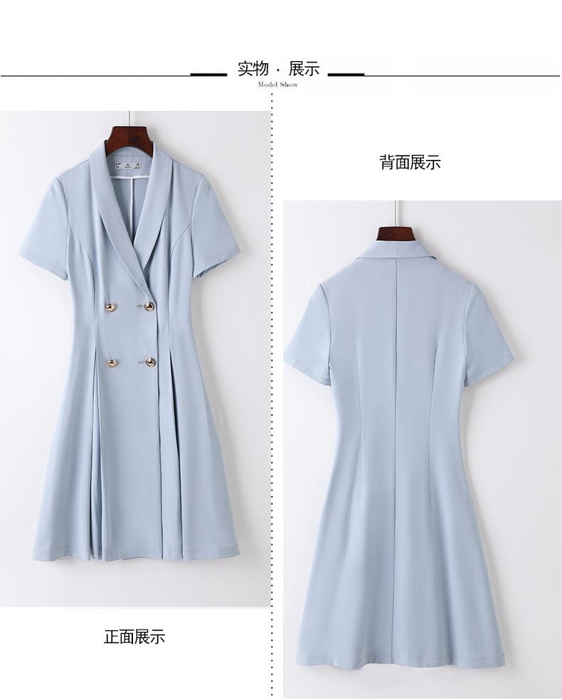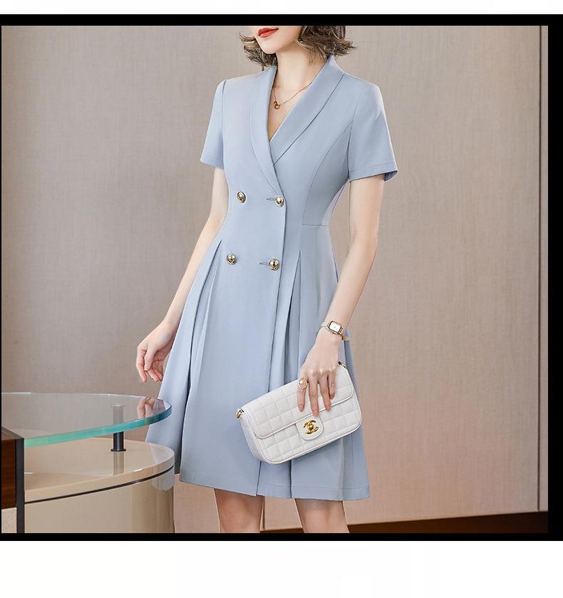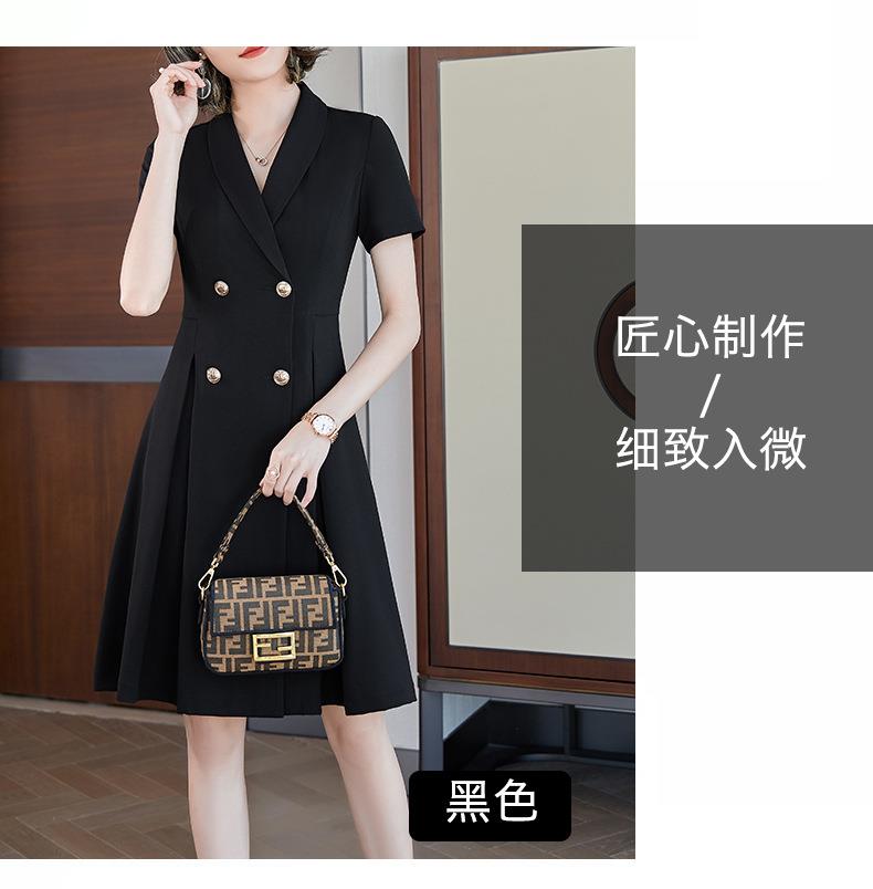 娜璐多 法式西装连衣裙女2023年夏季新款双排扣收腰显瘦OL职业通勤A字裙