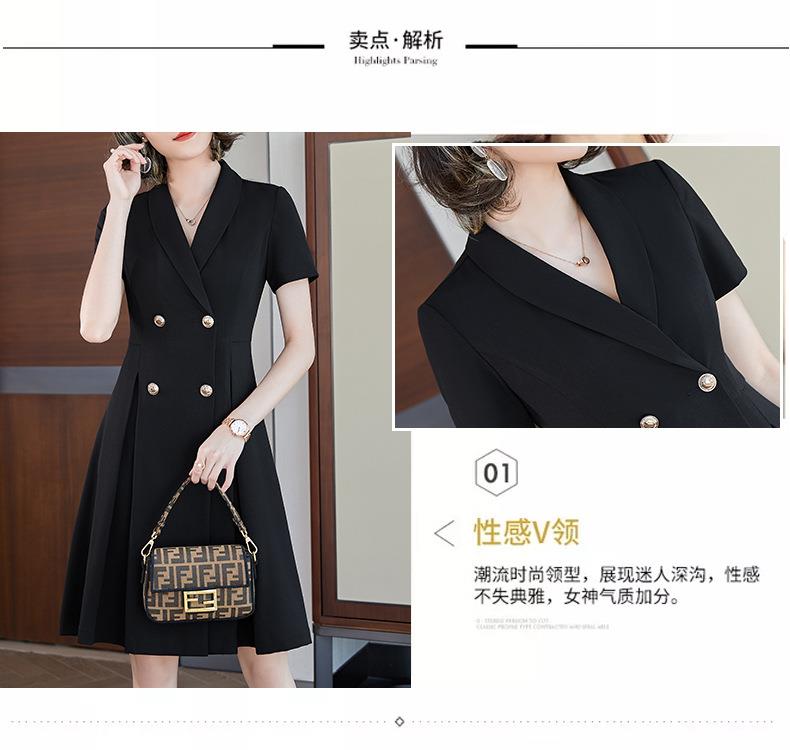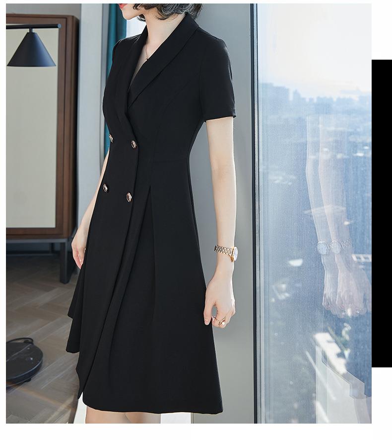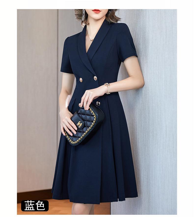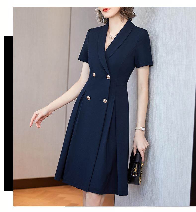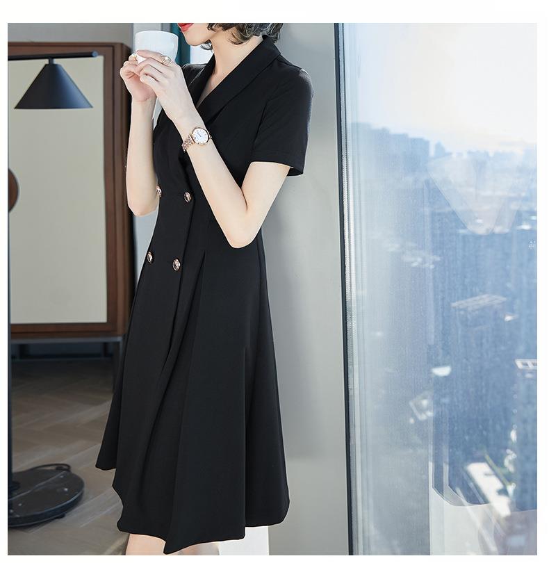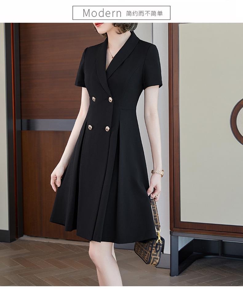 娜璐多 法式西装连衣裙女2023年夏季新款双排扣收腰显瘦OL职业通勤A字裙