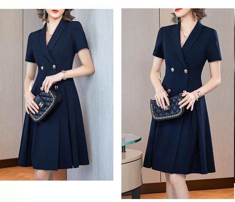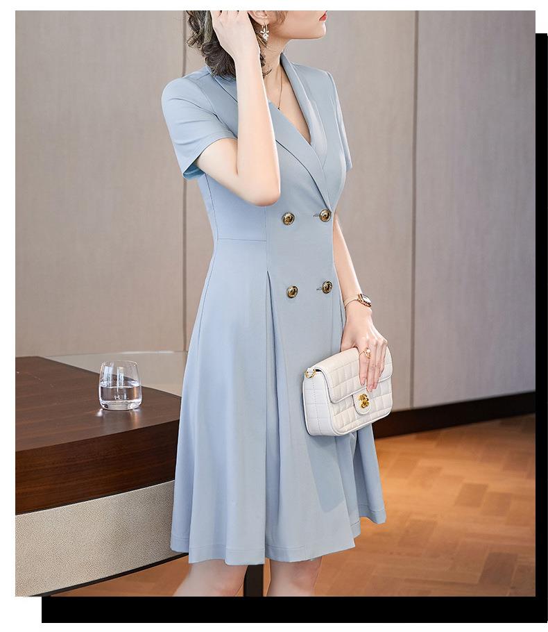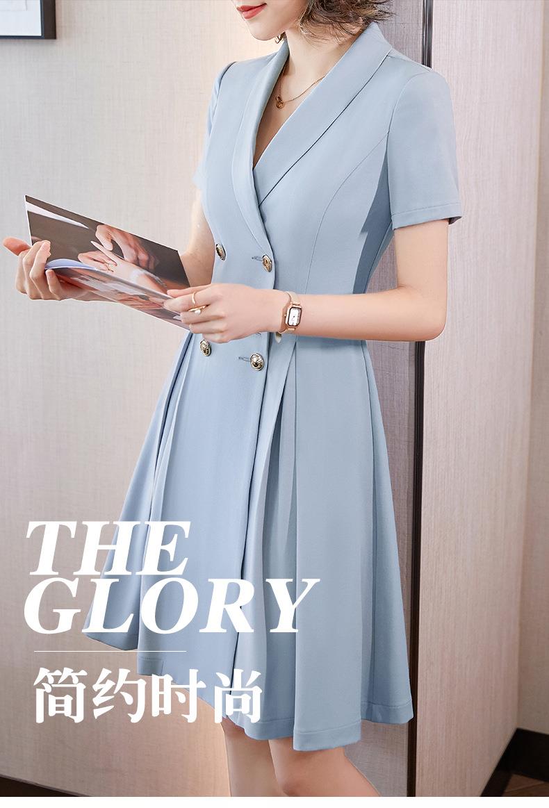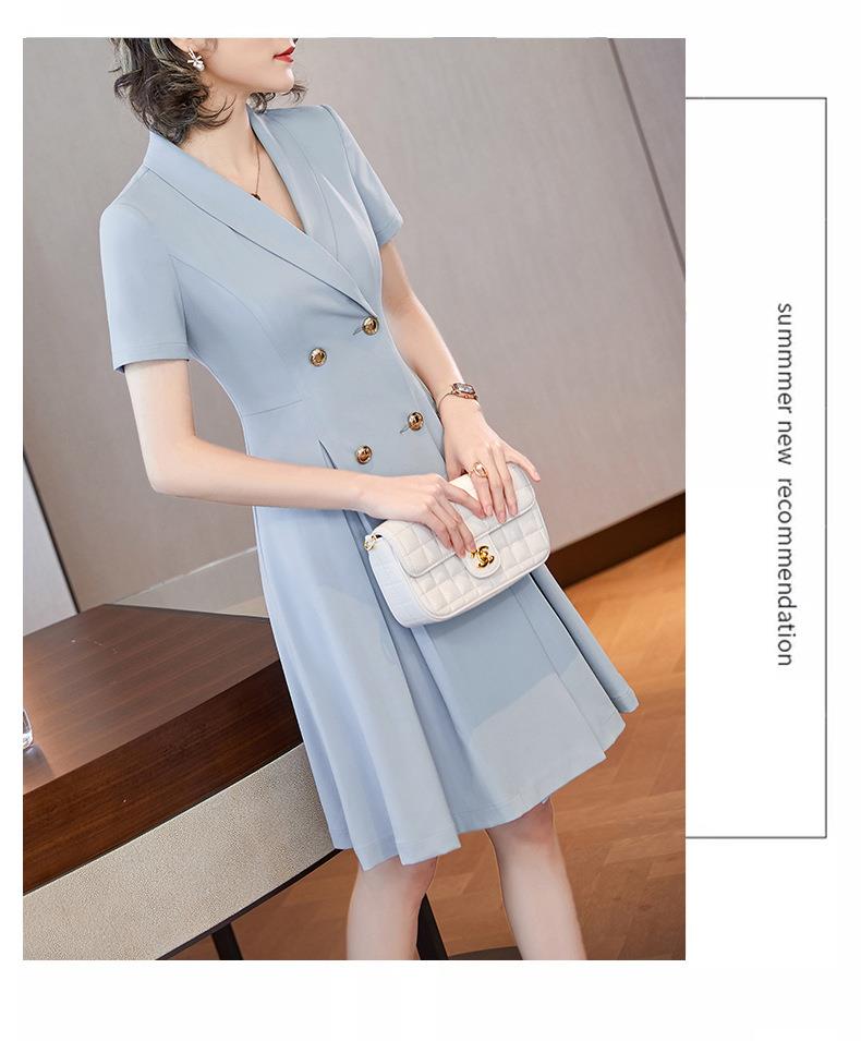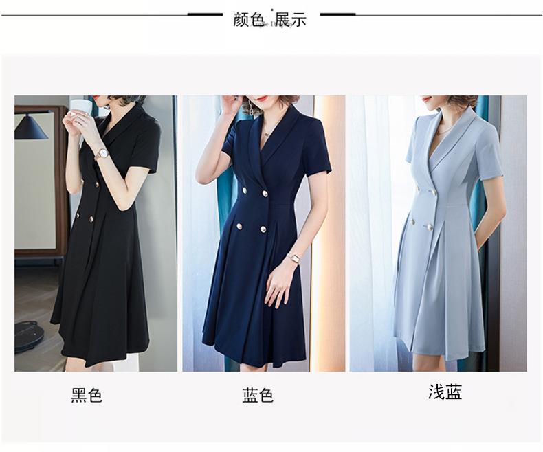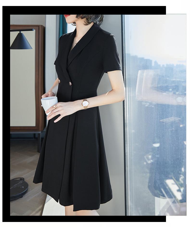 娜璐多 法式西装连衣裙女2023年夏季新款双排扣收腰显瘦OL职业通勤A字裙