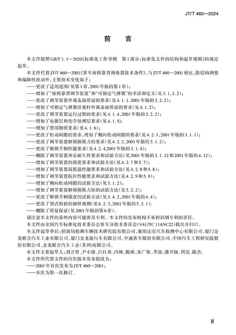 书名:客车座椅靠背调节装置(JT/T 460—2024 )
