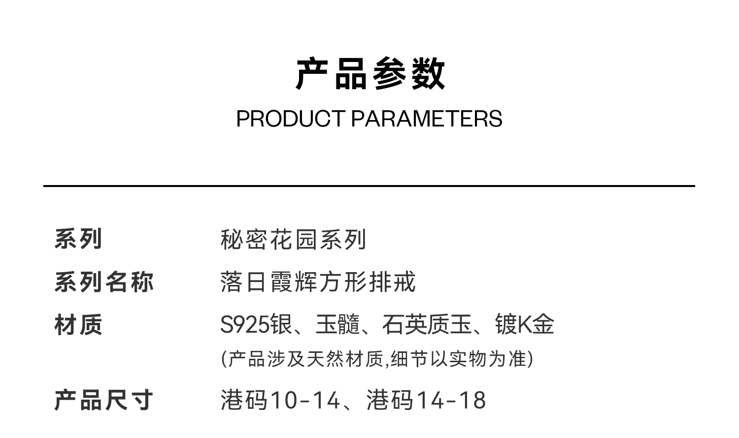 ARSIS银饰|秘密花园系列 落日霞辉方形排戒