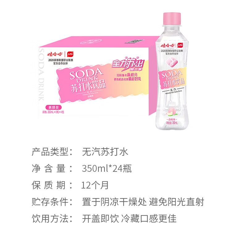 WAHAHA/娃哈哈无汽苏打水白桃味350ml单瓶