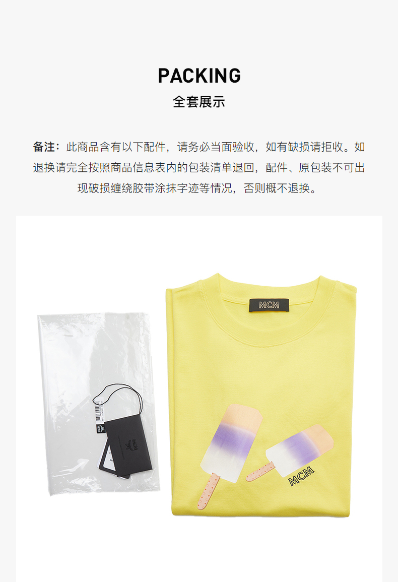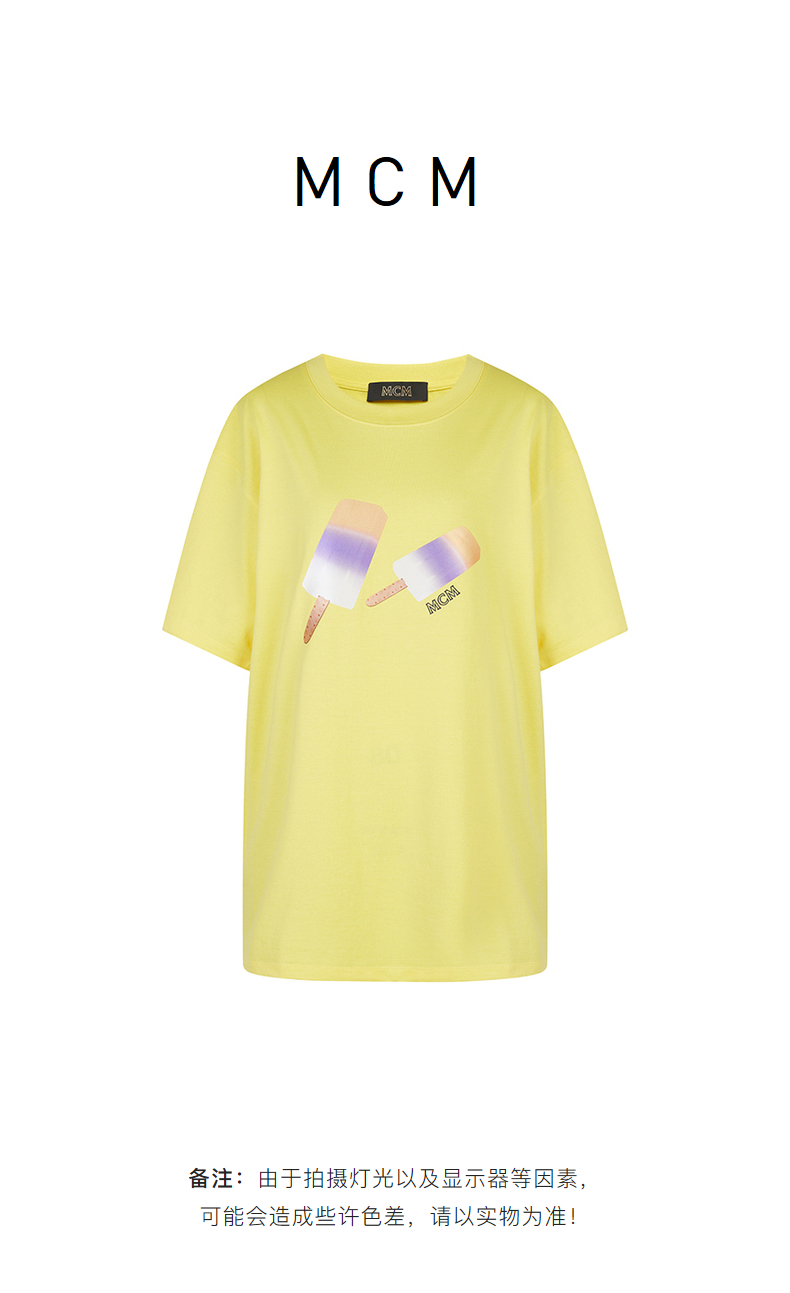 MCM 男士冰淇淋印花圆领短袖T恤 浅黄 MHTCSMM01