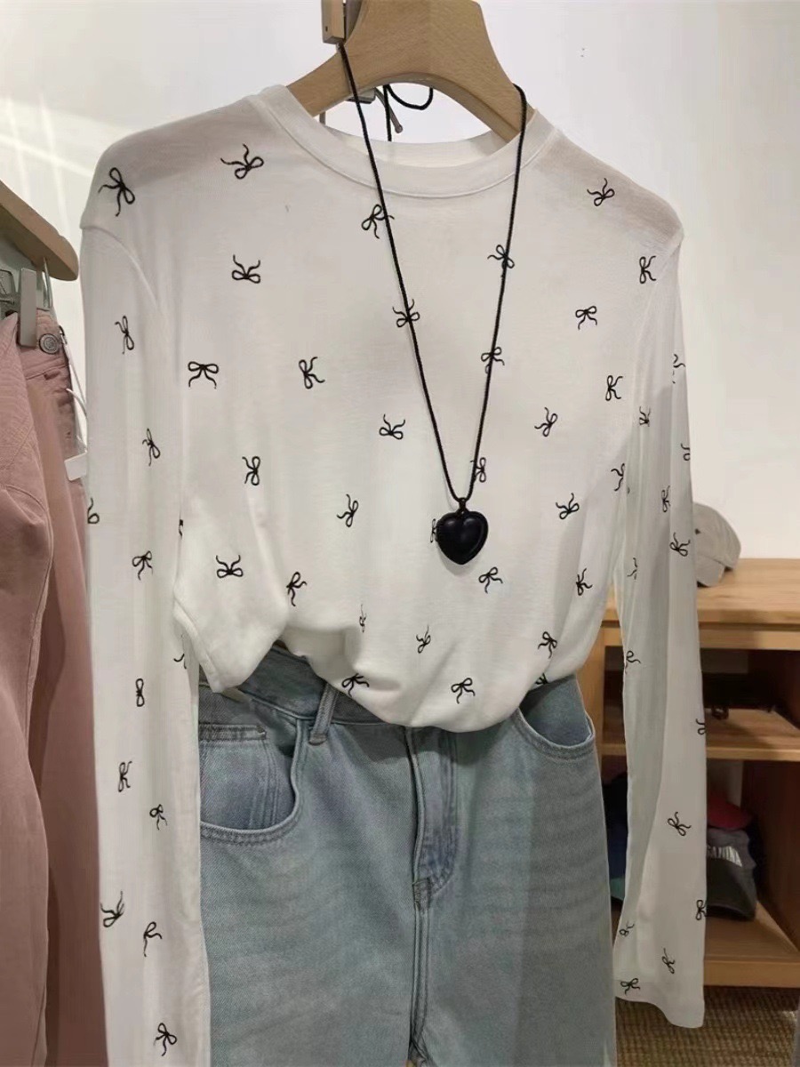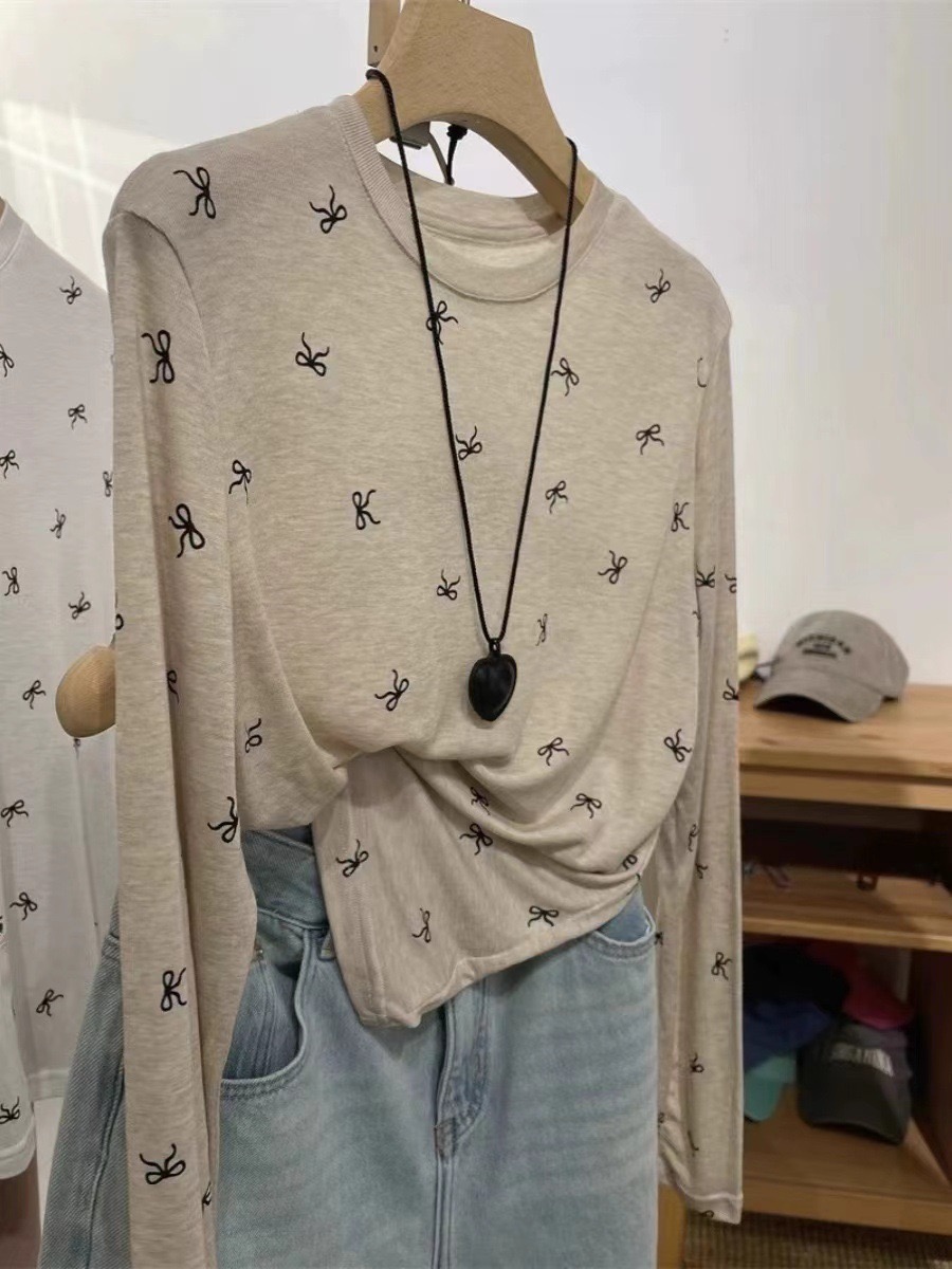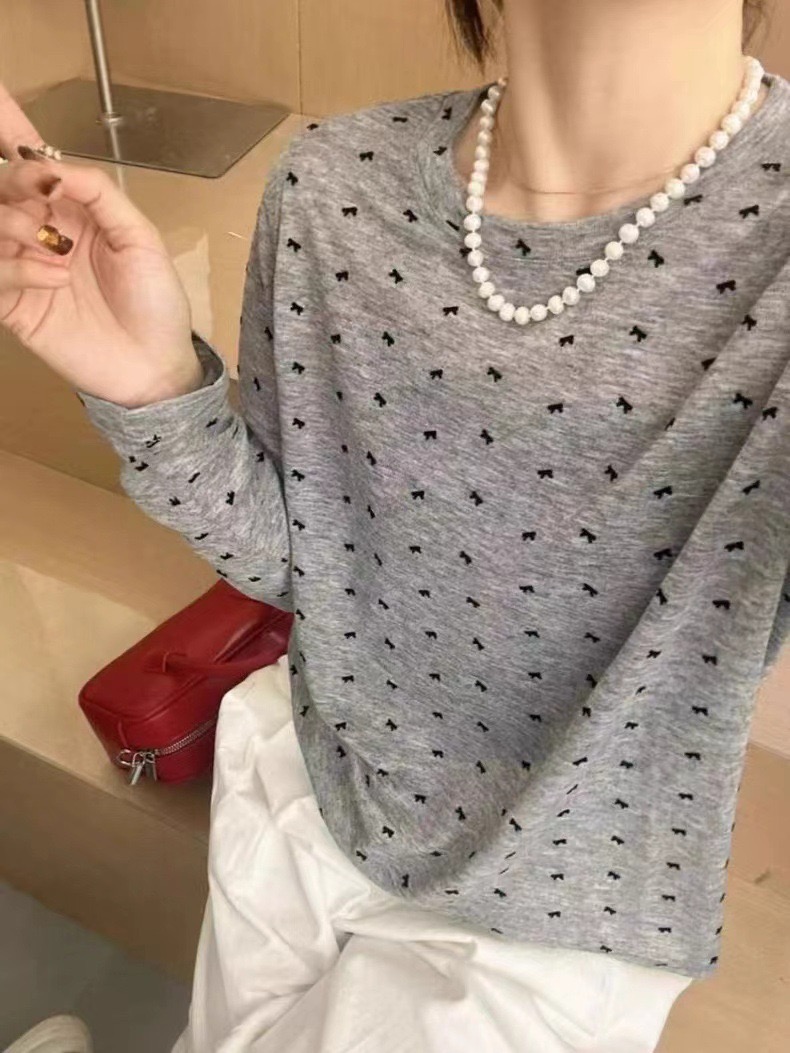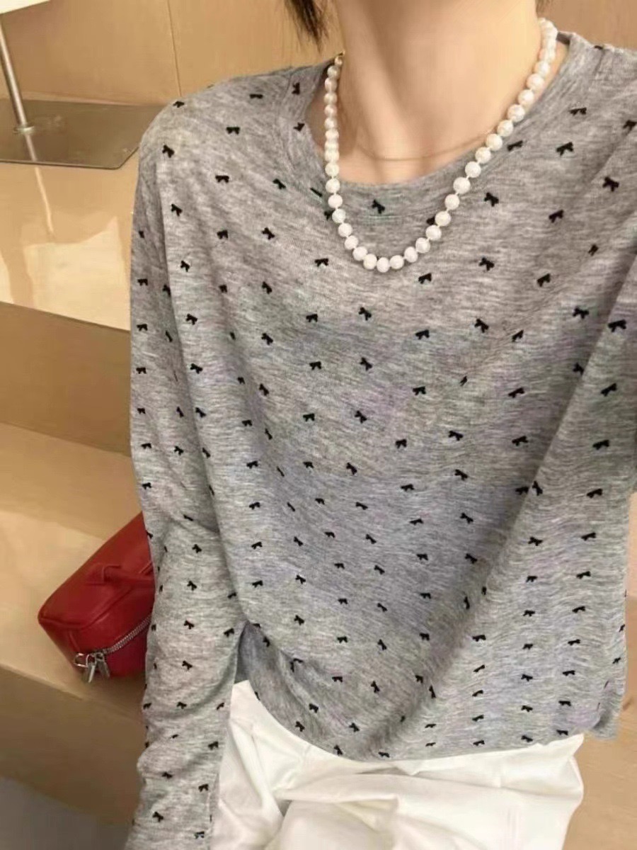 【YW】无忧购“清仓大促”韩系慵懒百搭波点蝴蝶结天丝面膜长袖T恤6610(截单后3-5天发货)
