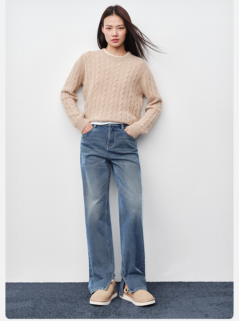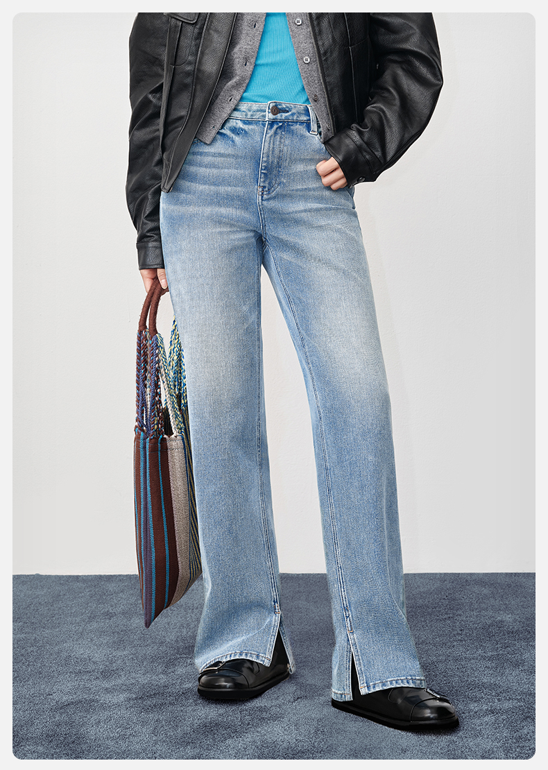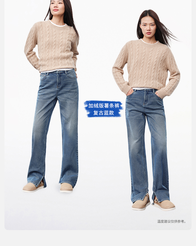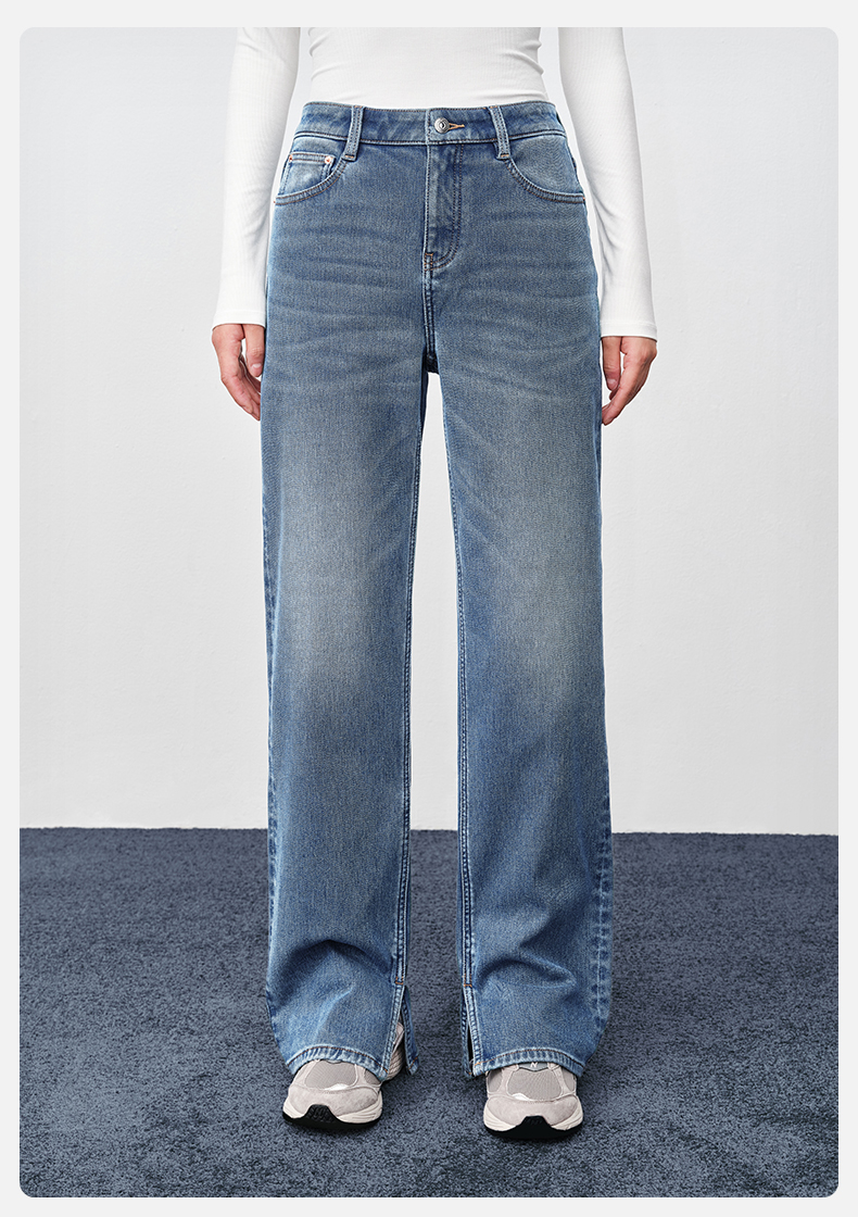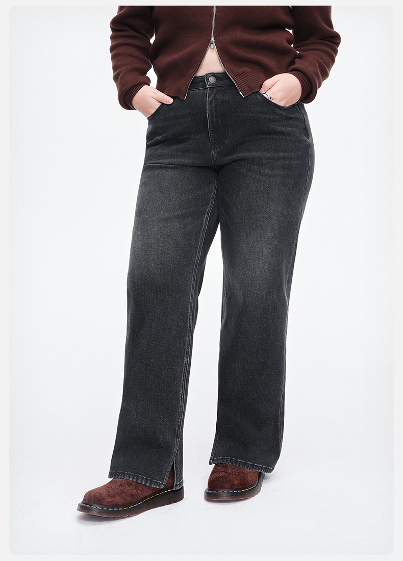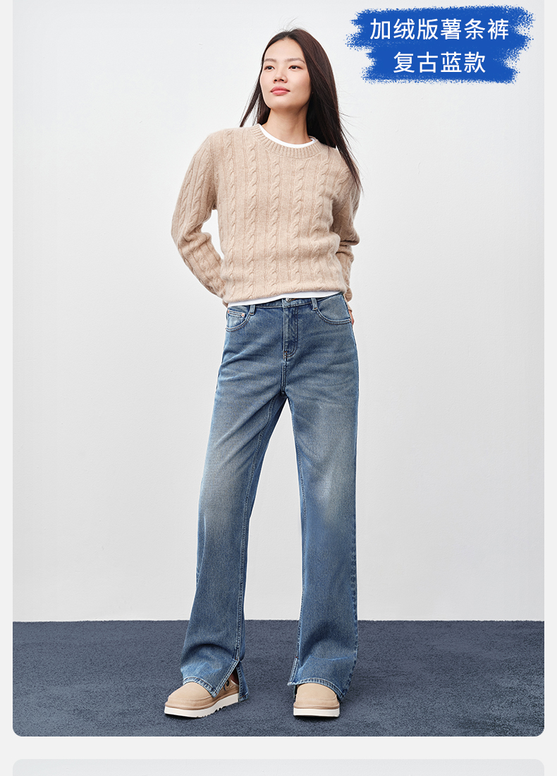 【保暖薯条经典版】simplepieces秋冬新款SPS牛仔裤女加绒直筒裤