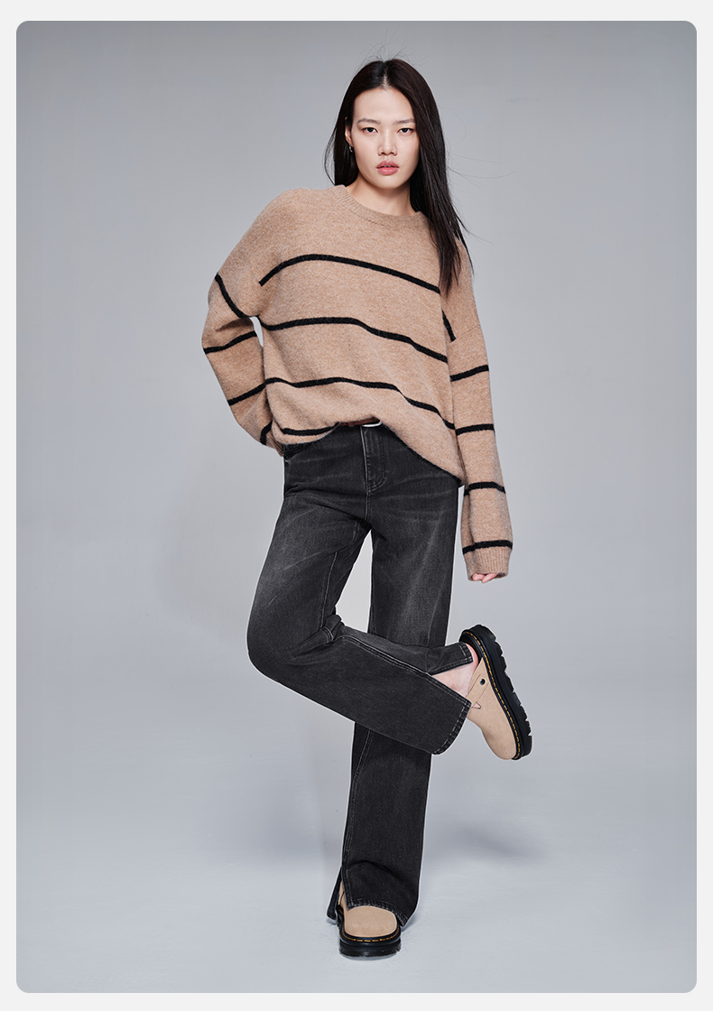 【保暖加绒蛋卷裤】simplepieces冬新款SPS牛仔女黑色九分直筒裤