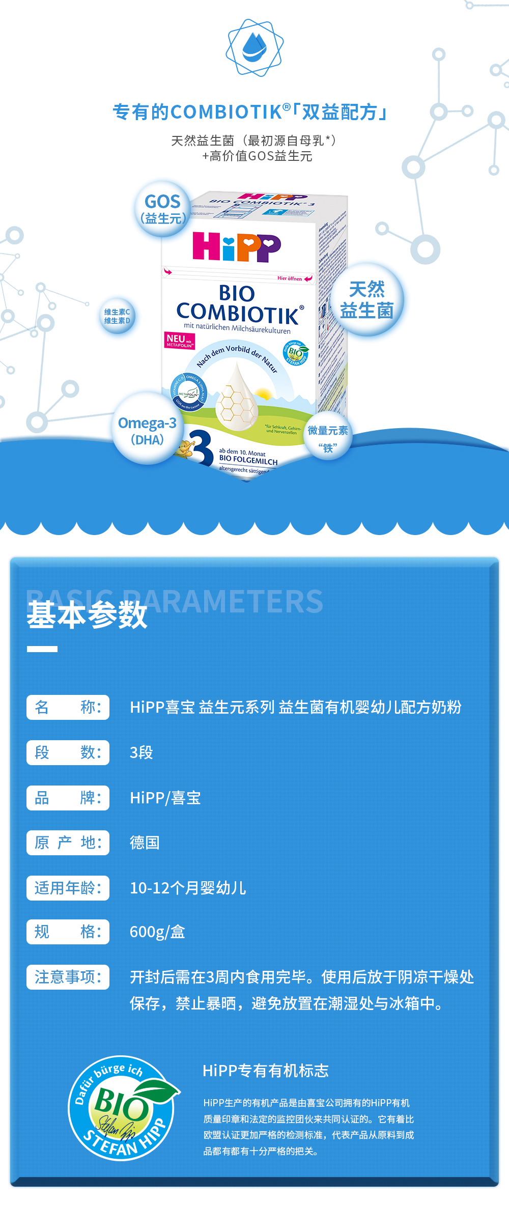 【保税】德国喜宝益生菌奶粉3段600g