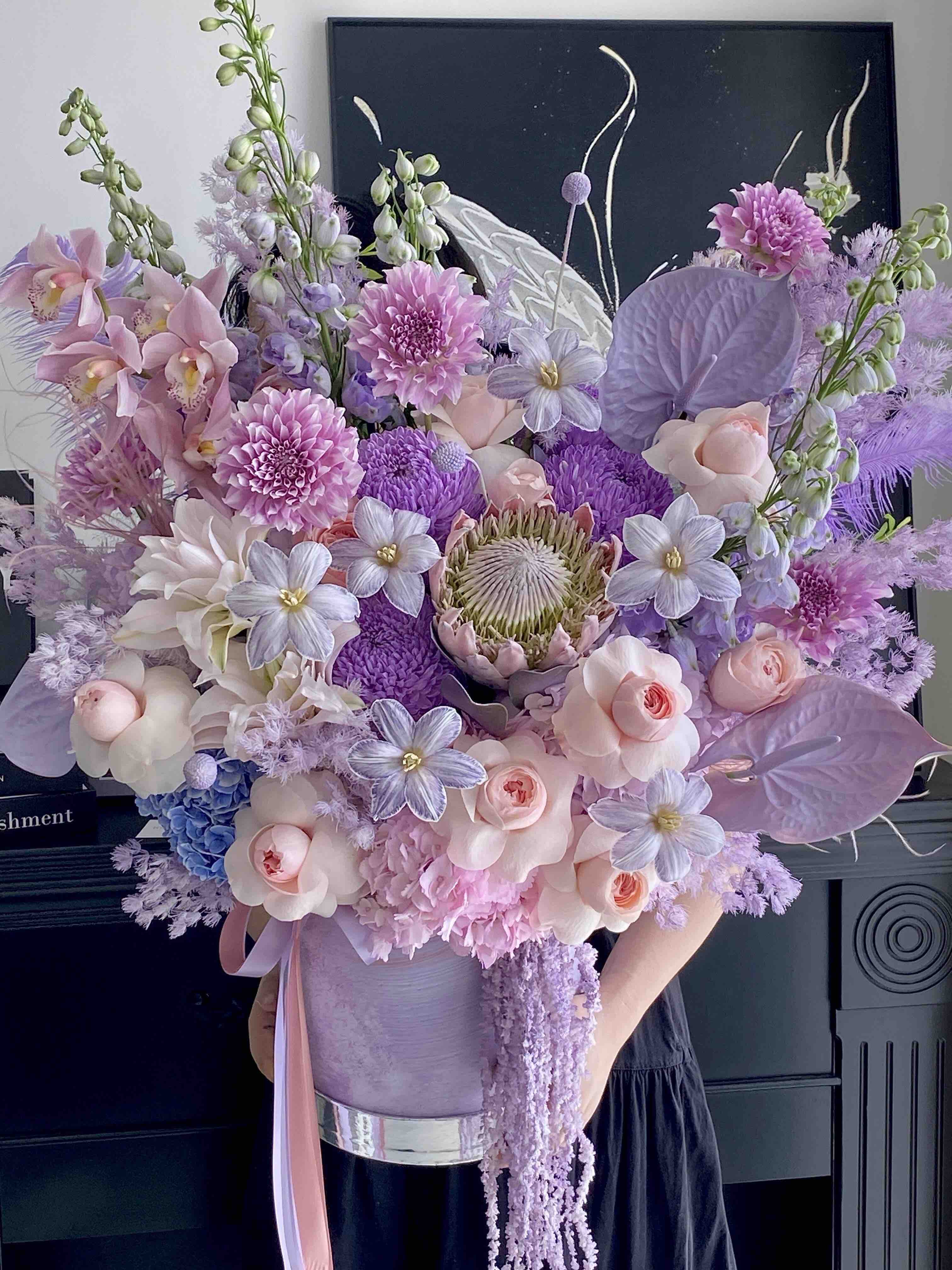 《远山黛》帝王花郁金香大丽花掌薄雾紫抱抱桶