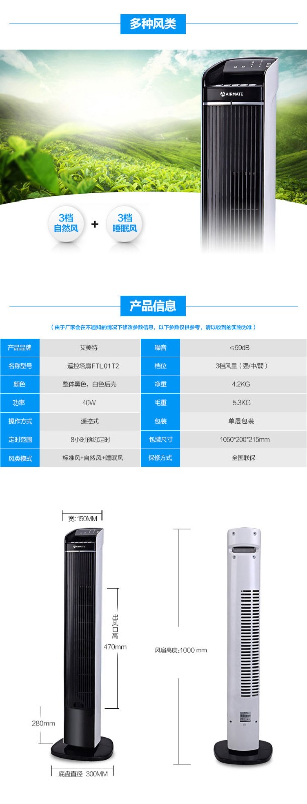 艾美特(AIRMATE) 艾美特 遥控塔扇FTL01T2