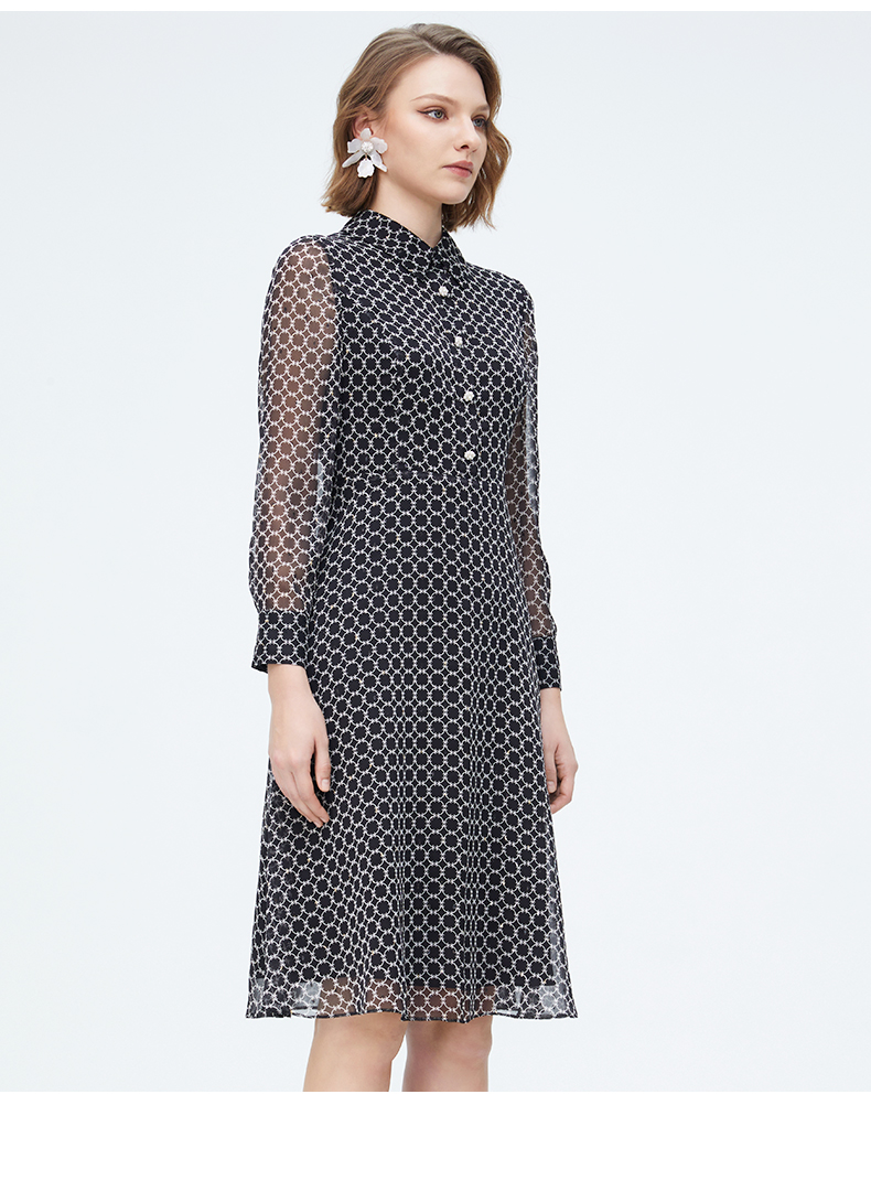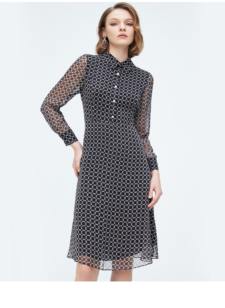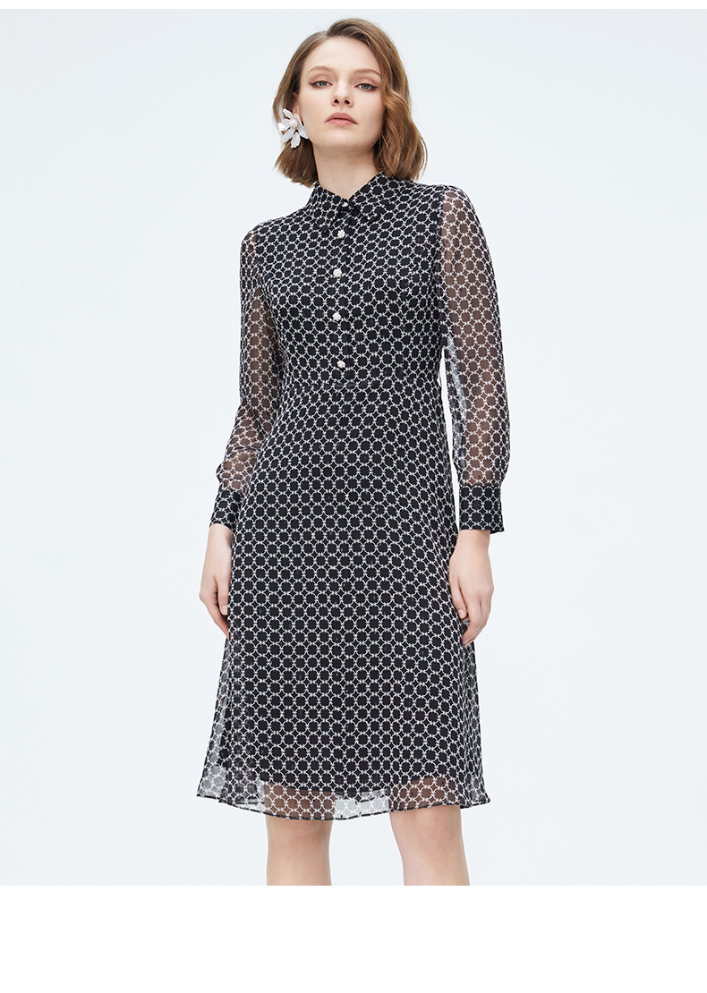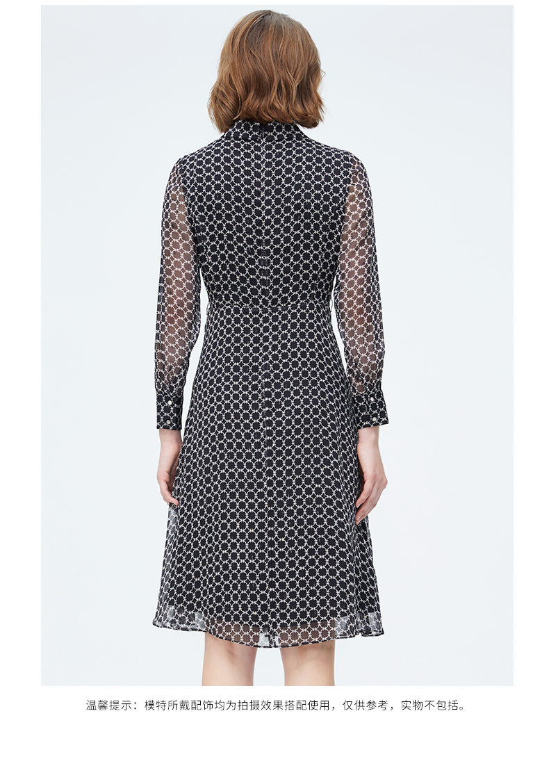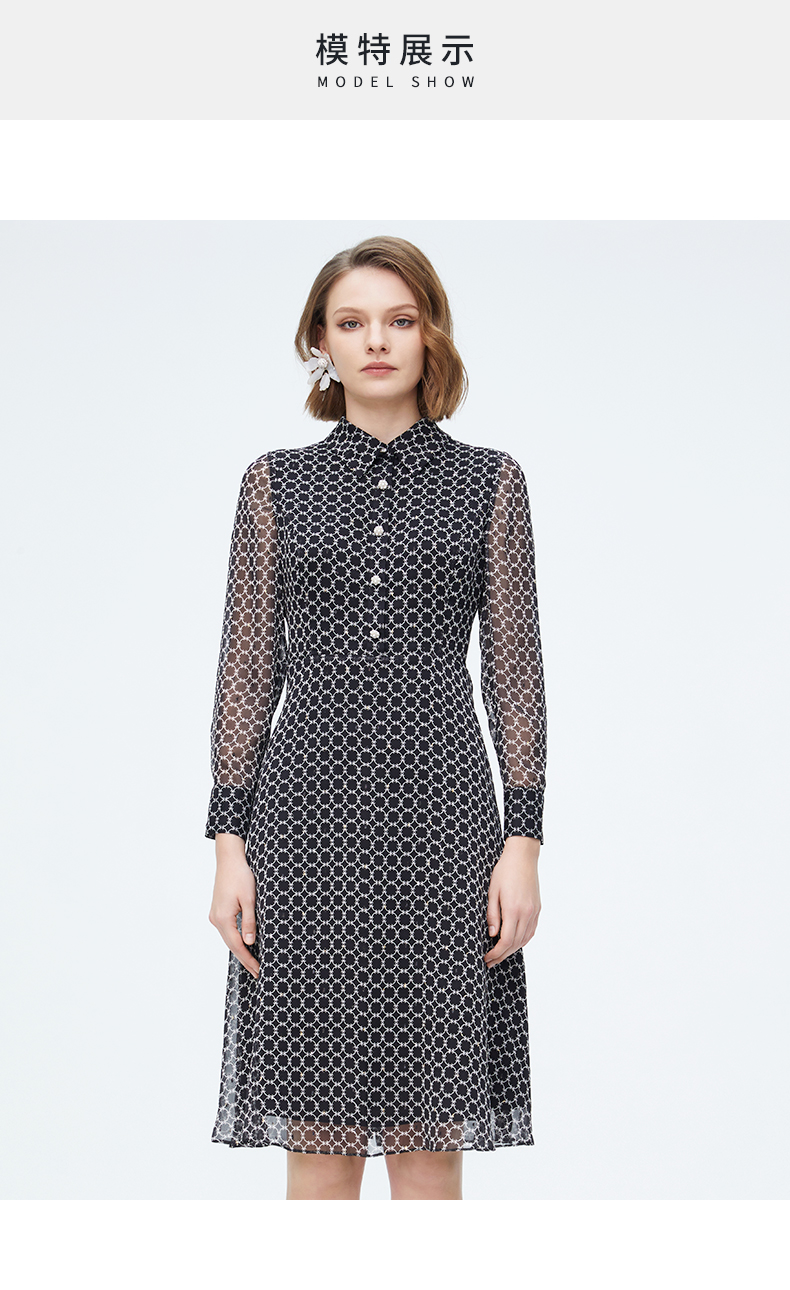 皮尔卡丹女装秋季新款淑女知性优雅长袖连衣裙P0414DL18G0