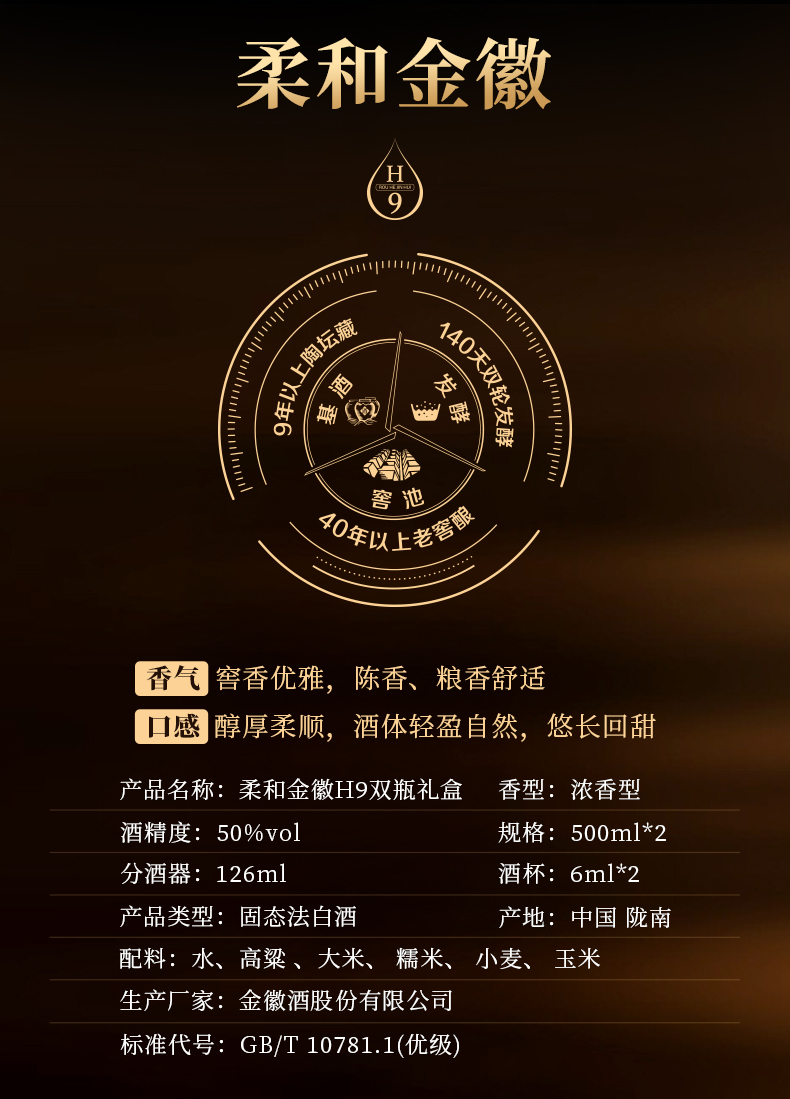 【H9双瓶礼盒】金徽酒 50度柔和H9礼盒 浓香型白酒