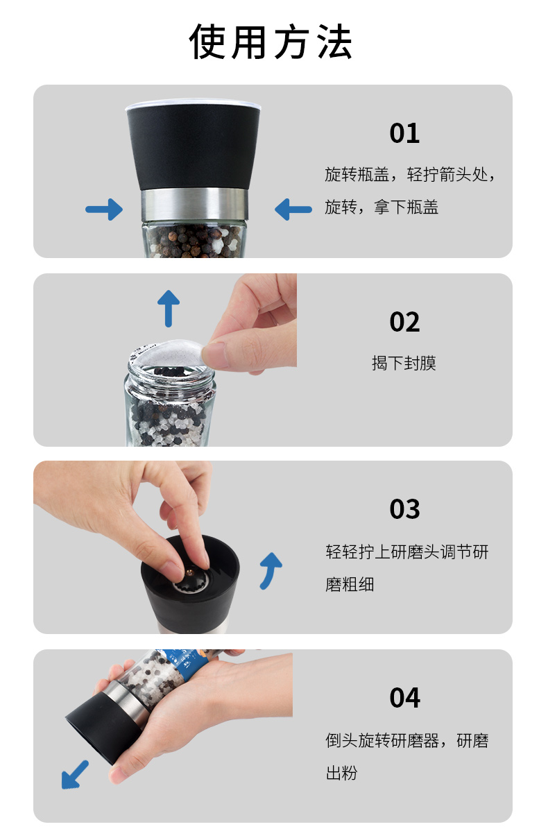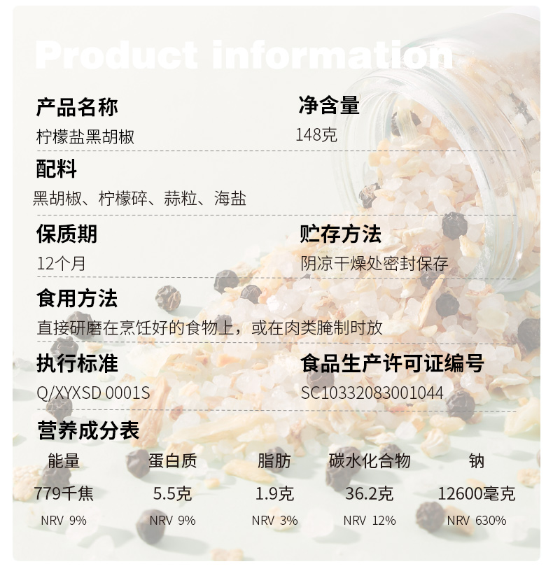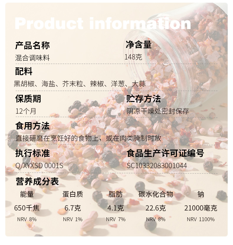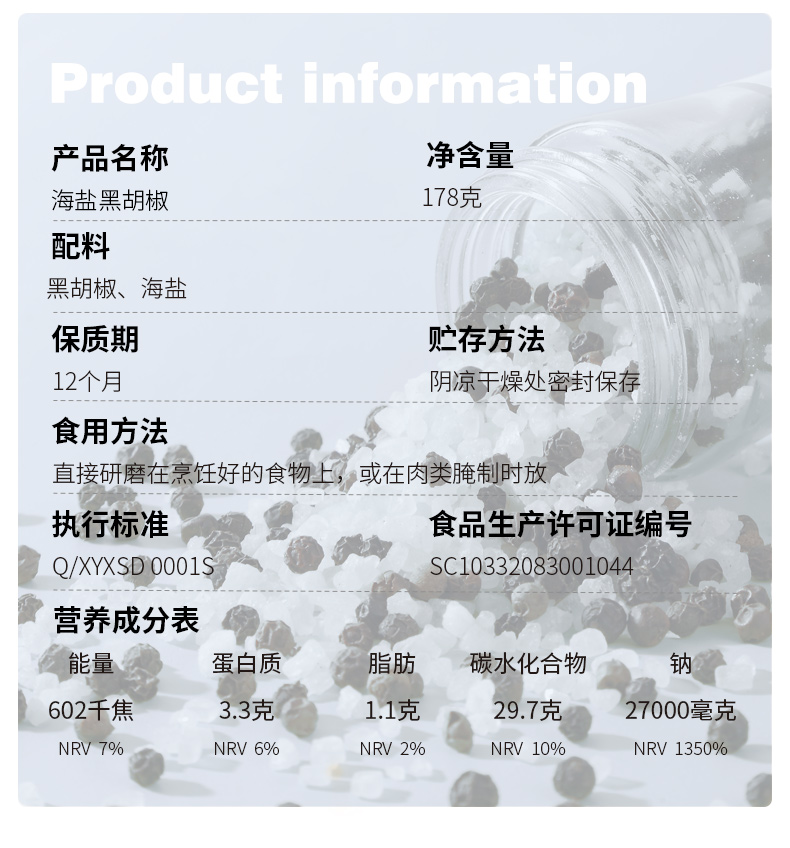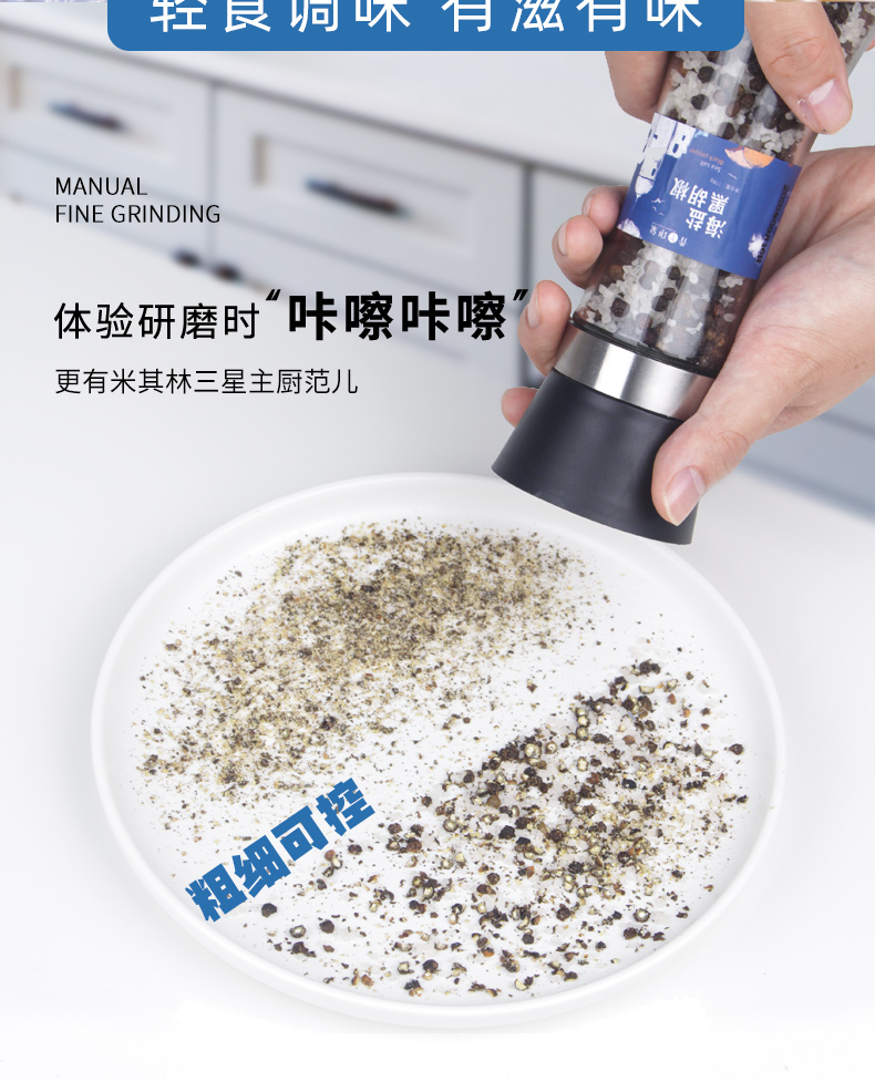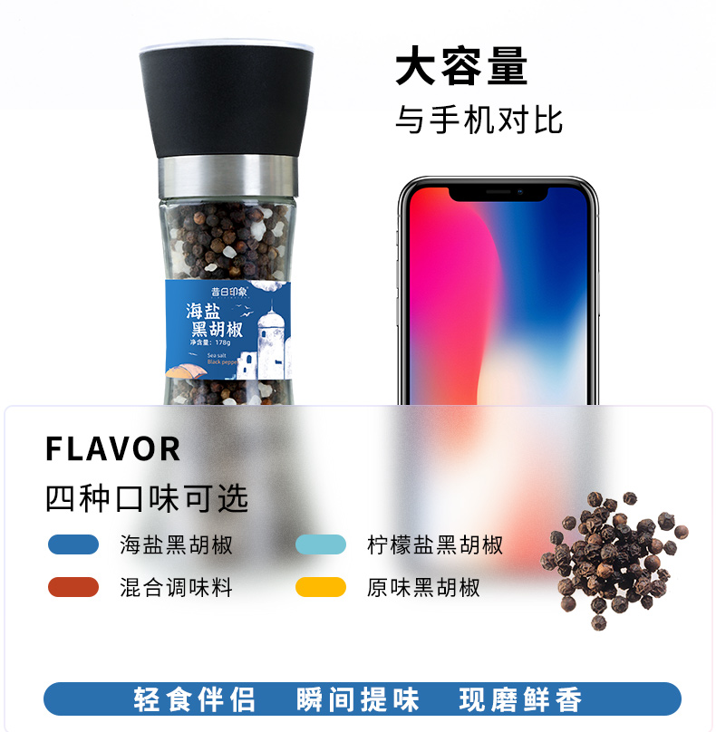 昔日印象海盐黑胡椒178g*1瓶混合味黑胡椒148g原味黑胡椒108g粒研磨器黑胡椒粉混合胡椒牛排调料胡椒碎混