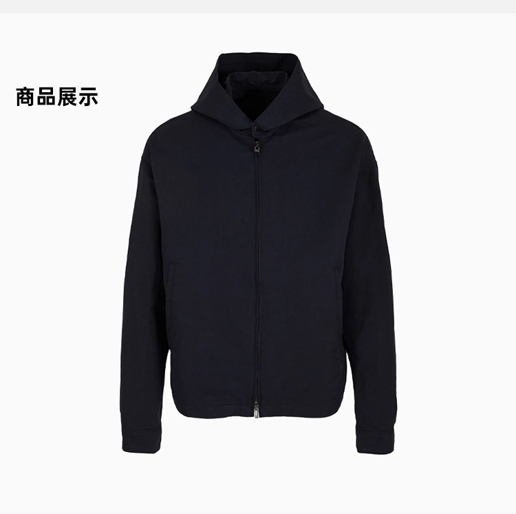 EMPORIO ARMANI 阿玛尼 男士修身长袖连帽拉链纯色休闲薄夹克外套 蓝色 3D1BF4 1K2WZ 0920