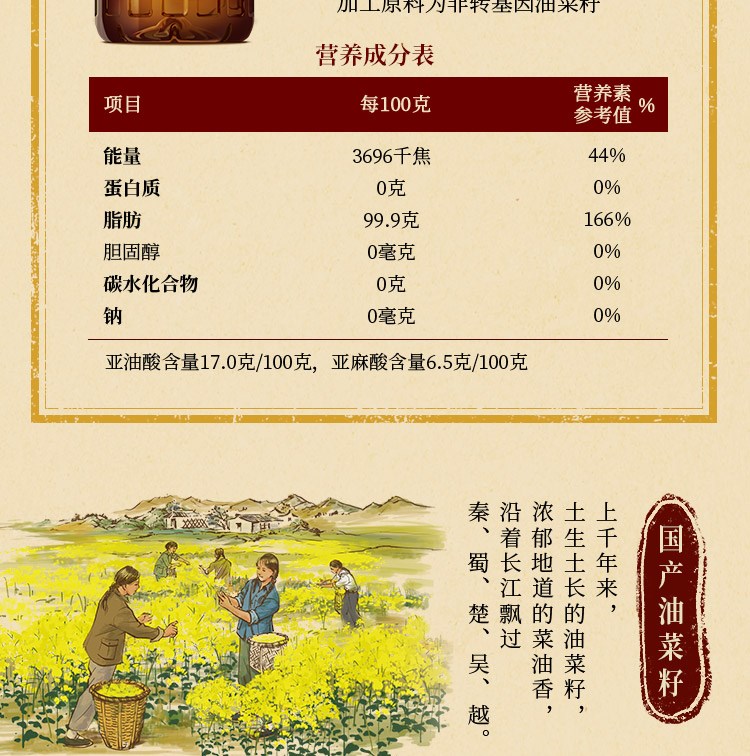 福临门家香味老家土榨(小榨原香)菜籽油(非转基因)4L